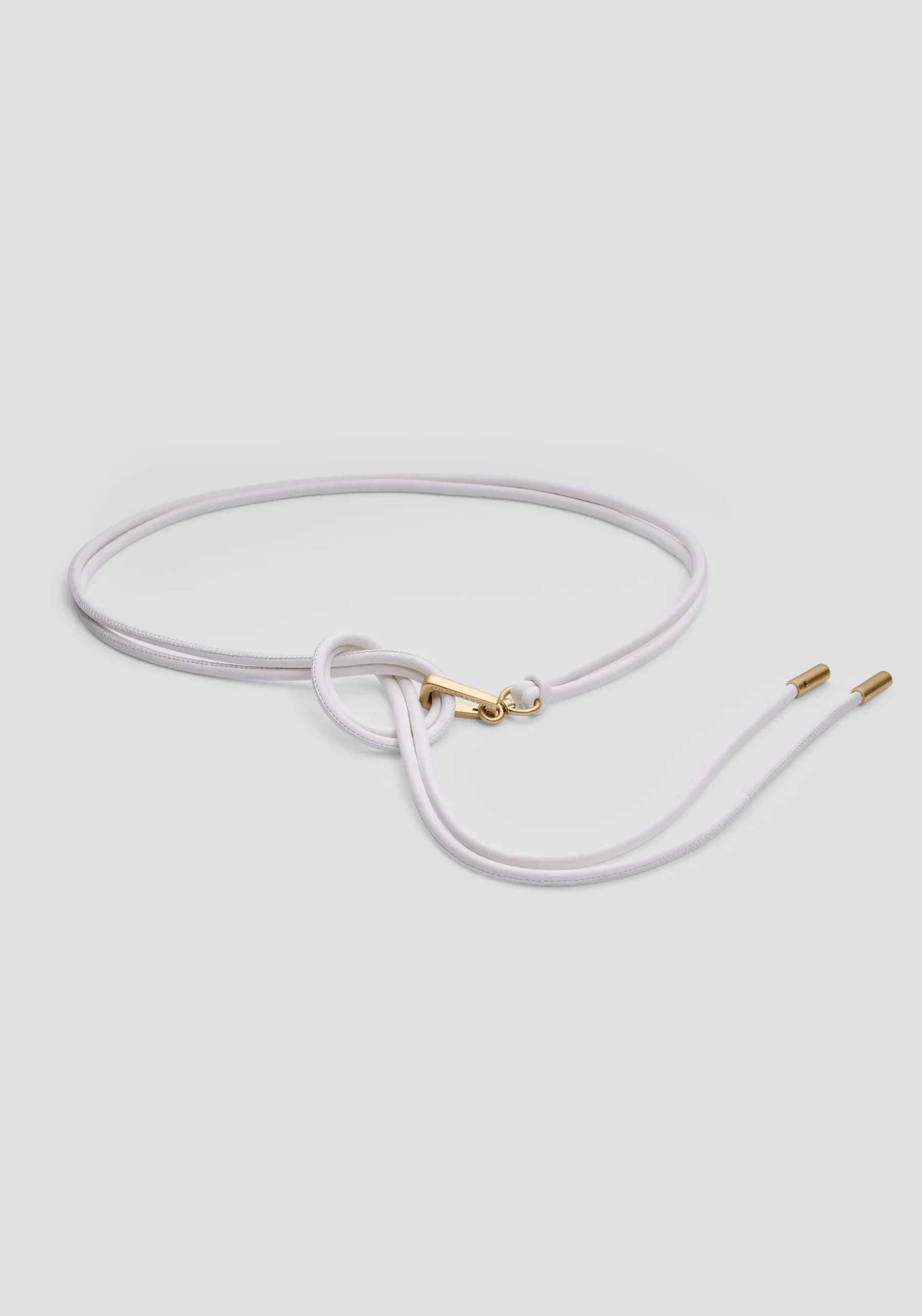 The Chloe Belt, crafted from ivory tubular leather, offers versatile styling with antique gold metal ends and a branded clip. Wear it knotted, draped, or clipped at any length to create structure and add creative expression – transforming any outfit with effortless individuality.