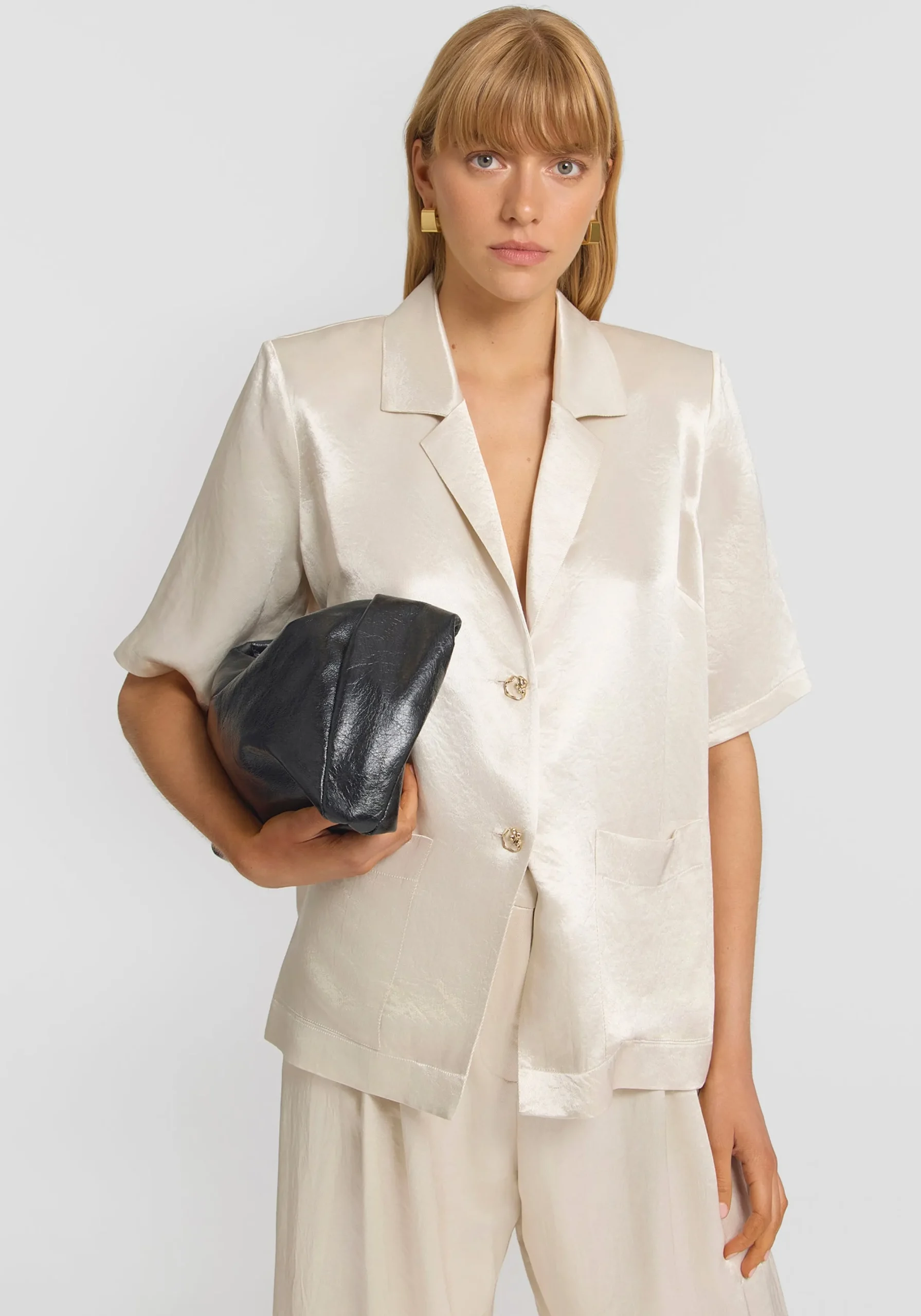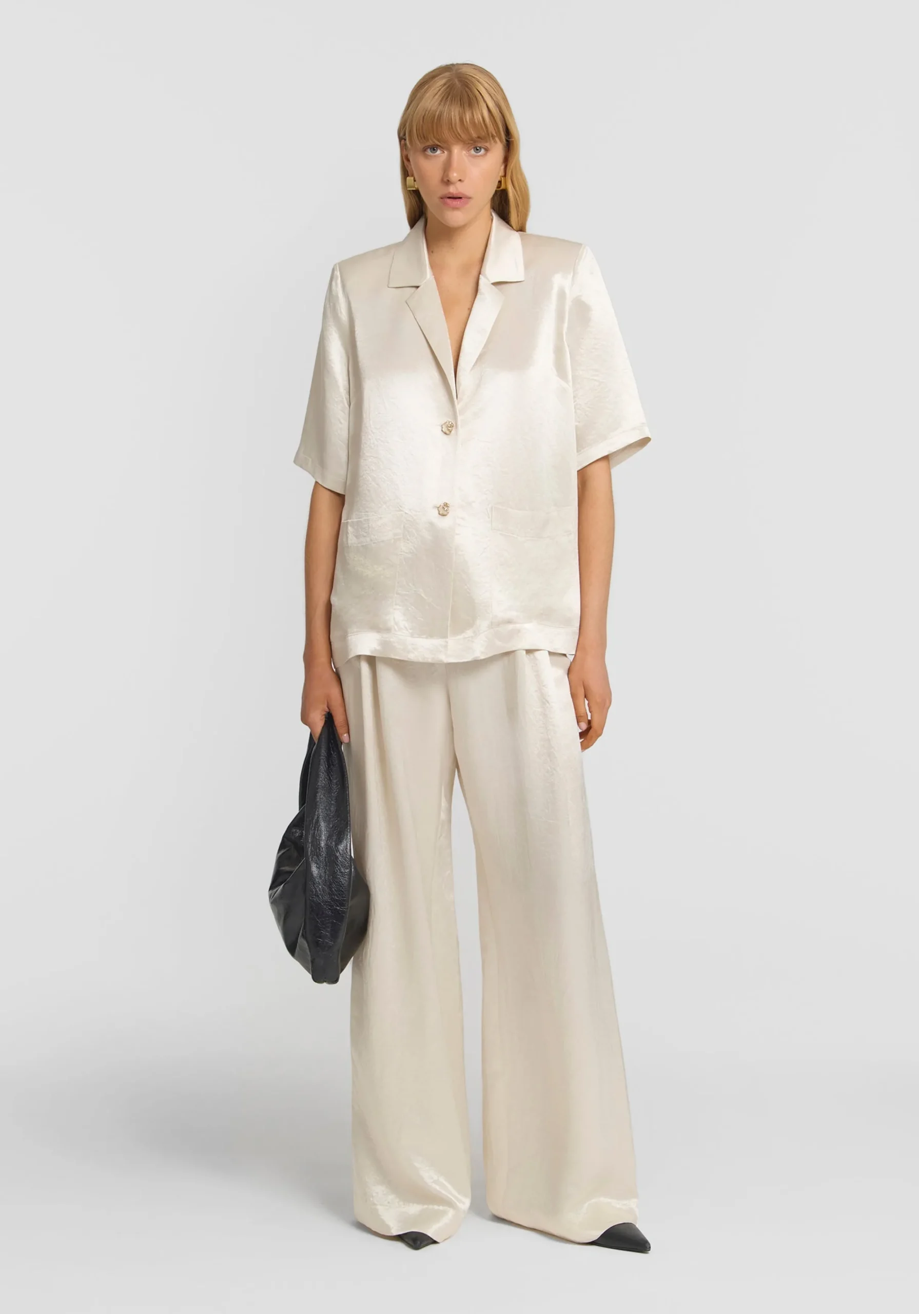 The Hampshire Shirt reimagines our iconic Chorus Shirt, tailored in a versatile champagne hue naia acetate, with a vintage-inspired patina and subtle crinkle effect. Offering a relaxed silhouette with soft shoulder pads. It’s finished with unique gold buttons. Complete the look with the Malone Pant for an effortlessly elevated set dressing moment.MADE IN AUSTRALIA ONLINE EXCLUSIVE