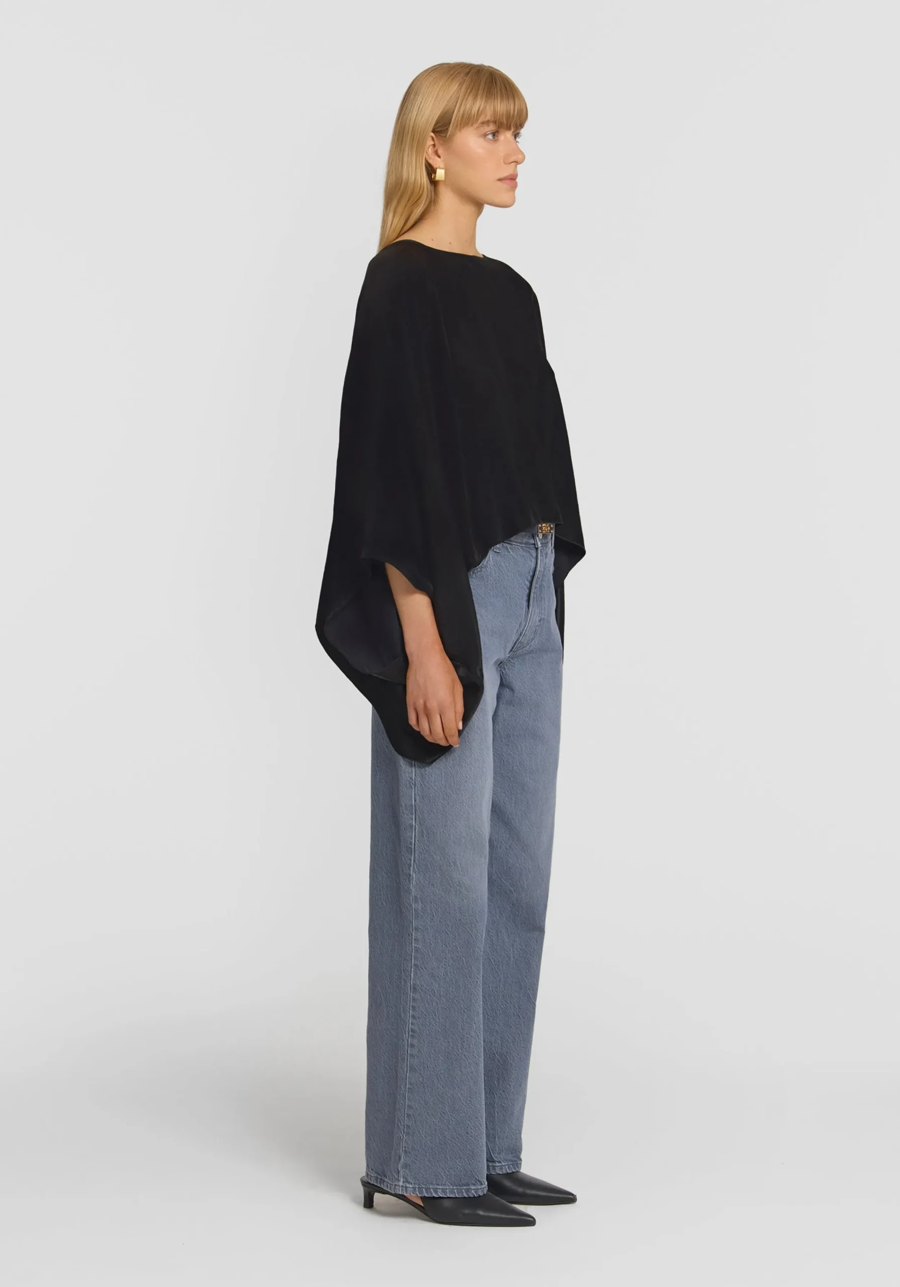 Offering lasting versatility and endless styling possibilities, the Haven Poncho is crafted from our signature cupro blend in timeless black. Designed with a soft scoop neckline and asymmetric hem, it drapes effortlessly, bringing a high-fashion edge and flattering feel to any look.MADE IN AUSTRALIA