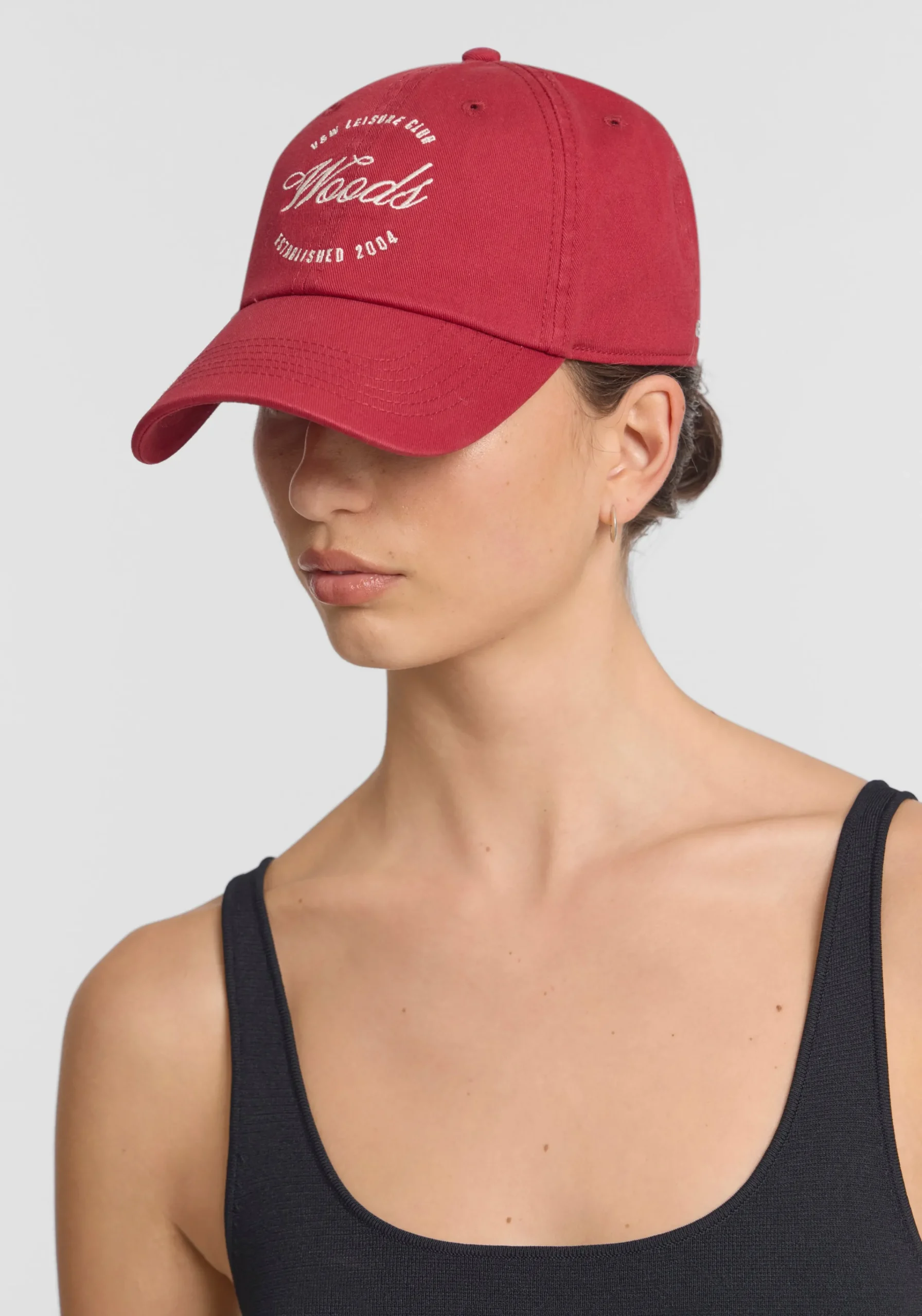 Join the V&W Leisure Club with the Club Woods Cap, crafted in a deep red hue. Designed with a structured finish, it features our new Club Woods print and is complete with an adjustable back strap and branded metal buckle.