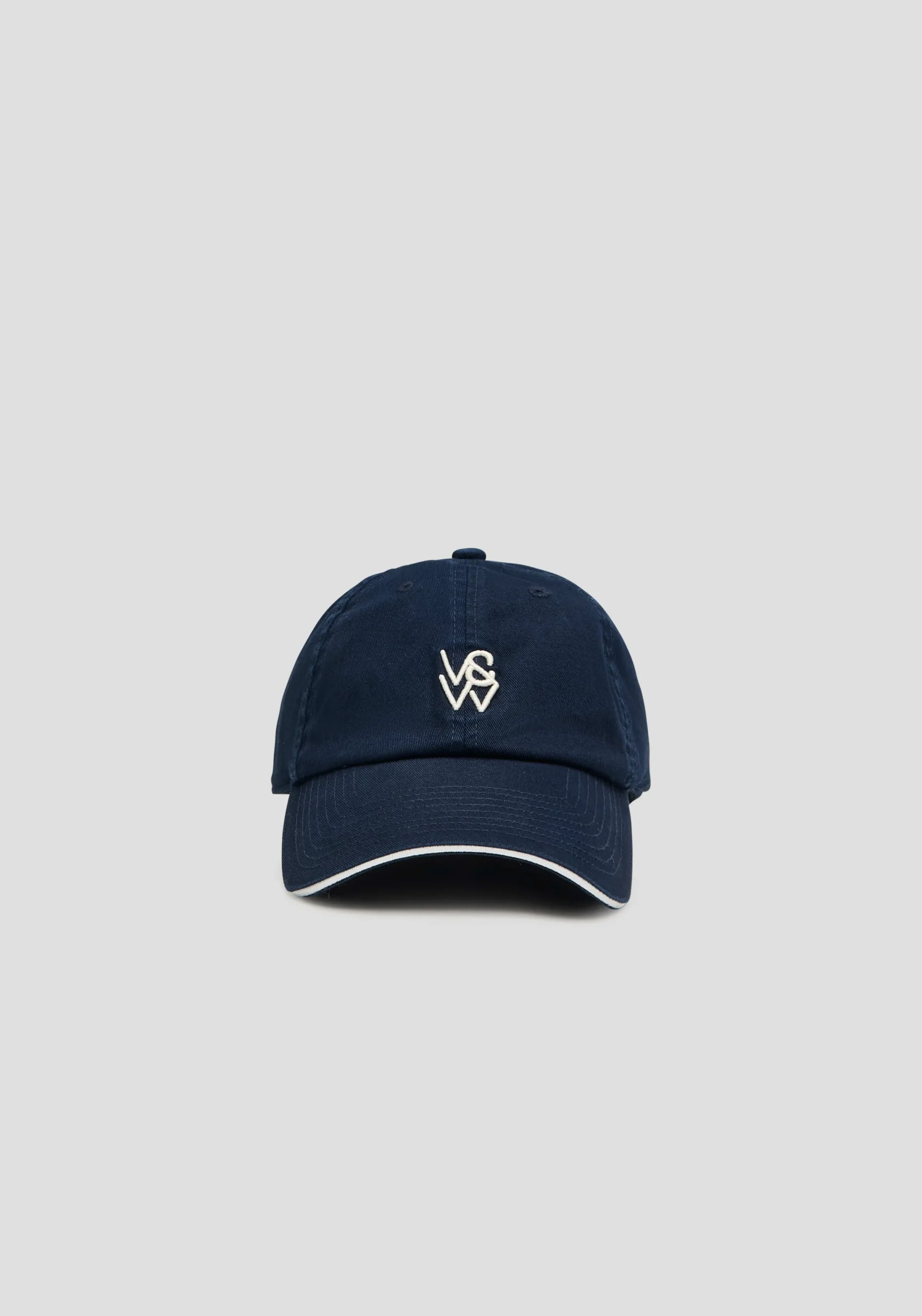Elevate your look with the V&W Tipped Cap, crafted in navy with bold contrast V&W embroidery. Featuring contrast piping along the brim, a structured finish, and is complete with an adjustable back strap and branded metal buckle.