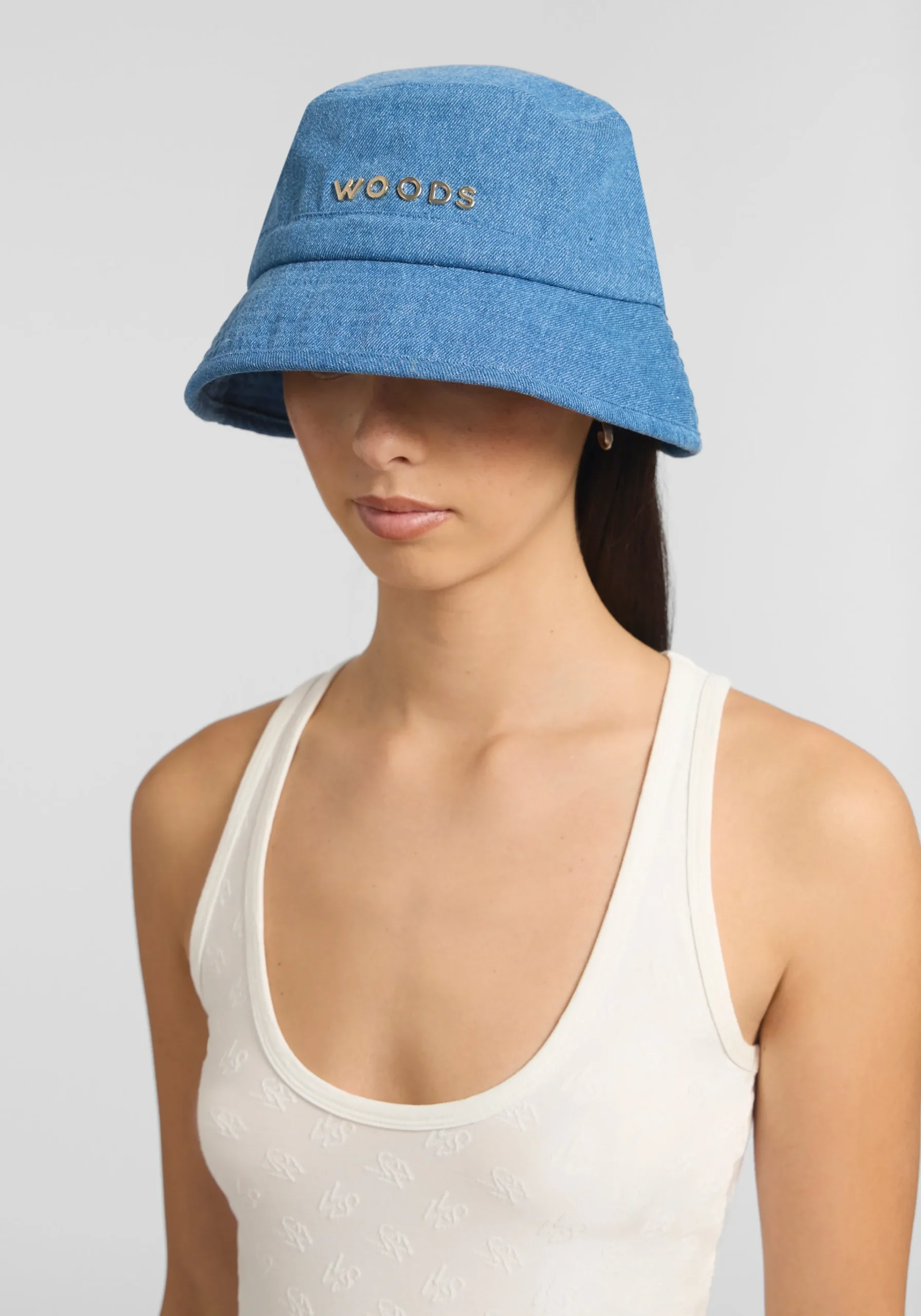 The Woods Metal Bucket Hat, crafted in denim cotton, is an elevated essential for sun-soaked days. Designed for the art of escape, it showcases an embossed gold WOODS logo, an adjustable back drawcord, and multi-topstitch detailing around the brim.