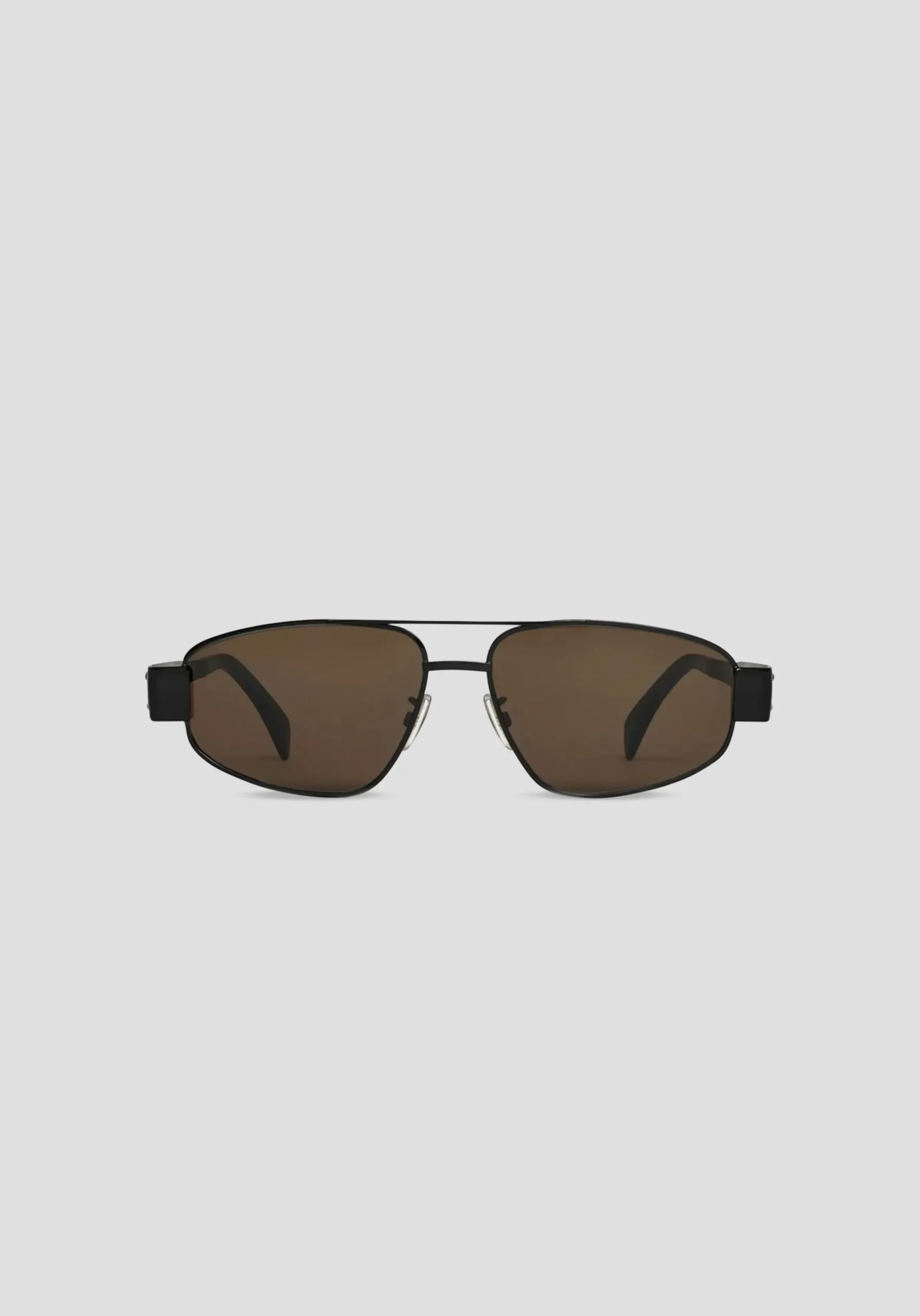 Elevate your look with the Celine Metal Triomphe CL40281U. This pilot frame, crafted from sleek black metal, features stunning grey lenses. The iconic Triomphe emblem adorns the temples, adding a touch of unmistakable sophistication to your everyday style.