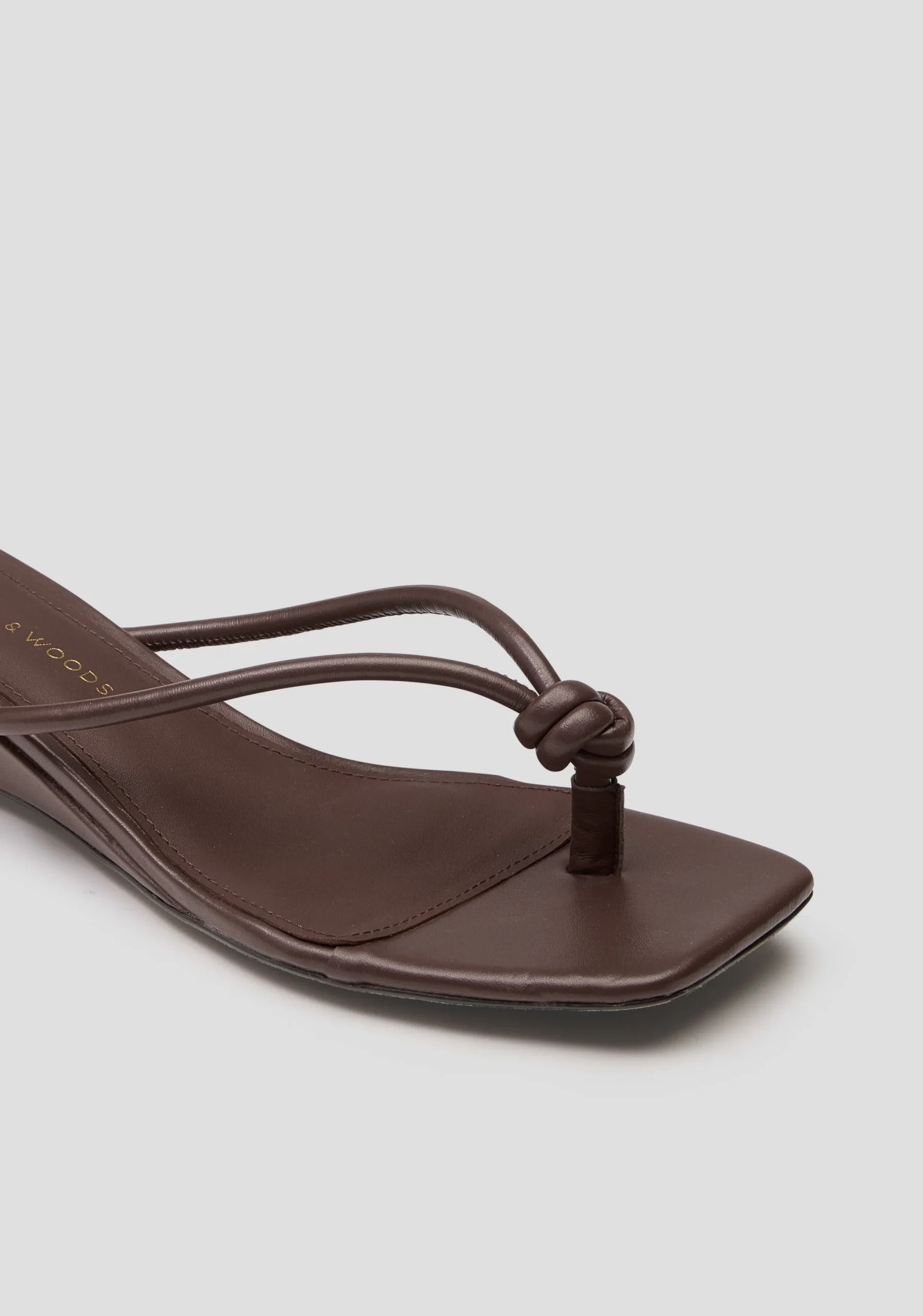 The Athens Wedge, a must-have this season, is crafted in luxurious chestnut brown Nappa leather. Featuring a 4cm wedge heel and knotted toe detail, this staple shoe is an elevated finishing touch for every occasion.