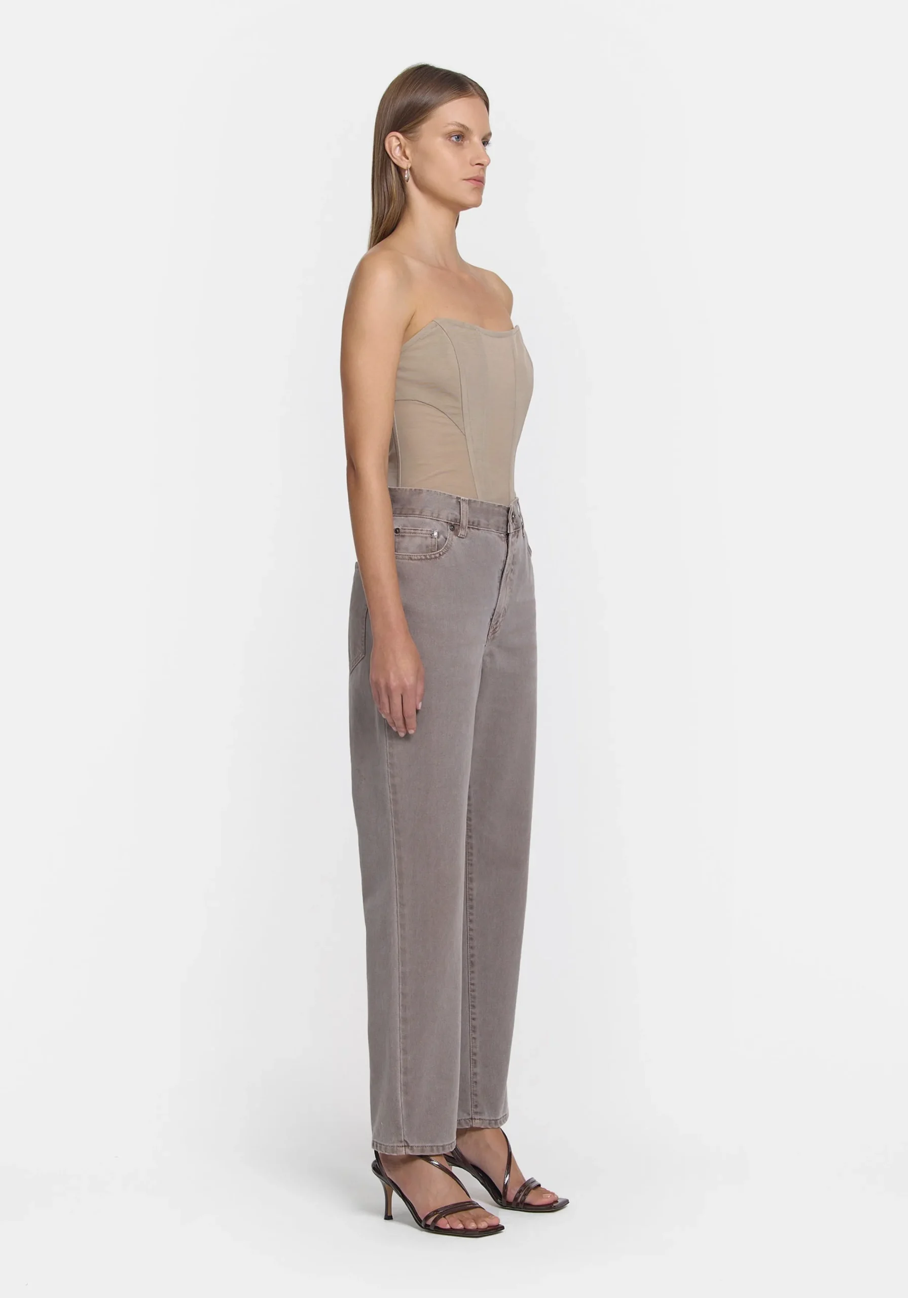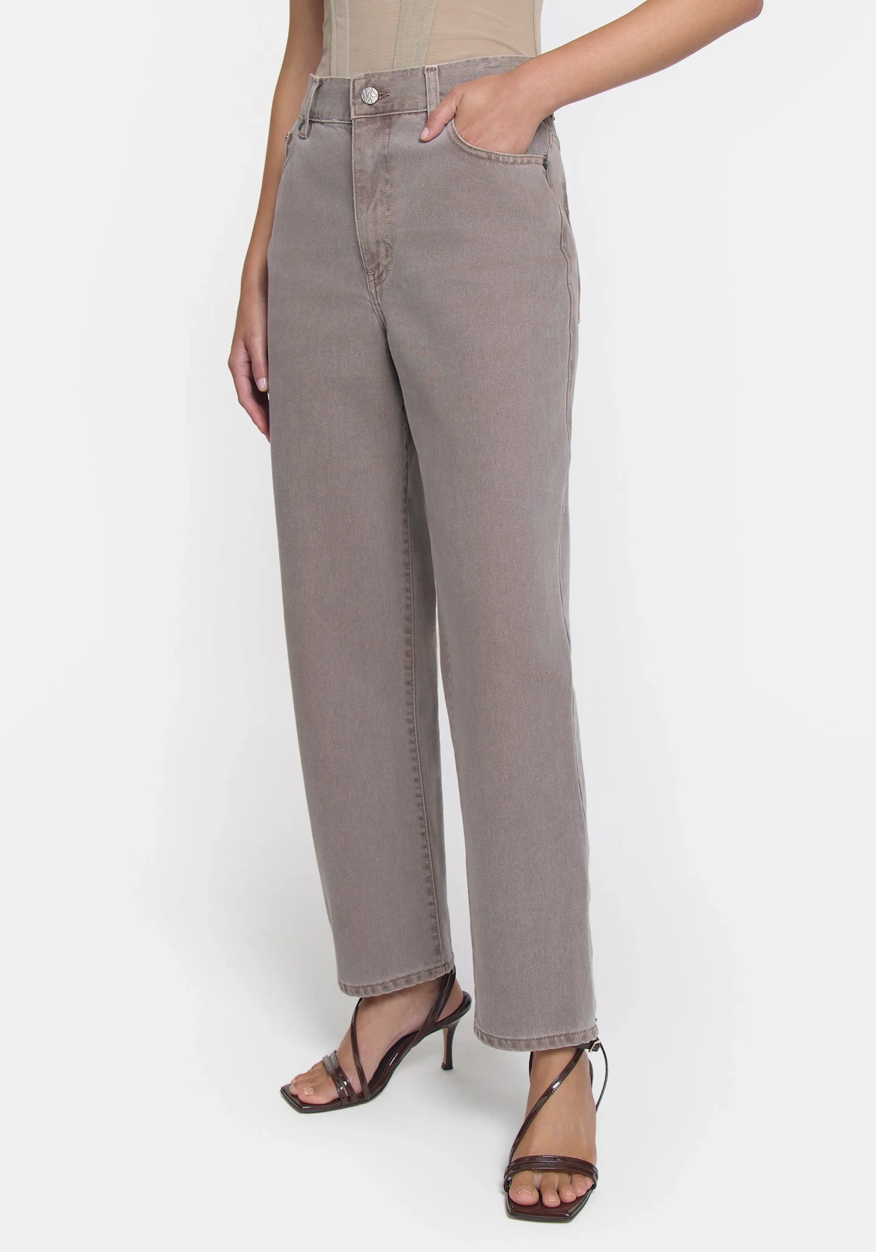 Introducing the Nirvana Jean, featuring a unique stone-wash hue in soft grey with a mid-rise and tapered leg profile. Complete with a sleek black V&W leather patch, it pairs perfectly with the Spartacus Shirt in the matching hue for a chic take on double denim.MADE IN AUSTRALIA