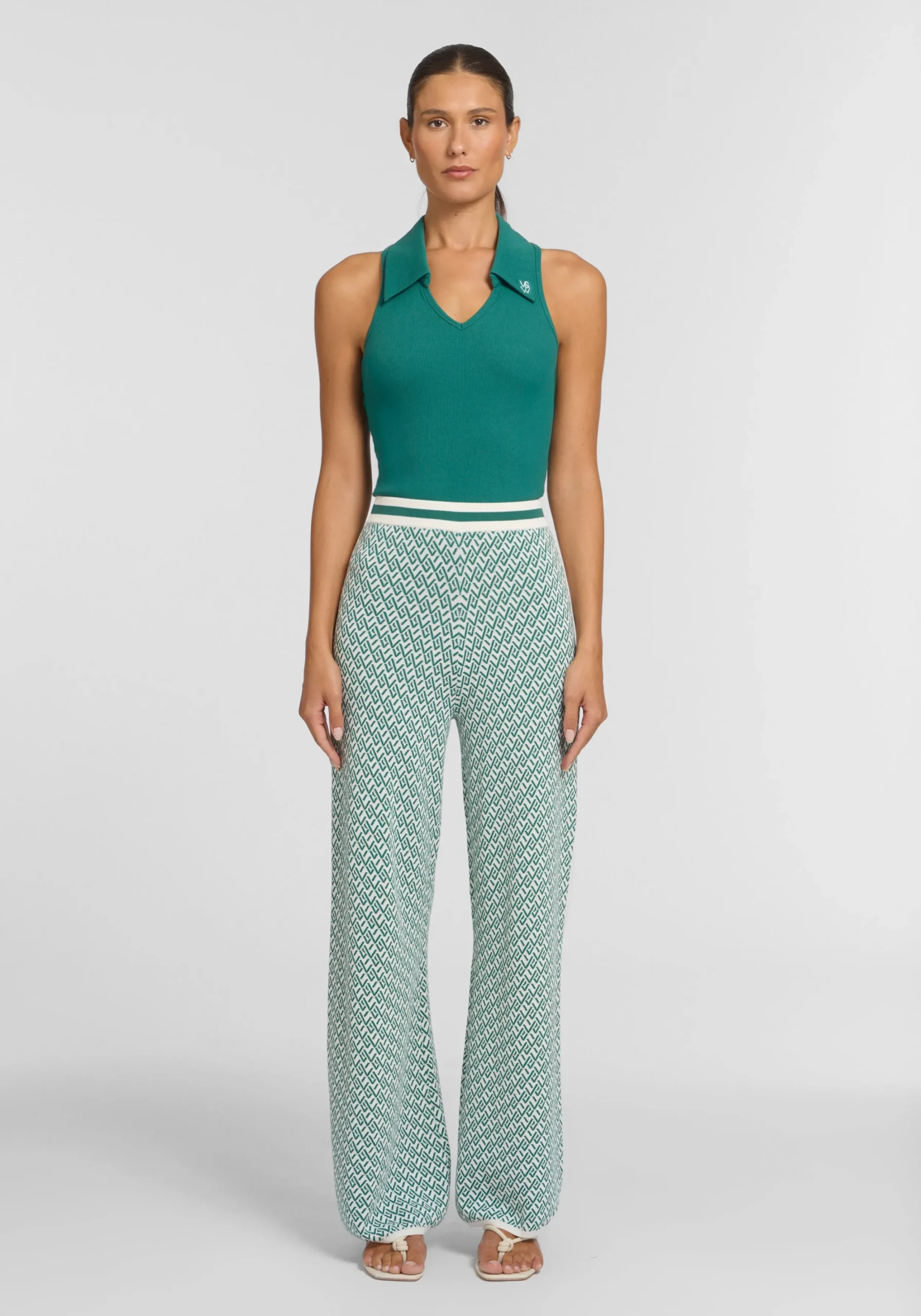 The Blackwell Pant reimagines V&W insignia in a new jacquard pattern, knitted in a lightweight cotton blend. Its wide-leg silhouette with an elasticated ribbed waistband and chic side panels delivers luxurious, restorative style. Pair with the Lifetime Top for a relaxed set, effortlessly carrying you from courtside to beachside escapes.