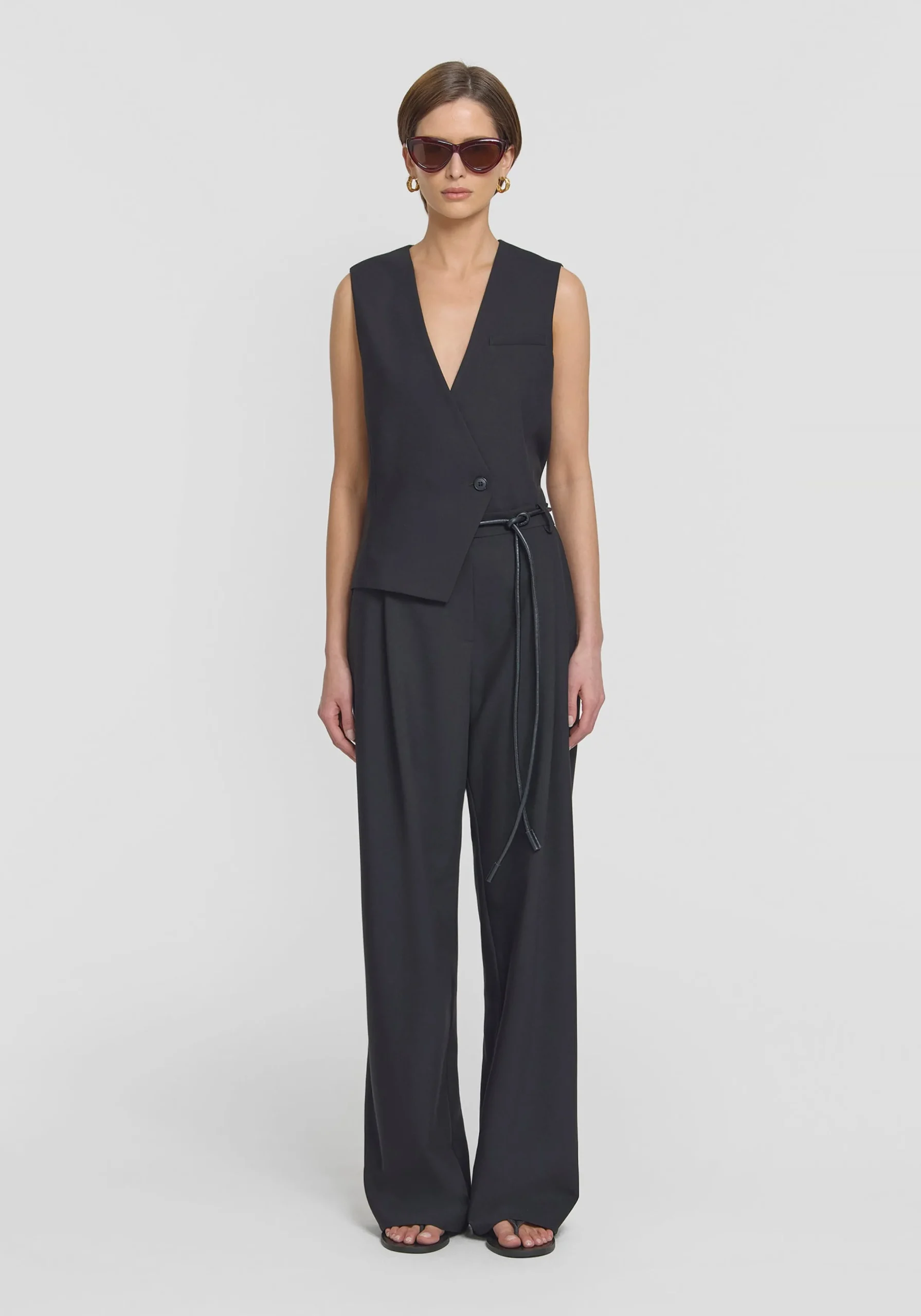 An elevated classic, the Idol Pant is crafted in a soft rayon blend fabrication in a classic black. Falling to a full length and wide leg silhouette, this style features front tucks and functional angled side pockets, pairing perfectly with tailored blazers and shirting for effortless styling. MADE IN AUSTRALIA