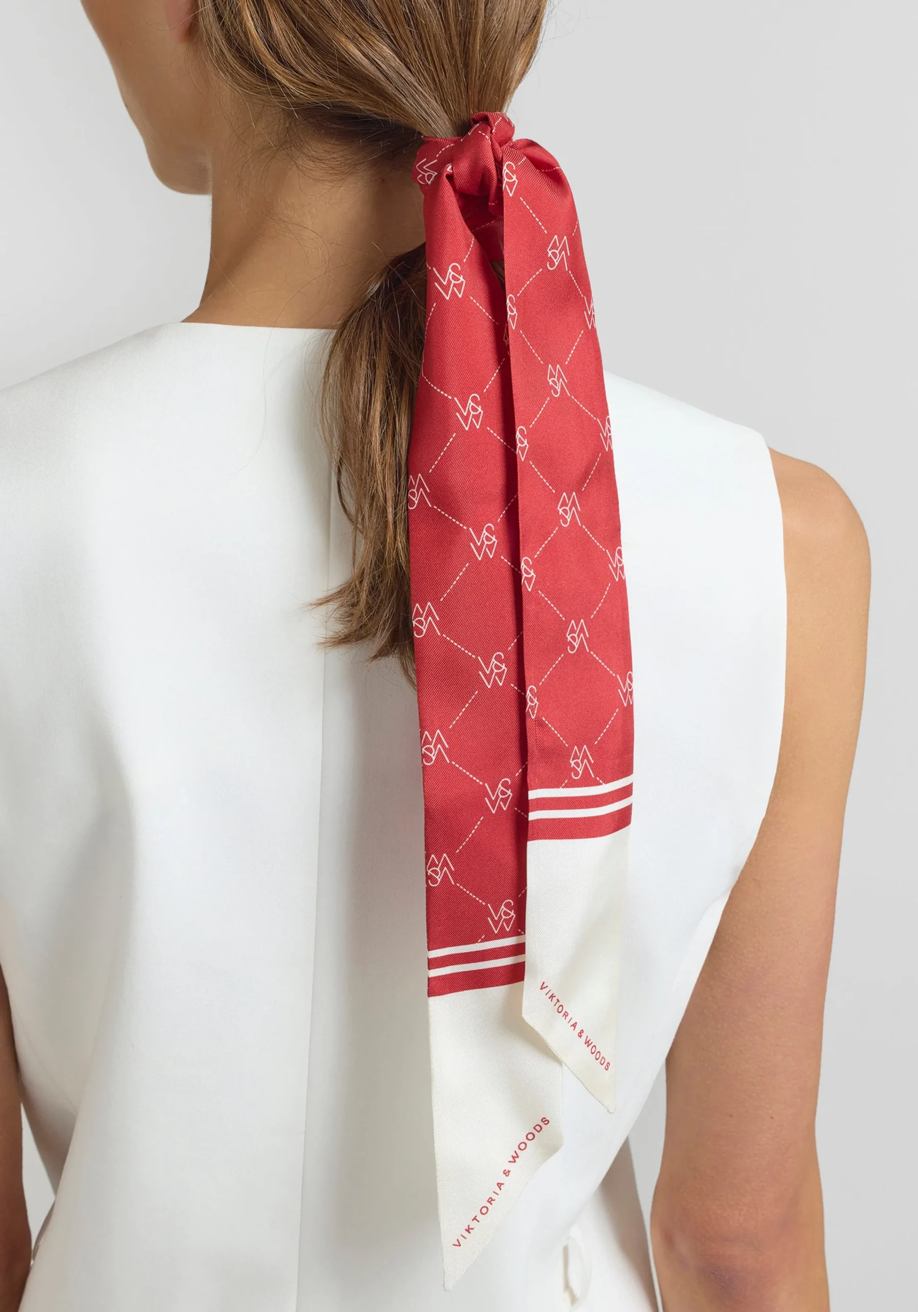 Viktoria & Woods Scarves>Neve Hair Scarf RED/IVORY