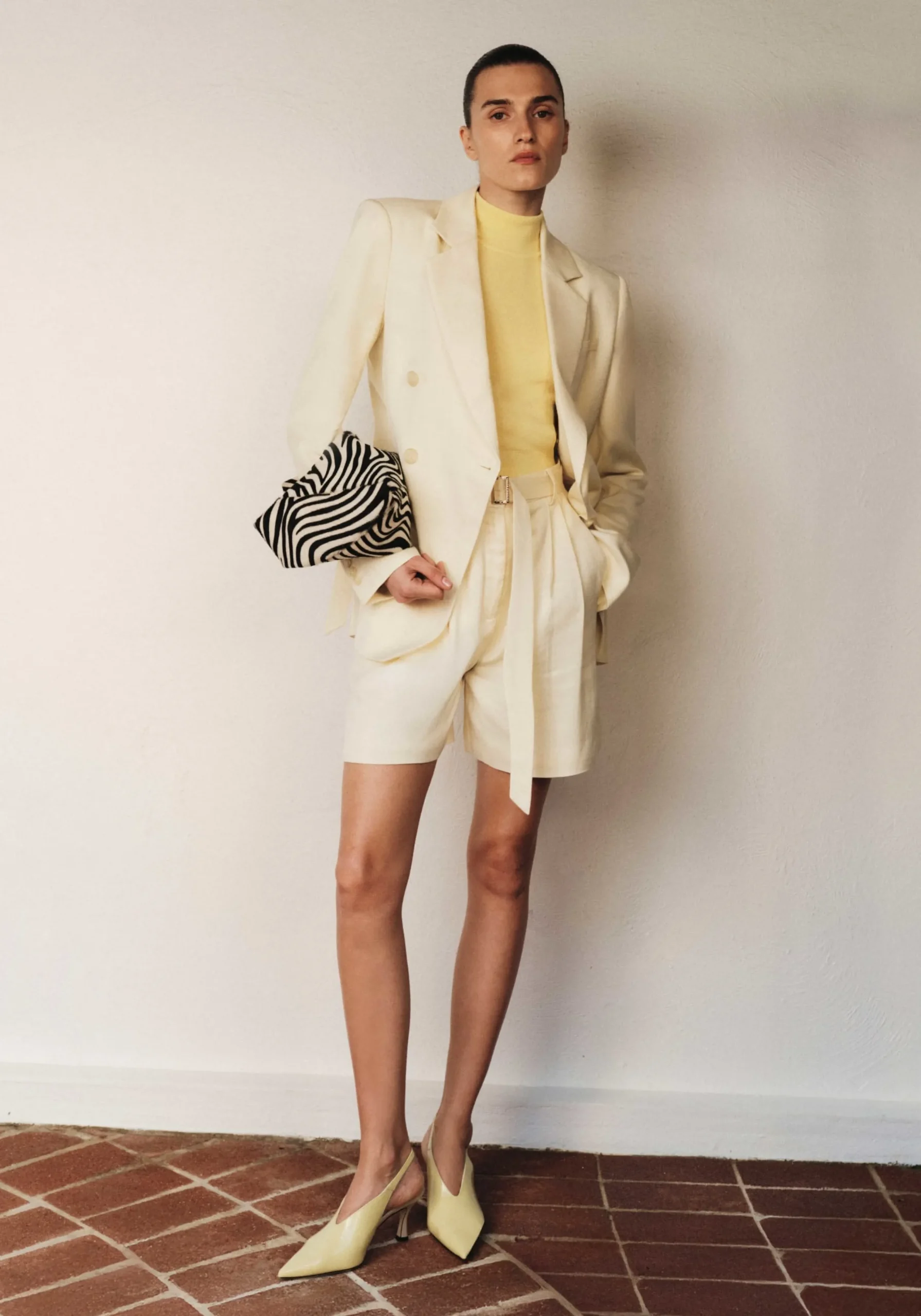 Elevate your tailoring with the Seneca Short, offering relaxed sophistication in a soft yellow hue. Boasting a high-waisted bermuda silhouette, it features front pleats, belt loops, pockets, and complete with considered belt detailing. Pair with the Freefall Blazer for a modern spring suit, or with this season’s yellow offerings for a subtle mix of fabrications and hues.