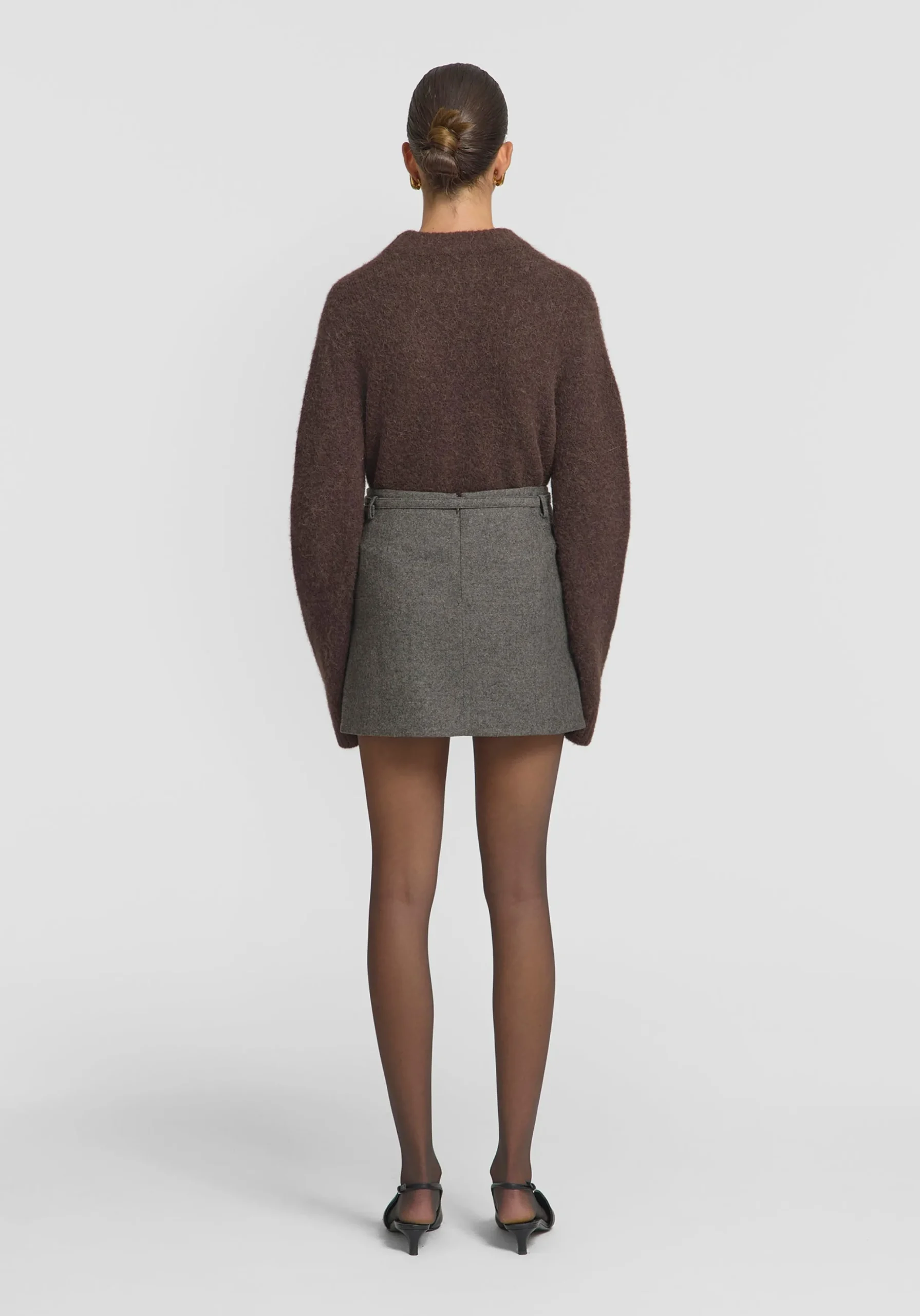 Introducing the Sterling Skirt, the perfect winter mini skirt, luxuriously crafted from a textured brown wool blend tweed. Showcasing a mid-rise fit, grown-on waist, pockets, and delicate belt detailing, it exudes effortless elegance. Complete the look with the Timberlake Jacket, or pair with the Winnipeg Knit or Alberta Knit Top for a chic blend of brown hues.MADE IN AUSTRALIA