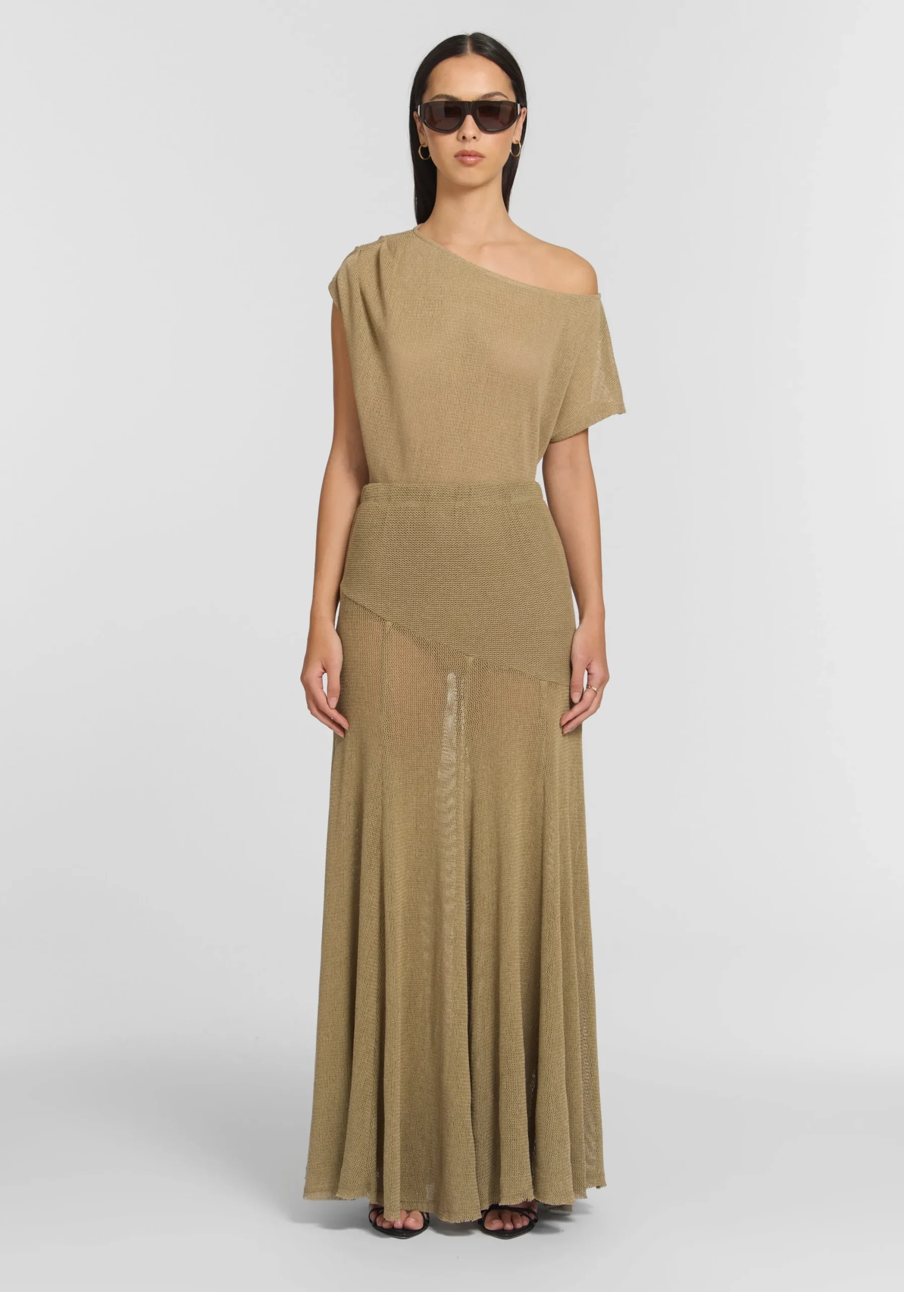 The Mayhem Skirt, a subtle statement realised in a sheer, tactile knit in soft sage, brings a fresh calm to modern dressing. Featuring an elasticated waistband, front yoke detail, and a soft bell-shaped silhouette with a raw-edge hem, it captivates with textured movement. Pair with the matching Wildcard Tee for an ethereal look that exudes artful confidence.MADE IN AUSTRALIA