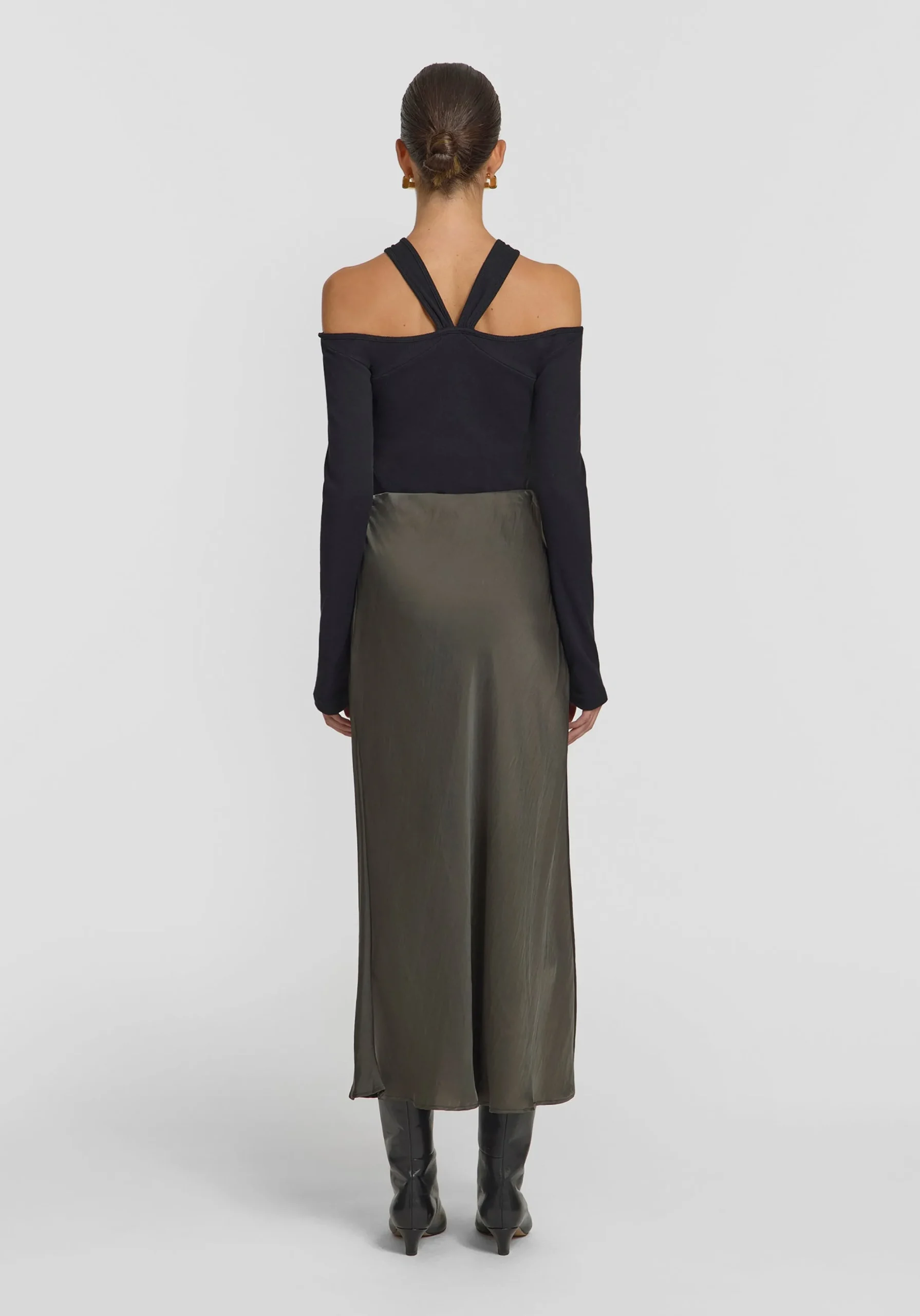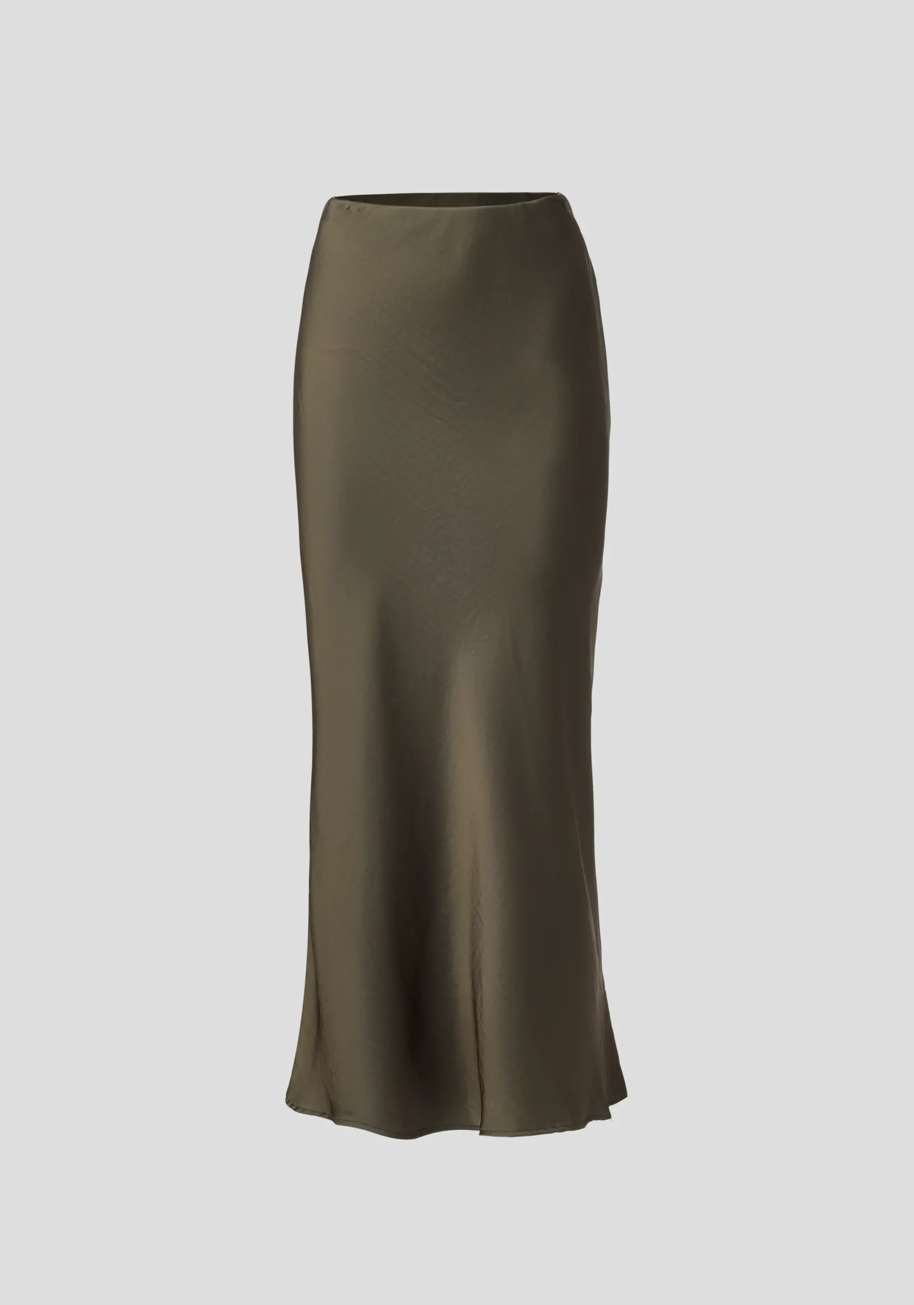 Introducing the Othello Skirt, a sophisticated staple crafted from a cupro blend in a versatile olive green hue. Cut on the bias in a mid-rise, midi-length silhouette, this skirt effortlessly embodies timeless elegance for any occasion. Pair it with this season’s olive green offerings for an effortless tonal look, or style it with V&W basics for everyday wear.MADE IN AUSTRALIA