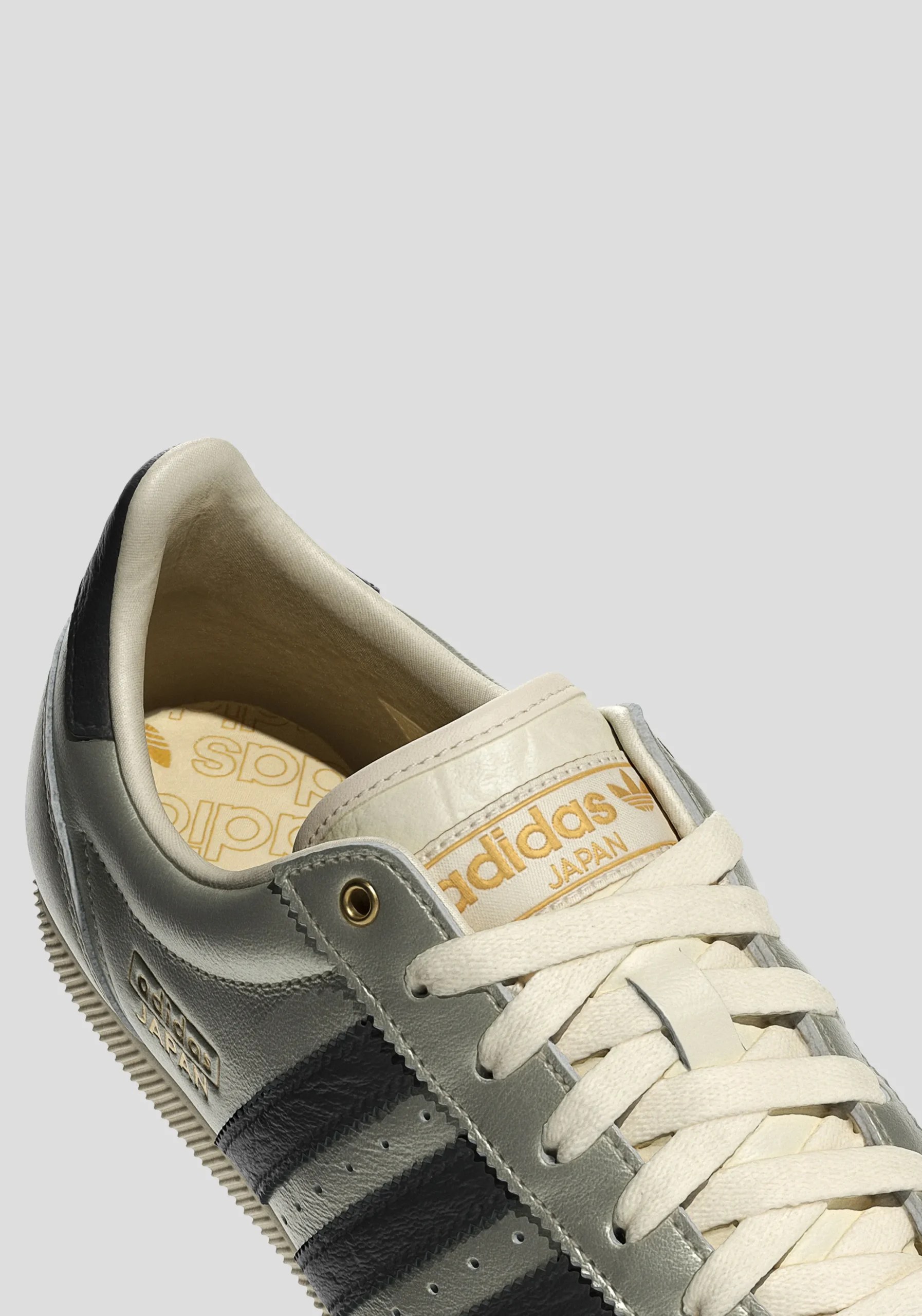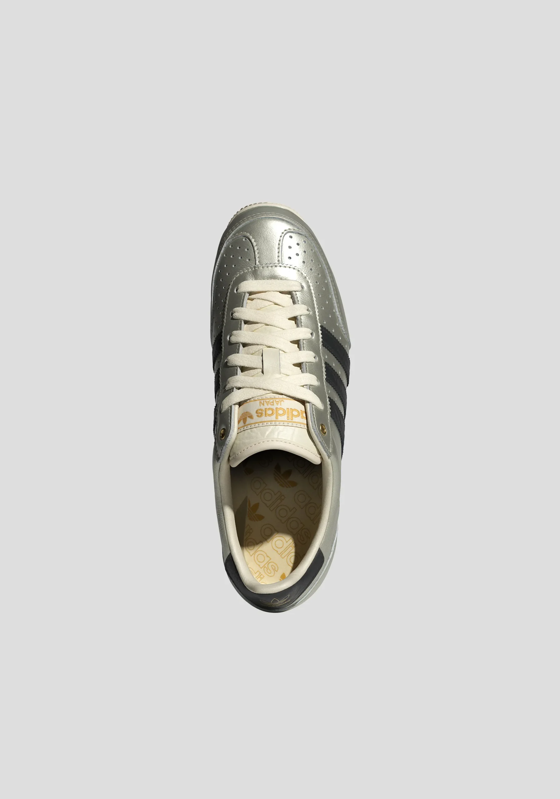 Step back in time with the Adidas Japan sneakers, a reissue of the 1964 trainer from Japan’s global sporting event. In metallic silver with black accents, these low-profile sneakers blend vintage style with modern appeal, featuring a double-stitched T-toe for a unique twist.WOMEN’S SIZING
