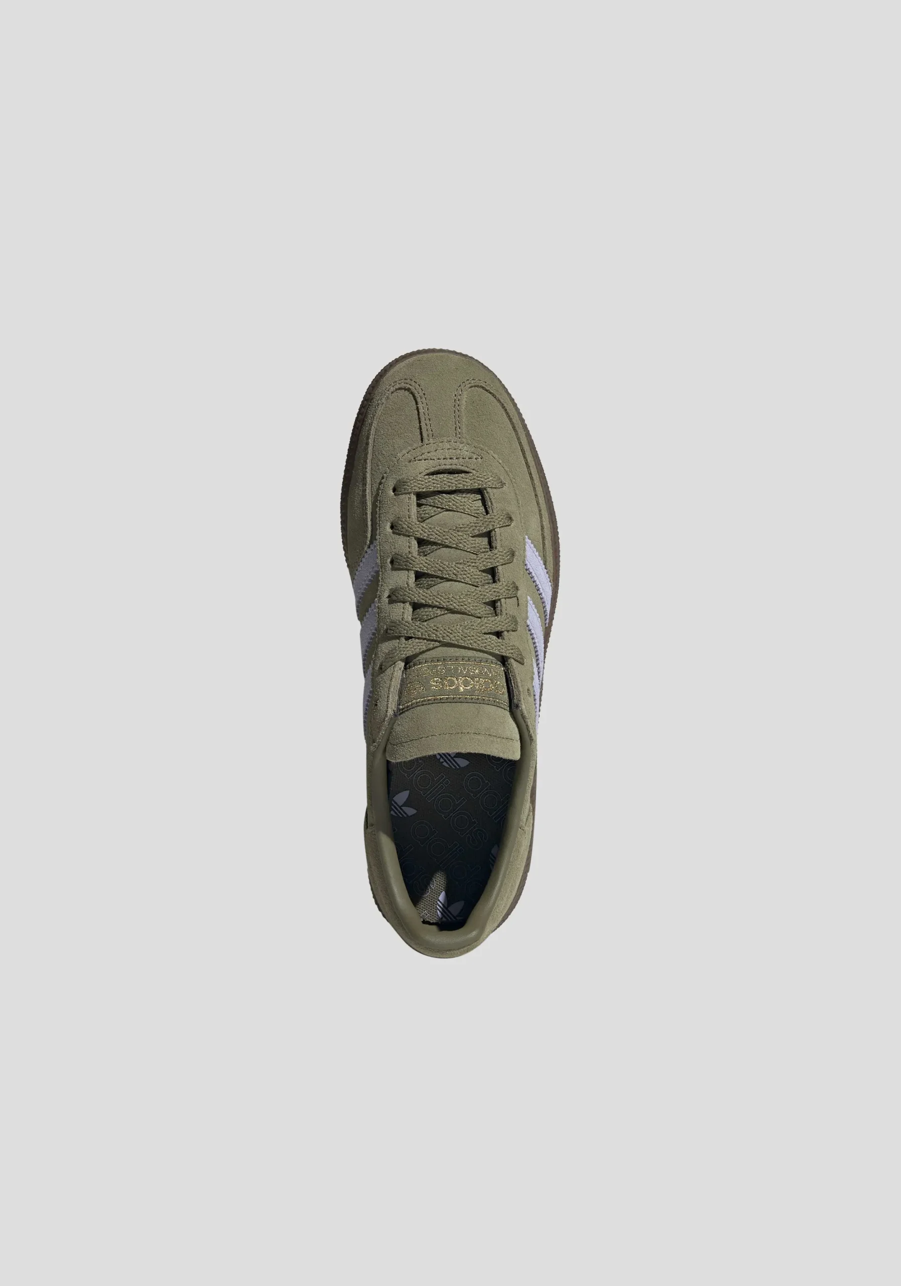 These Handball Spezial sneakers, a low-profile silhouette reimagined for the contemporary wardrobe. These Adidas Originals, crafted in a nuanced focus olive and violet palette, offer a refined take on retro sportswear. Premium suede forms the upper, accented by tonal suede 3-Stripes, echoing the brand’s iconic archive. The classic design, grounded by a durable gum rubber outsole, provides both enduring style and everyday practicality.WOMEN’S SIZING
