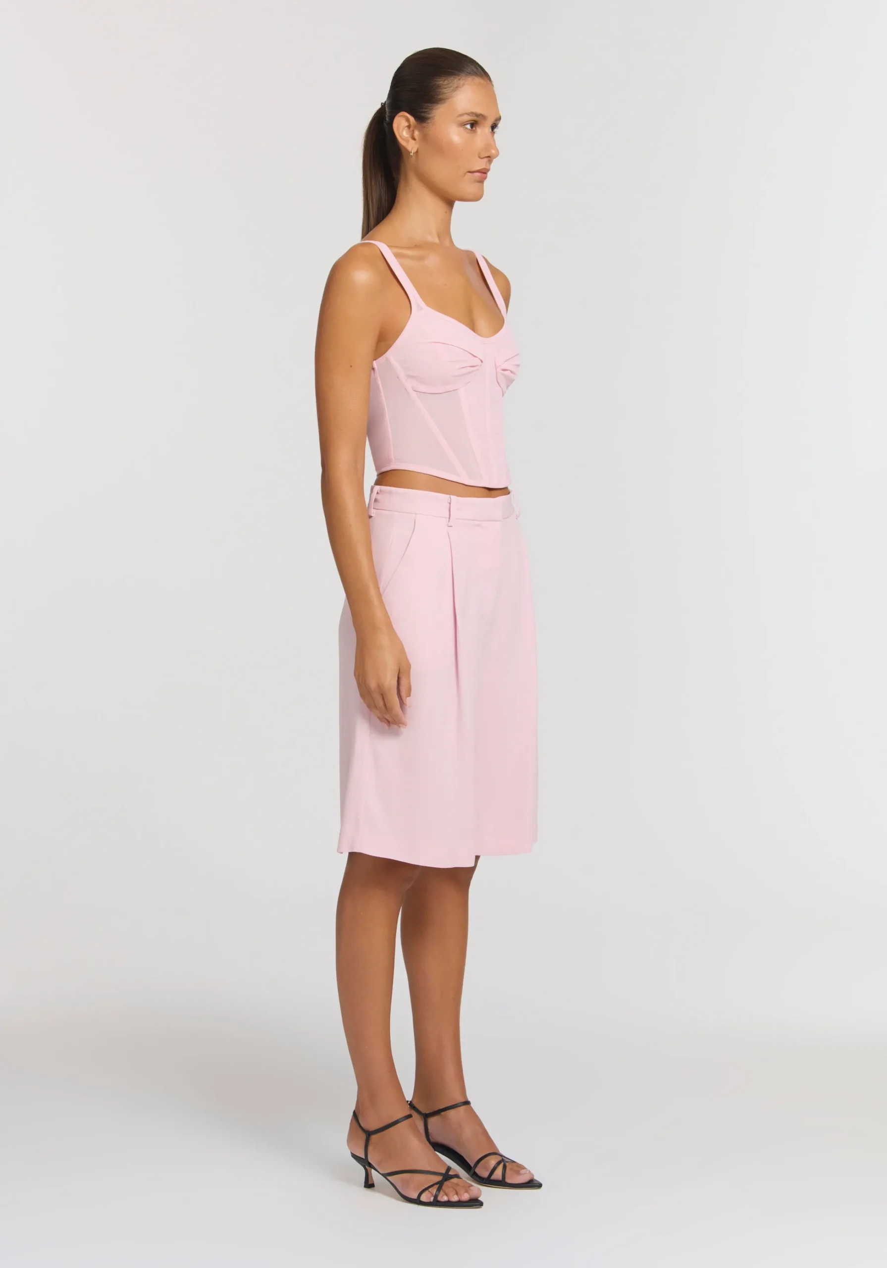 The Wanderlust Bustier, crafted from signature V&W powermesh in rosewater pink, redefines occasion dressing with considered elegance. Featuring a sweetheart neckline with pleated bust cups, panelled boning, and a softly curved hem, it creates a flattering, sculpted silhouette. Complete the look with the Monologue Short and Bombshell Blazer for a summer suiting moment that makes a statement.MADE IN AUSTRALIA