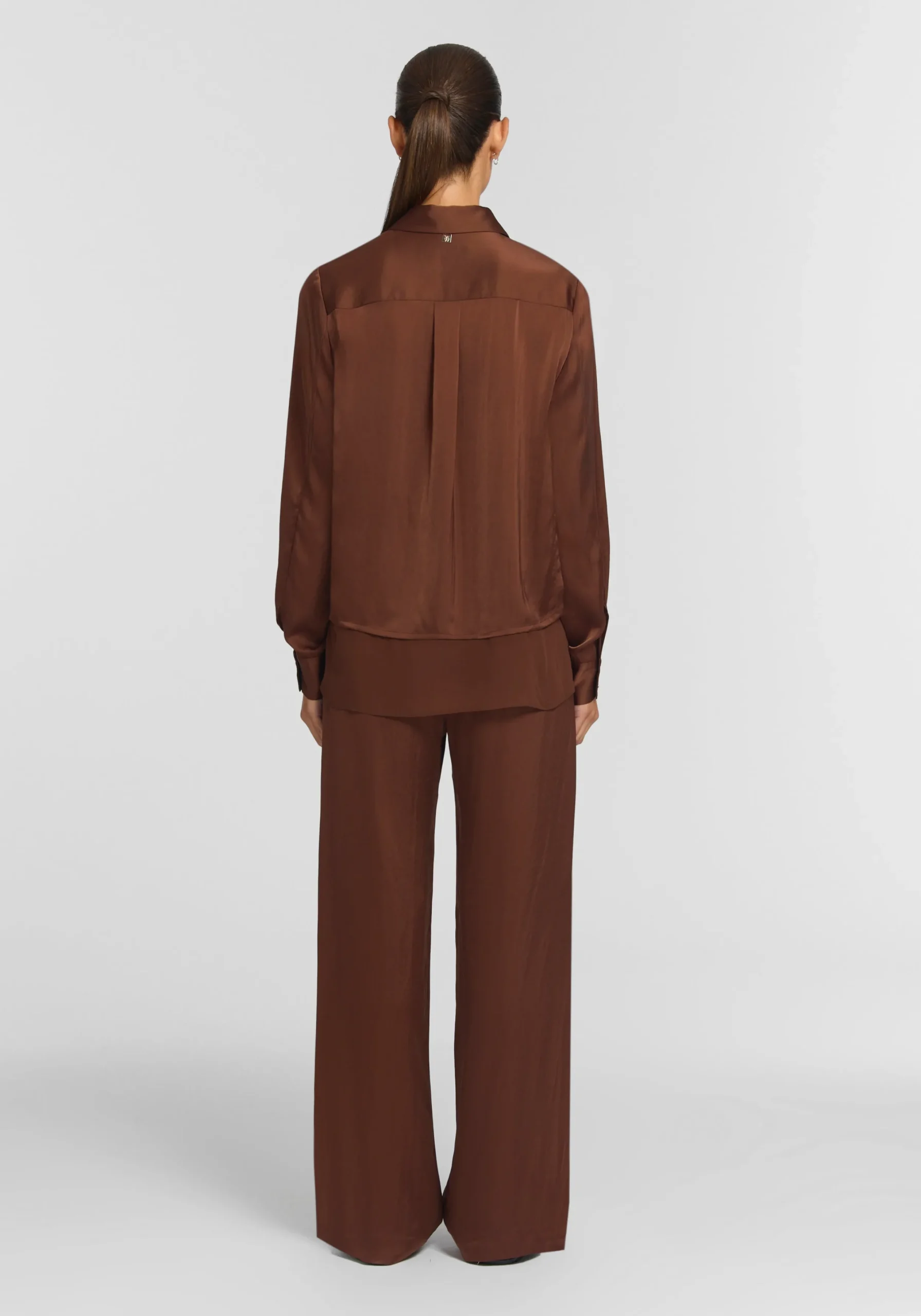 The Demigod Shirt, crafted in our signature cupro blend in chestnut brown, is an essential elevated with considered detailing. With a traditional placket, collar, buttoned cuffs and relaxed fit, it’s complete with a gold metal V&W pip at the back neck. Offering inherent lightness and a beautiful drape, it’s refined by contrast silk side panels that introduce a private sense of luxury. Pair with the Rocky Pant in the matching hue for an effortlessly versatile set.MADE IN AUSTRALIA