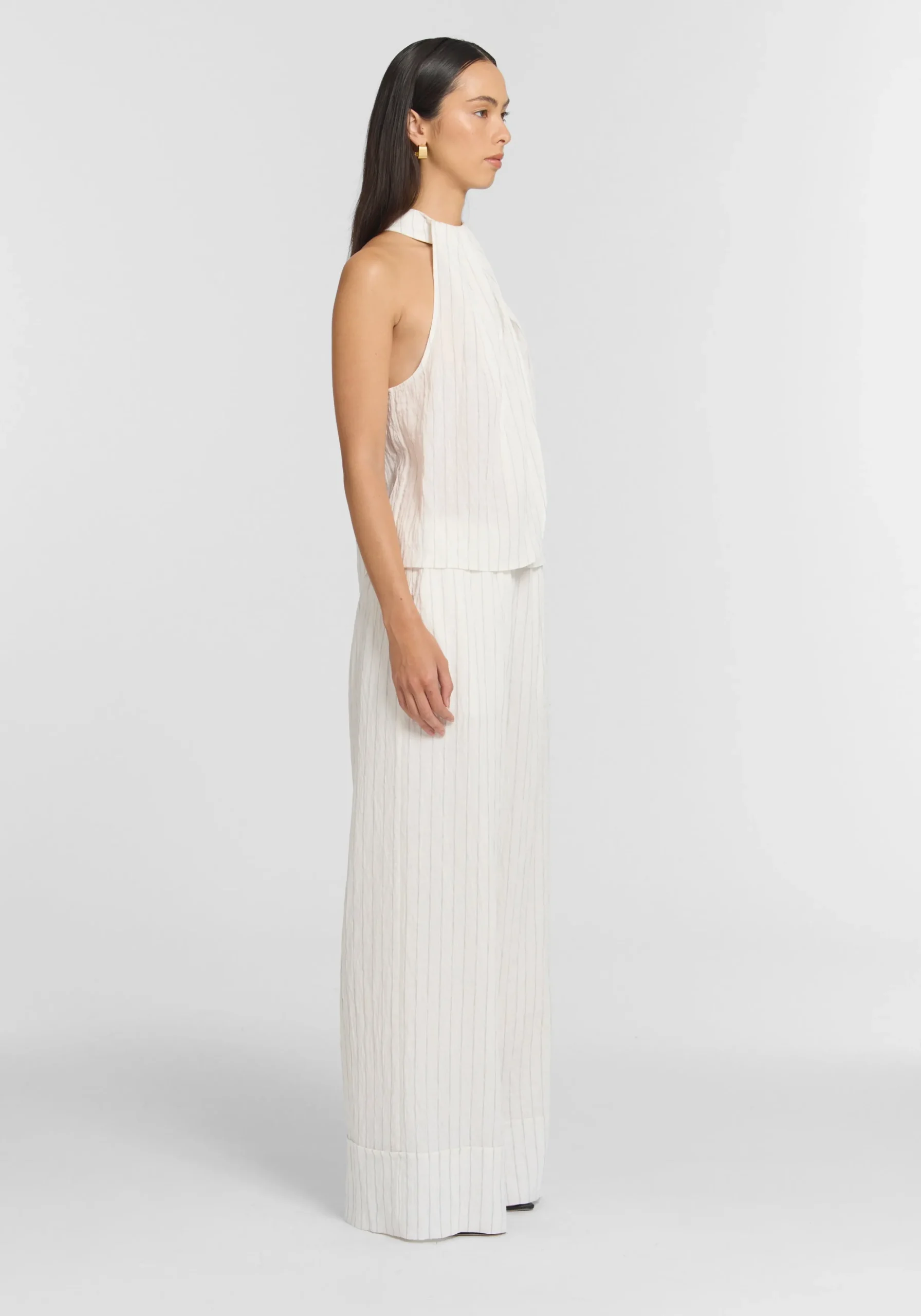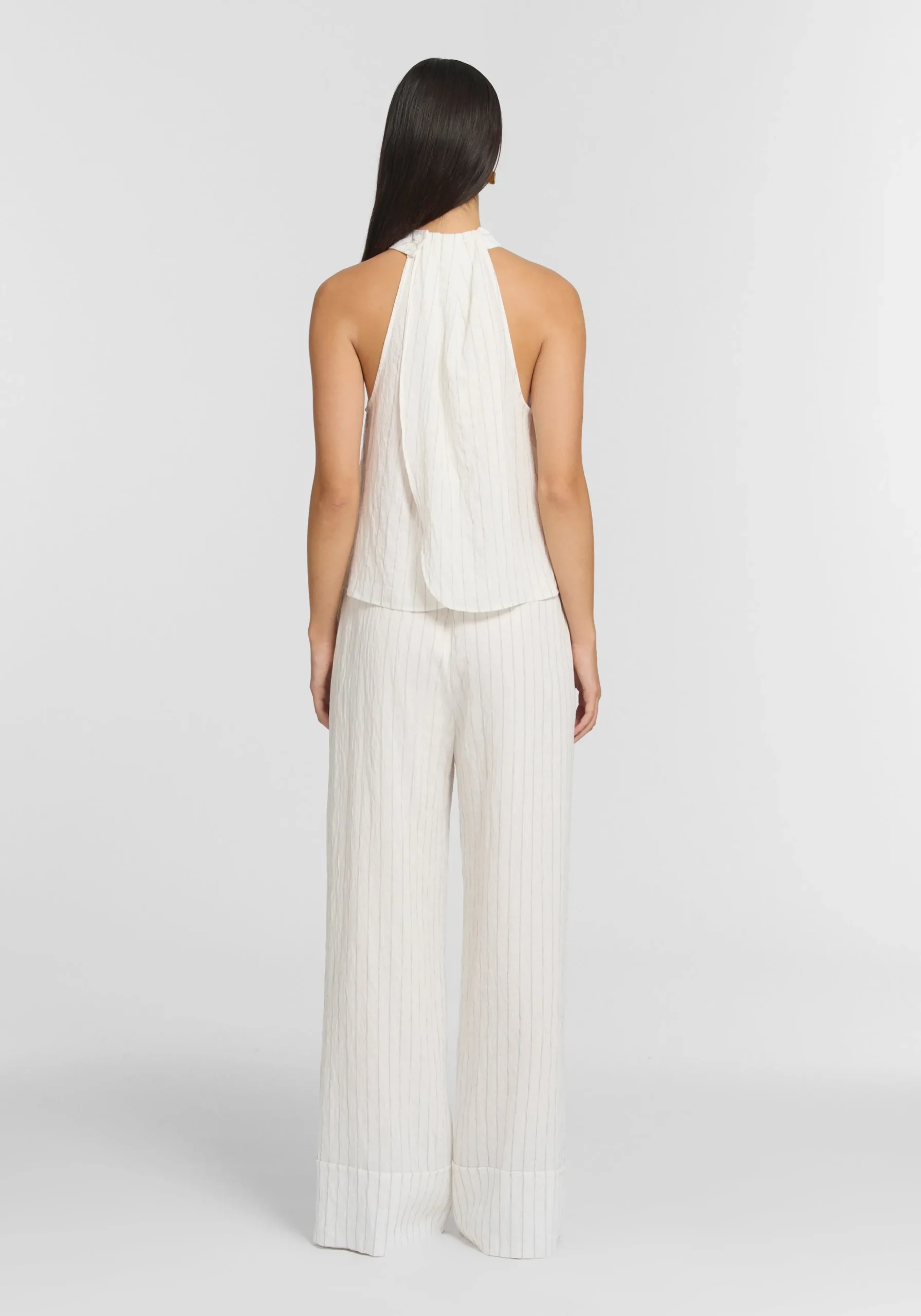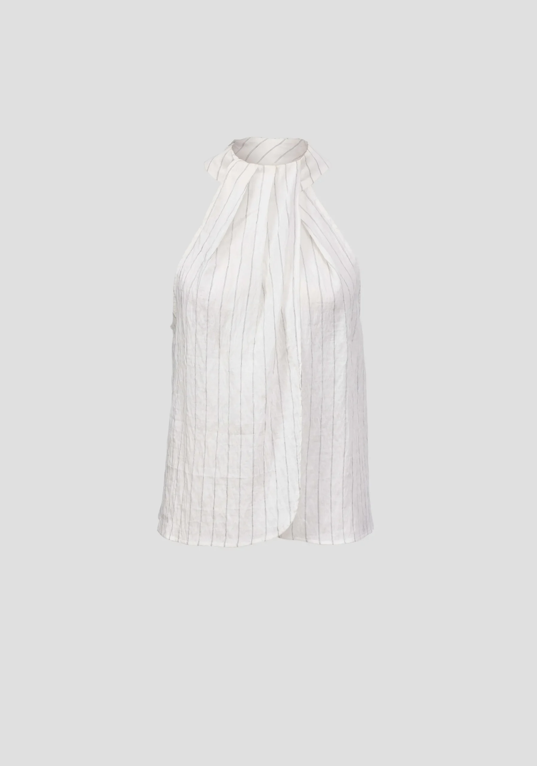 The Friendship Top, realised in a lightweight, fluid textile with a neutral stripe, embodies modern minimalism with restorative ease. Featuring a high-neck halter silhouette with crossover detailing, it moves seamlessly between quiet retreats and celebratory moments. Pair back with the Redford Trouser for the perfect summer uniform.MADE IN AUSTRALIA