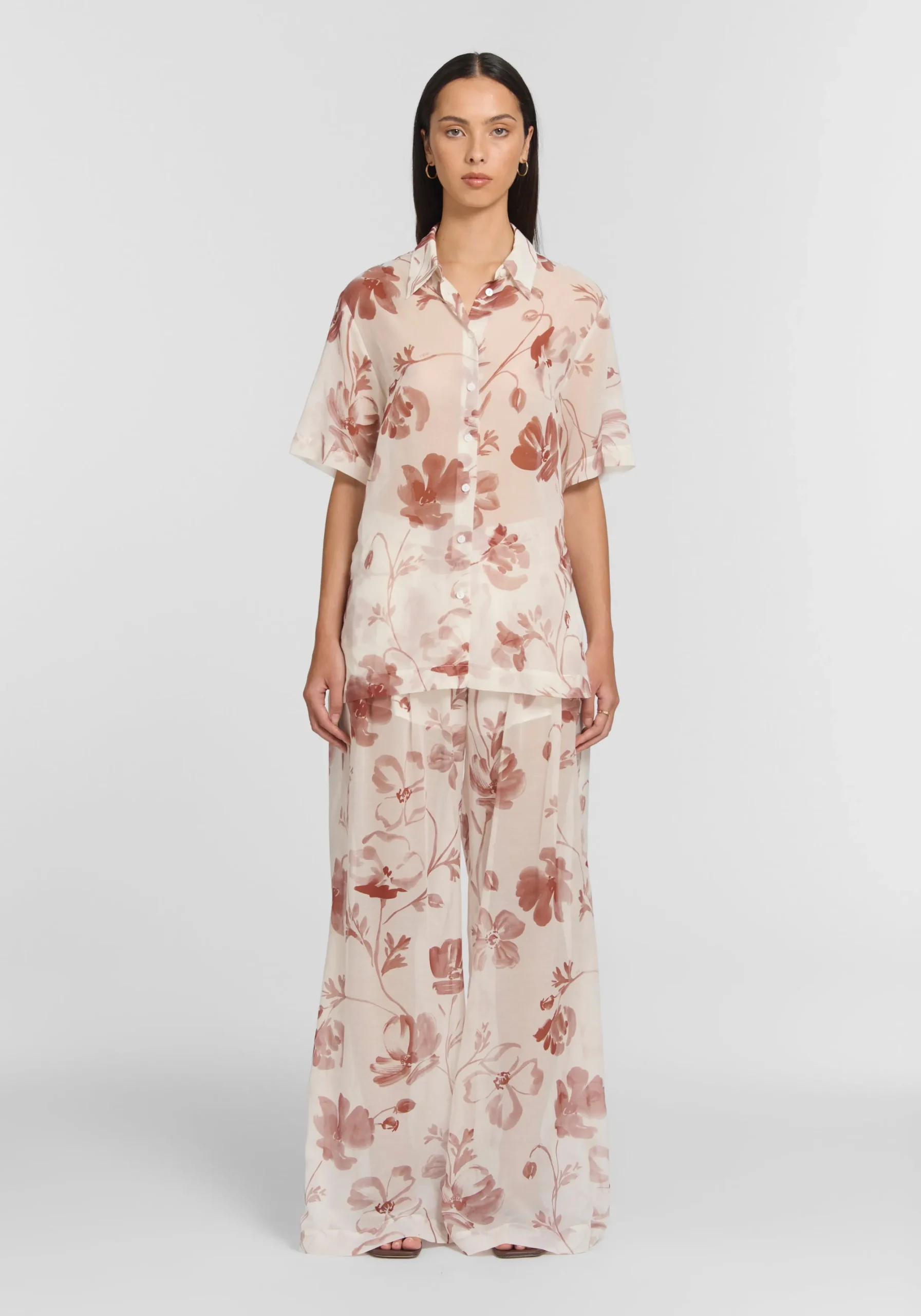 The Goldstone Shirt, crafted from a cotton-silk blend in a unique red and ivory floral, offers effortless elegance. Featuring a traditional collar, button front, and optional wrap detail, it fuses elevated versatility with relaxed sophistication. Pair with the Harlot Pant for a summer set, or style back with everyday staples for a pared-back look.MADE IN AUSTRALIA