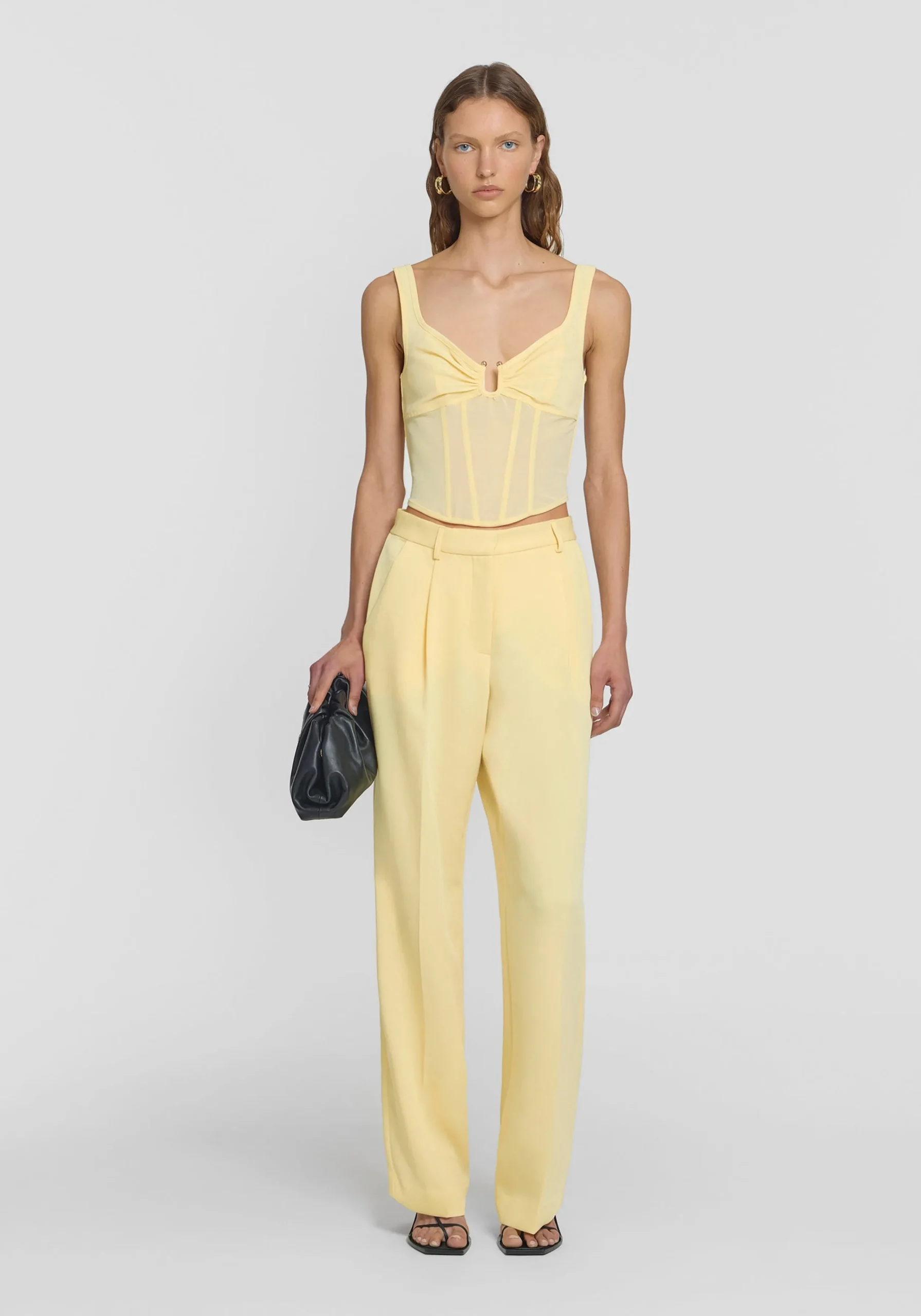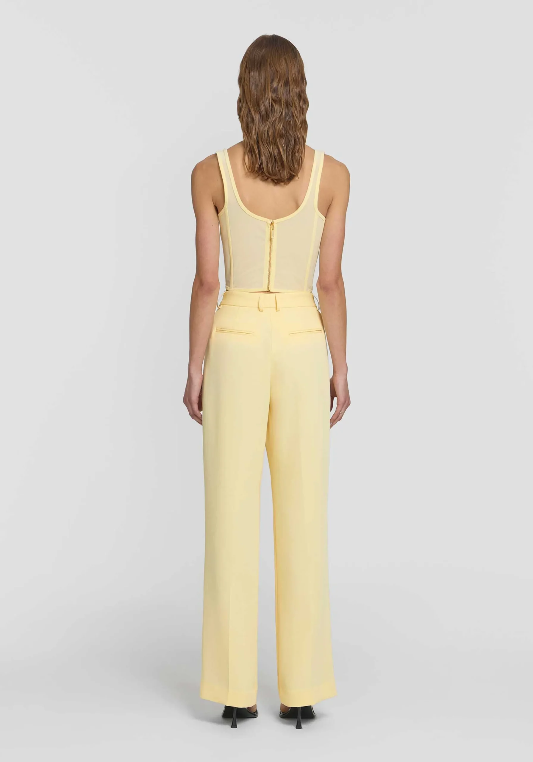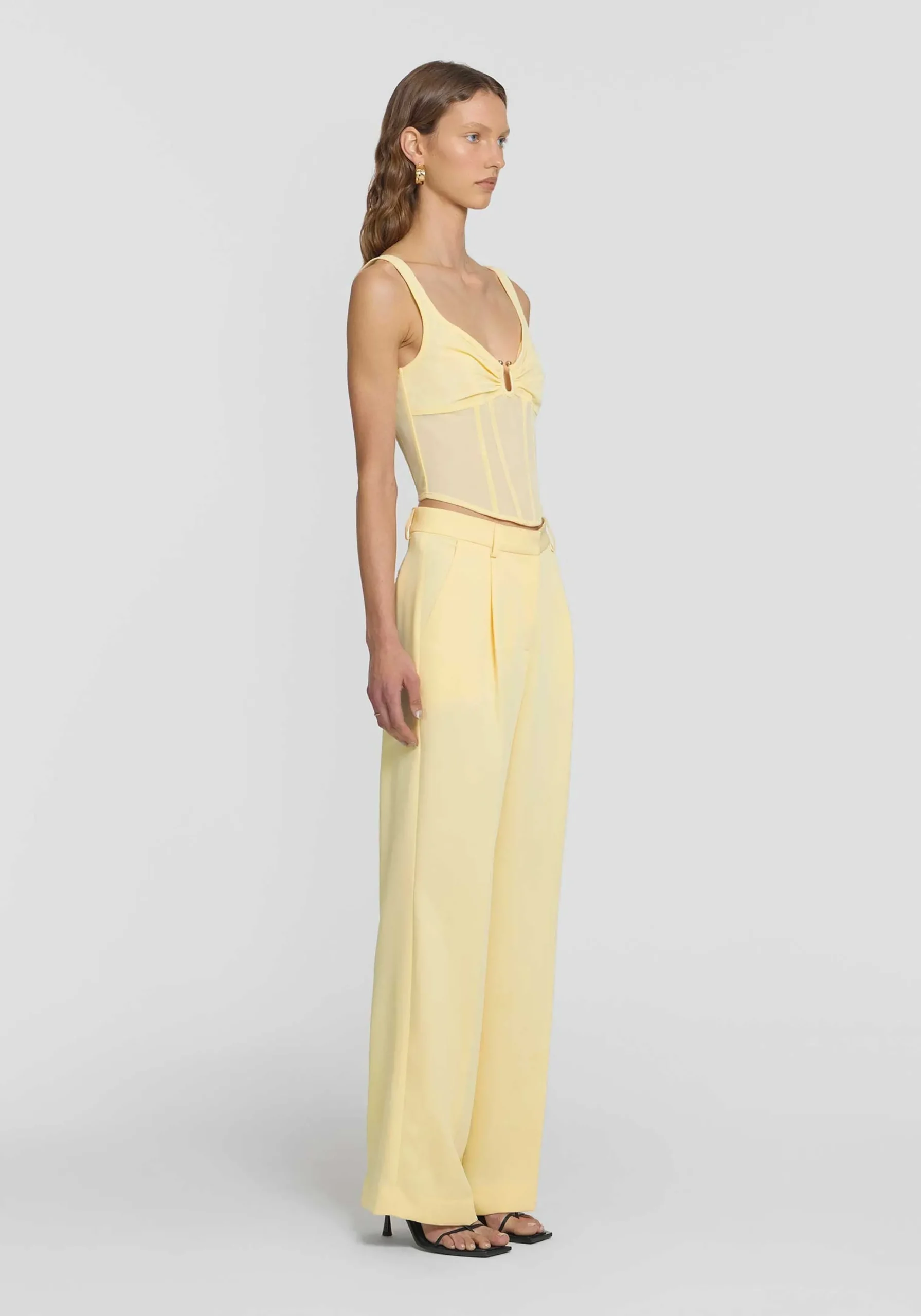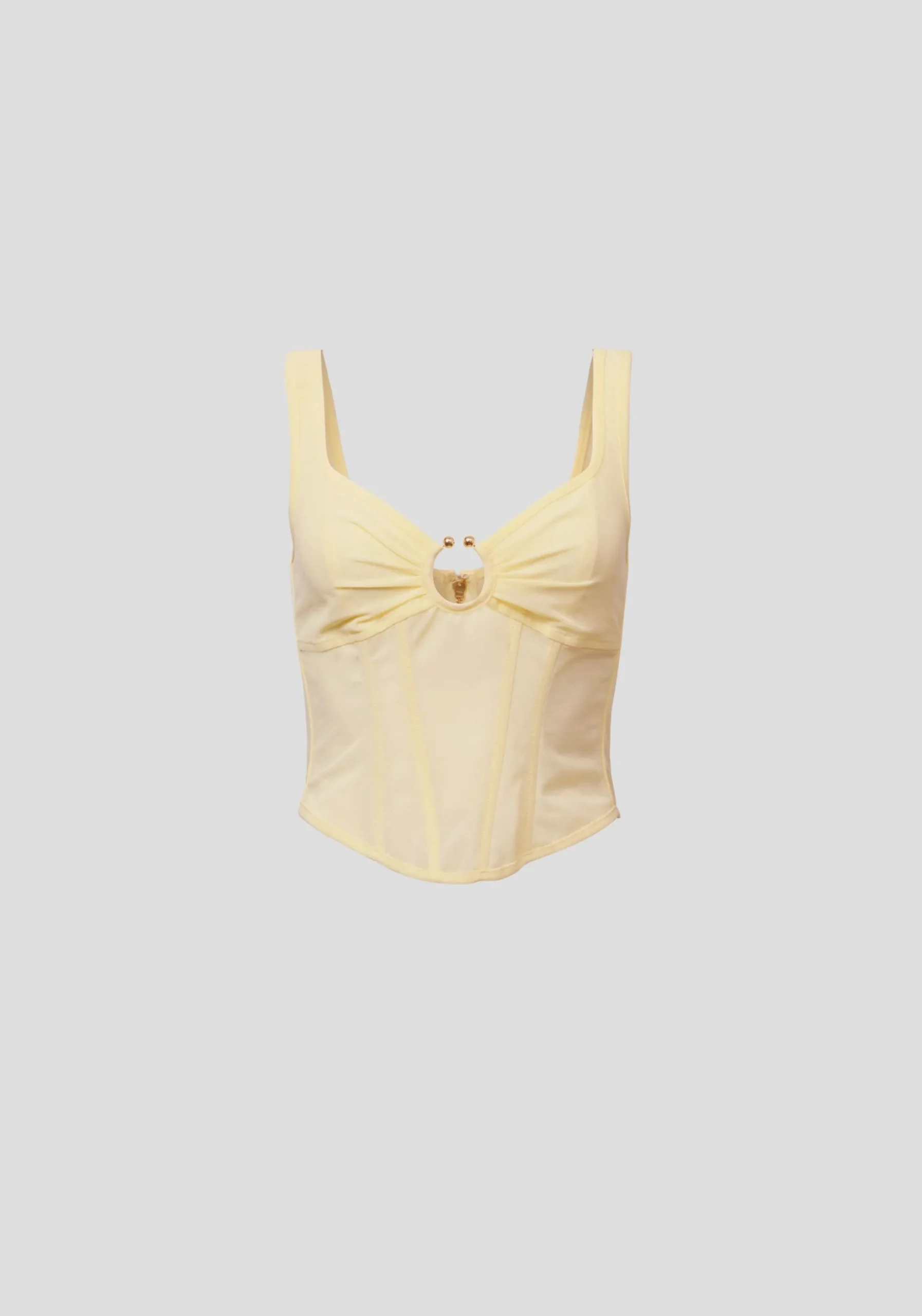 The Spellbound Bustier, a V&W classic reimagined in a sunlit hue with a feminine neckline featuring a cutout u-wire and gold accents. Crafted from powermesh with a double-layered bust and flattering boning, it embodies modern elegance. Pair with the Knightly Trouser for a striking ensemble, or dress down with denim.MADE IN AUSTRALIA