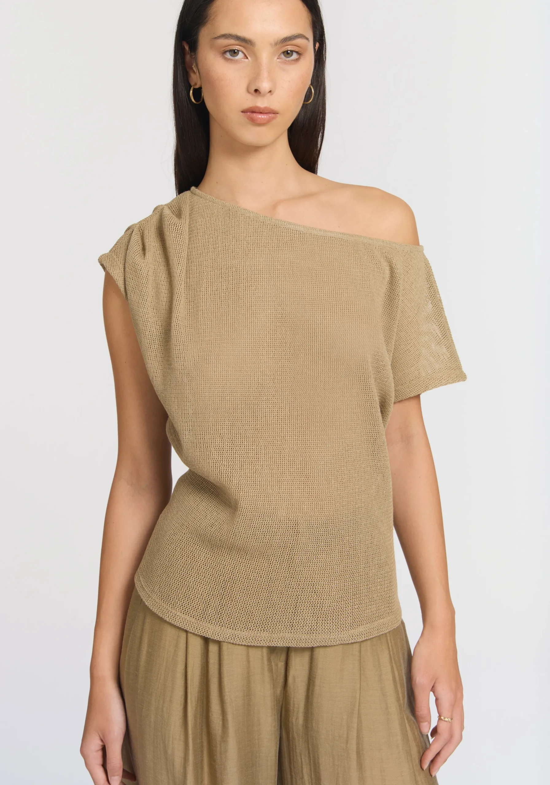 The Wildcard Tee, crafted in a soft sage, embodies effortless, modern ease. Its relaxed silhouette features a clean boat neckline and removable ties, allowing it to be worn loose and architectural or gently cinched. Pair with the matching Mayhem Skirt for an ethereal statement, or style back with this season’s sage offerings for a look perfect from beach to bar and moments in between.MADE IN AUSTRALIA