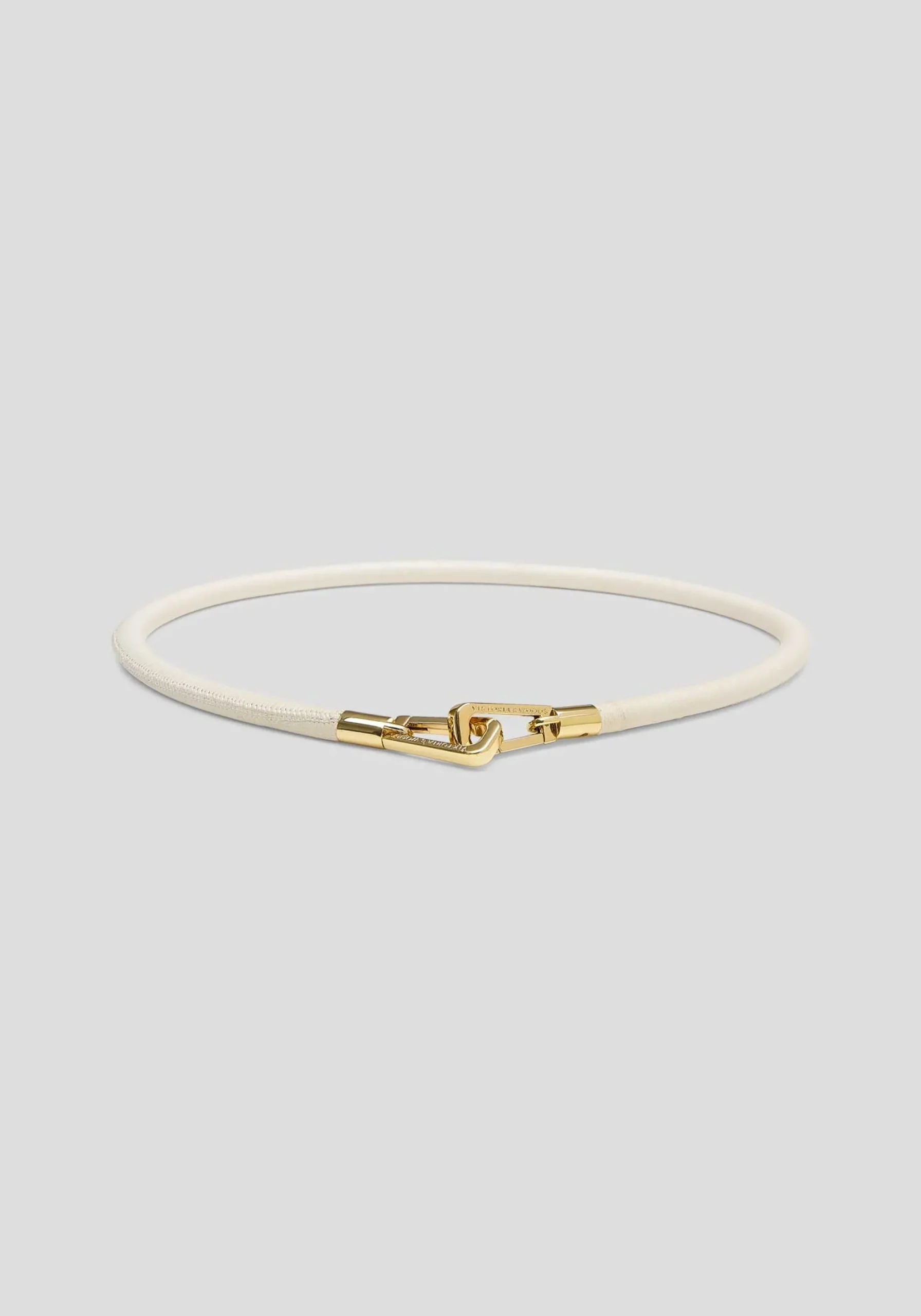 Add versatility to your accessories with the Laurent Belt, crafted from soft ivory nappa leather. Featuring a tubular design with exposed stitching, this stretchy waist belt is finished with functional branded gold clips. A sleek statement piece, perfect for cinching a blazer or elevating your everyday denim.