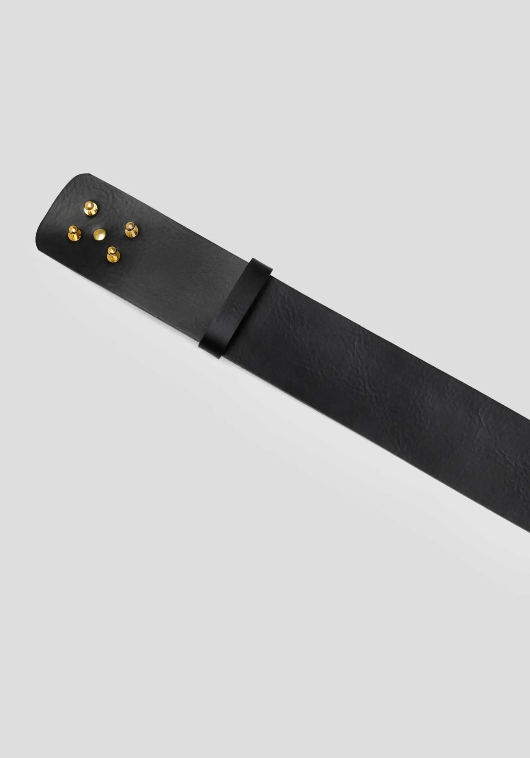 Complete your look with the Stella Belt, a thick waist belt crafted from black leather with a 55mm depth. Featuring a stud opening detail, it is perfect for styling over blazers and relaxed shirting to cinch in the waist for elevated effortlessness.MADE IN AUSTRALIA