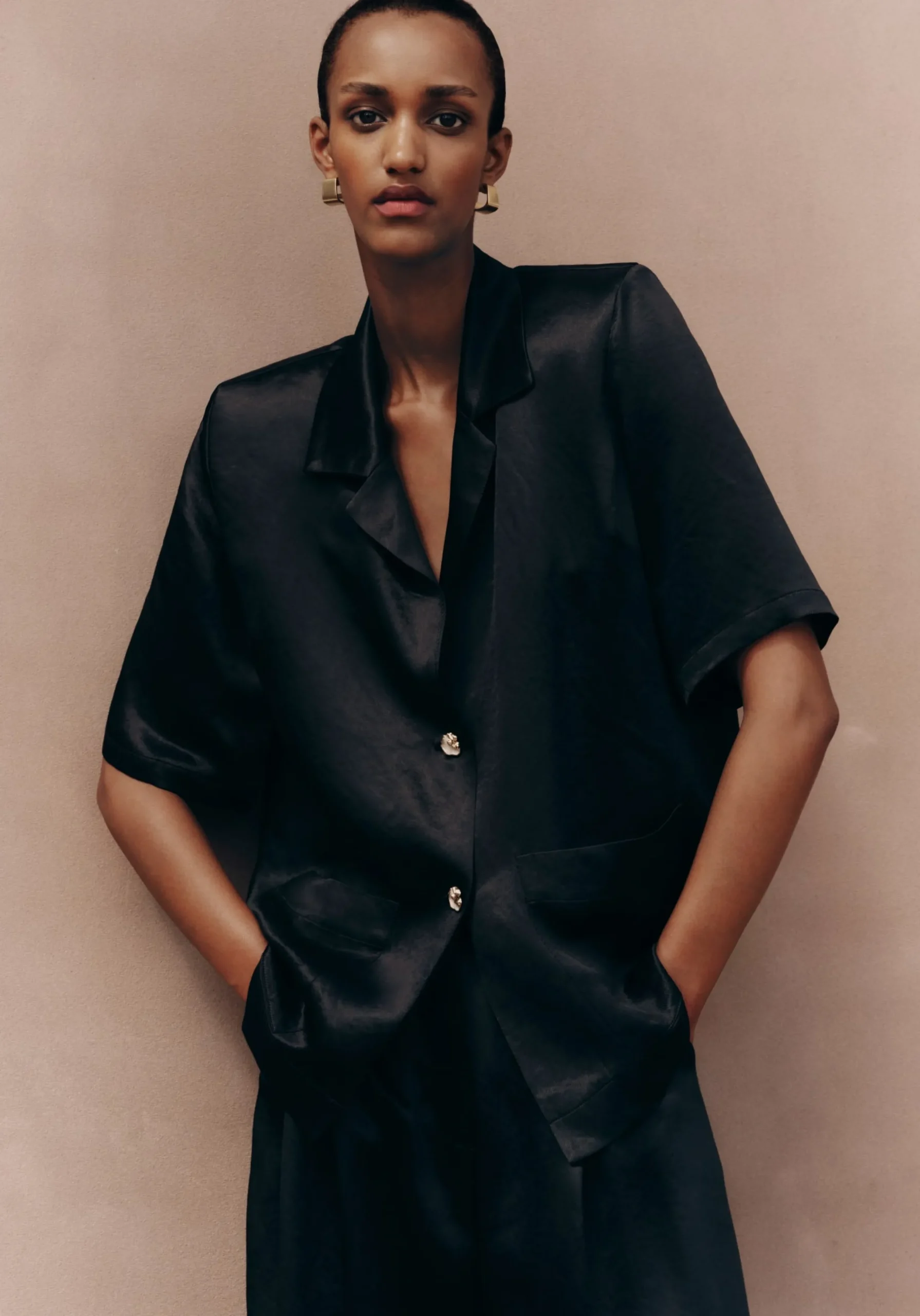 The Hampshire Shirt reimagines our iconic Chorus Shirt, tailored in classic black naia acetate with a vintage-inspired patina and subtle crinkle effect. Offering a relaxed silhouette and soft shoulder pads. It’s finished with unique gold buttons. Complete the look with the Malone Pant for an effortlessly elevated set dressing moment.MADE IN AUSTRALIA