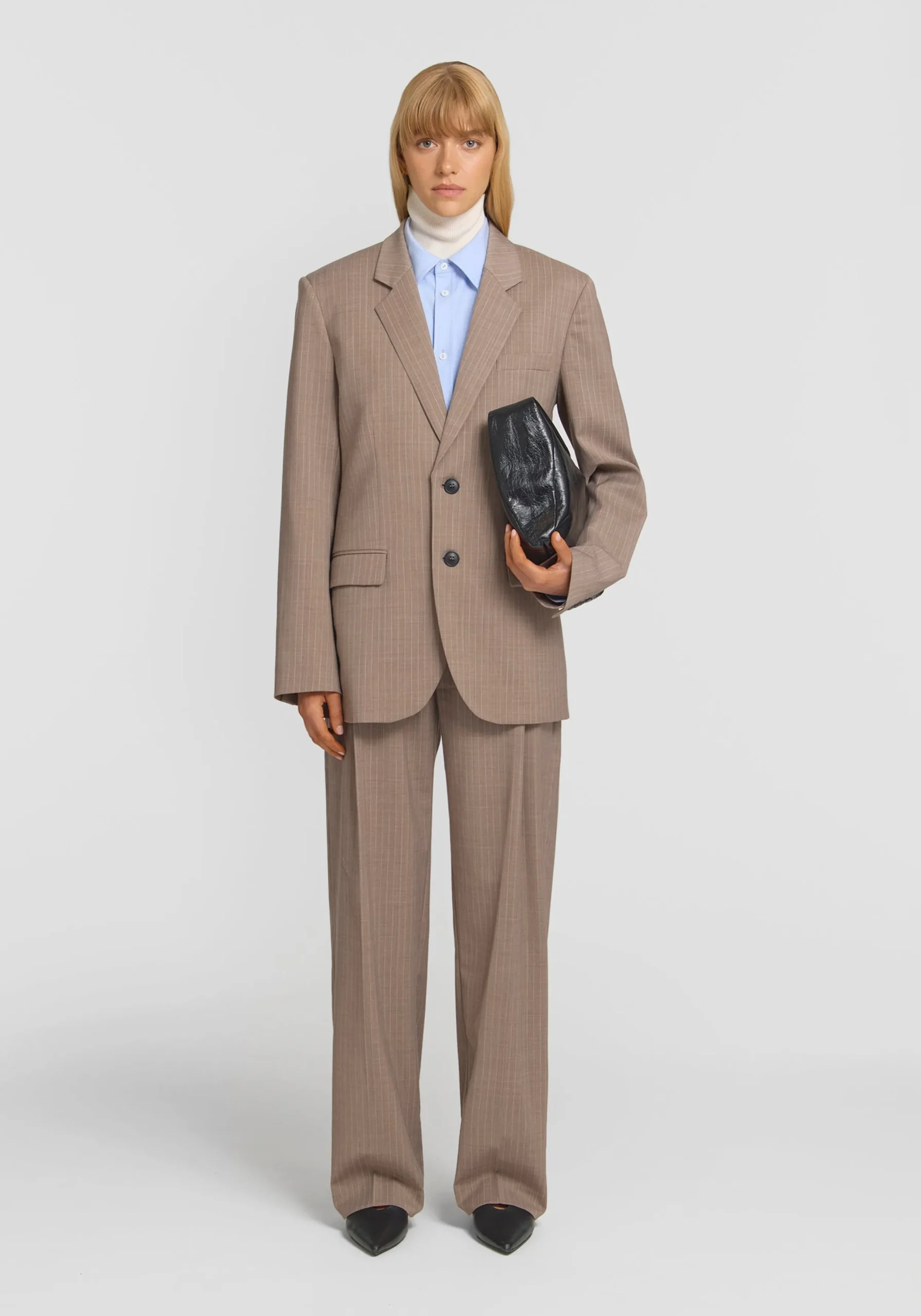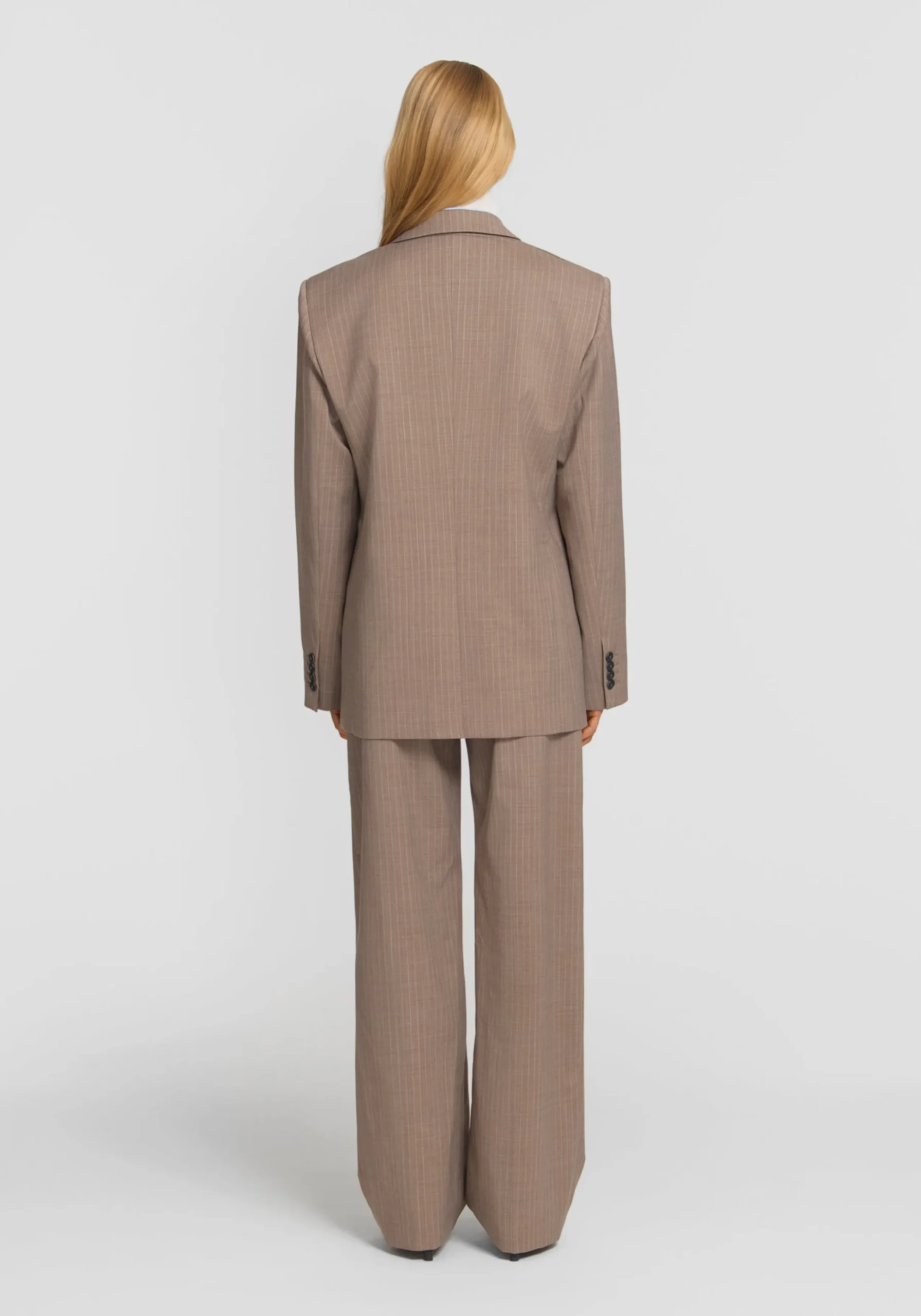 Add dimension to your outfitting with the Marmaduke Unisex Blazer, crafted from a wool blend in a timeless brown pinstripe. Featuring a single breasted, relaxed silhouette, it’s detailed with pocket accents, a centre back vent, and V&W logo buttons. Fusing masculine and feminine elements, it pairs back with the Archibold Unisex Trouser for an effortlessly considered suiting moment.MADE IN AUSTRALIA