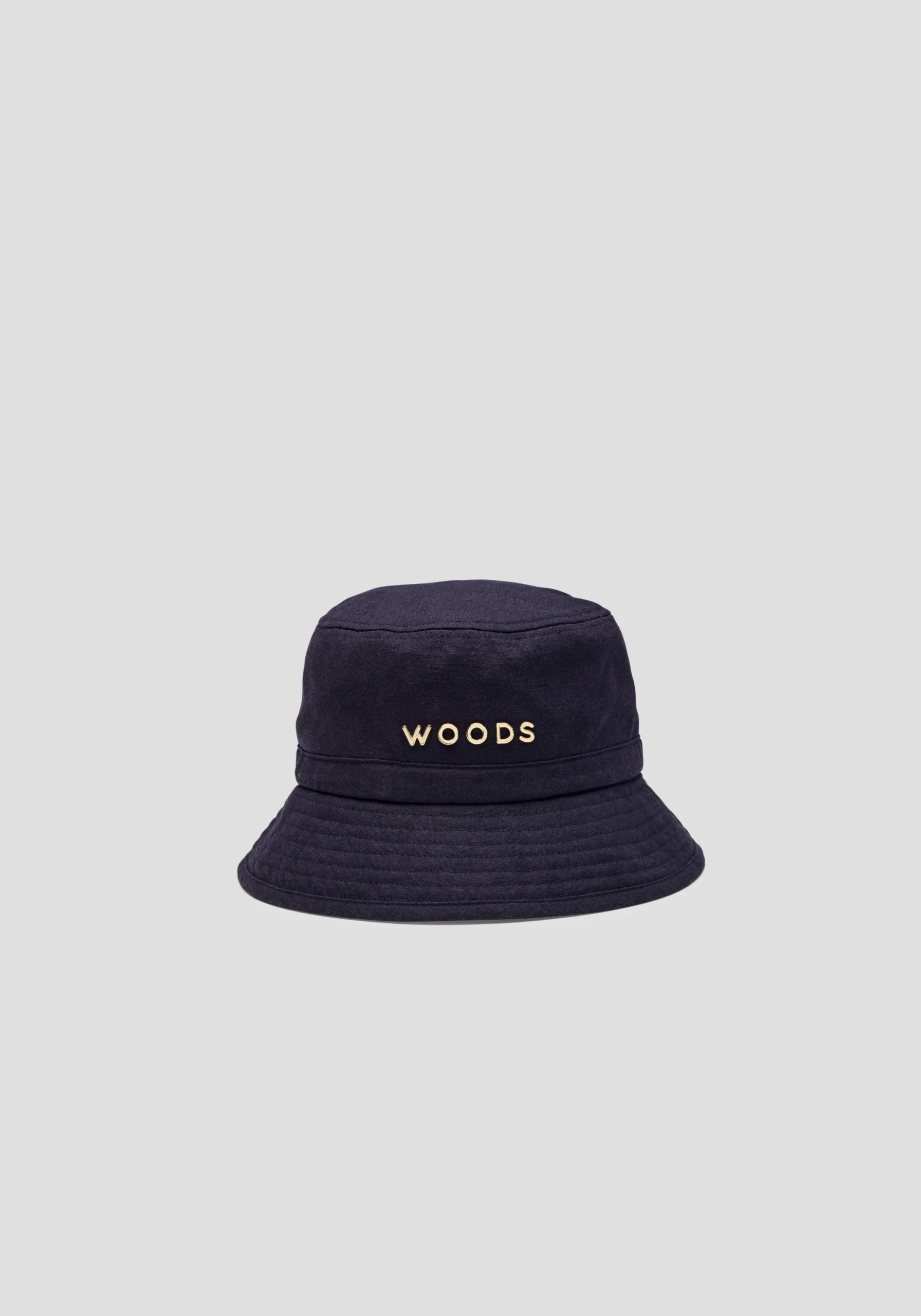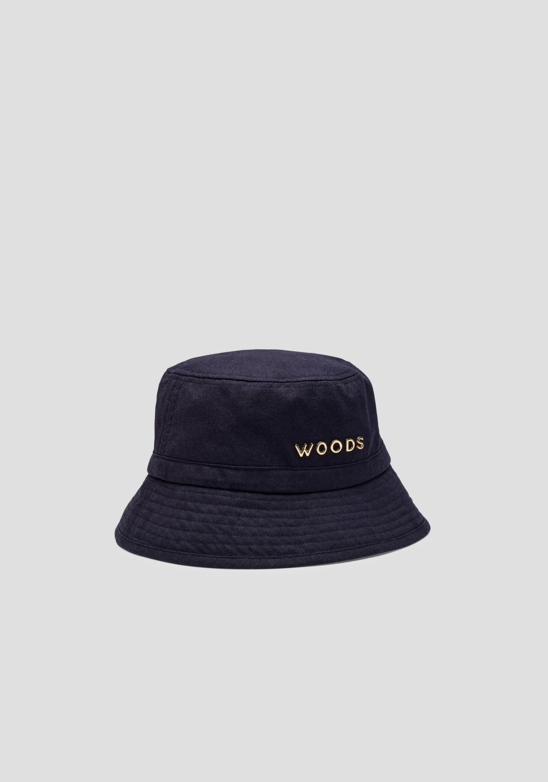 The Woods Metal Bucket Hat, crafted in black cotton, is an elevated essential for sun-soaked days. Designed for the art of escape, it showcases an embossed gold WOODS logo, an adjustable back drawcord, and multi-topstitch detailing around the brim.