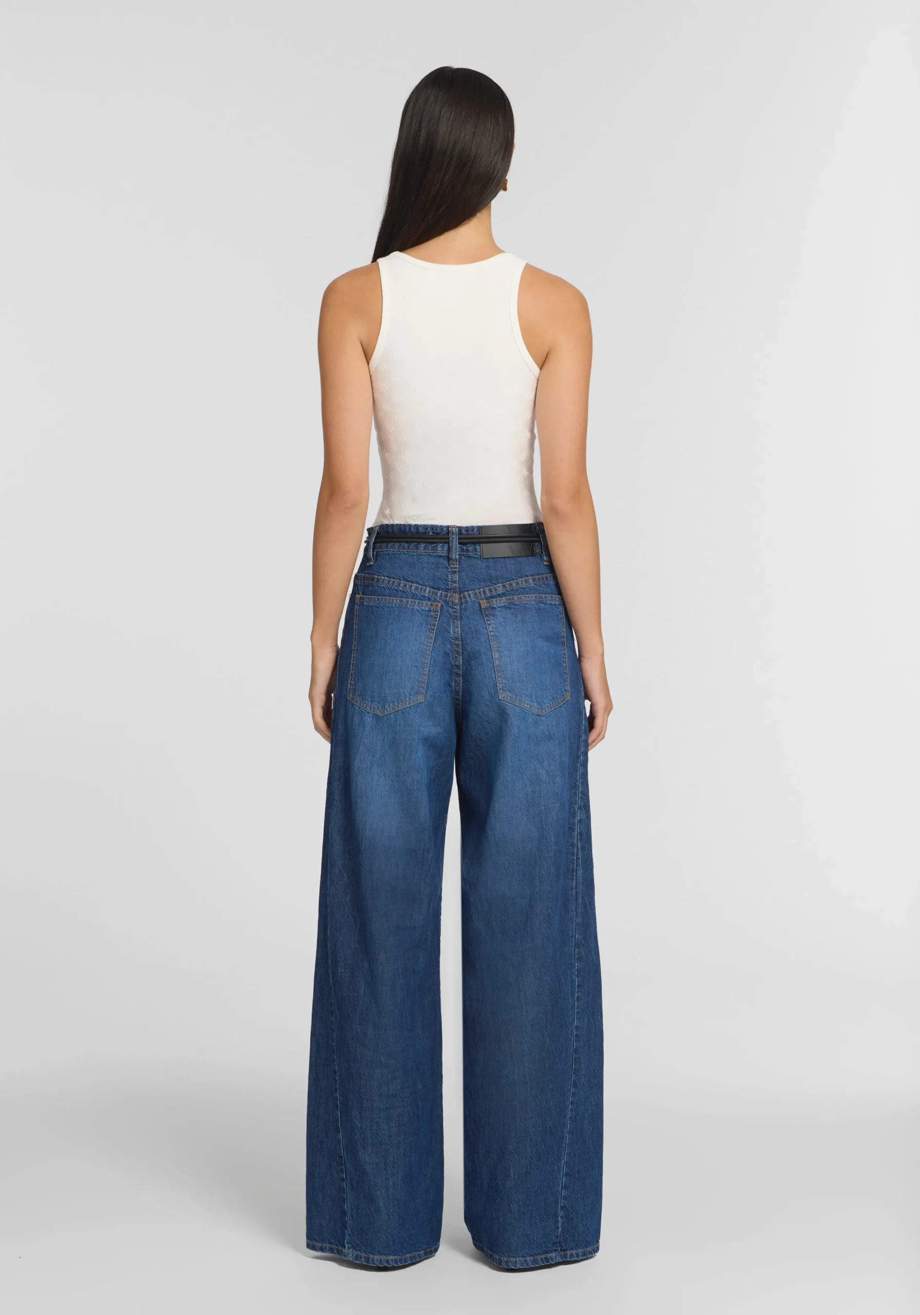 The Dolly Jean returns in a classic blue wash, cut in lightweight denim for effortless summer wear. Designed with a high-rise, wide-leg profile, it’s defined by side panel detailing and signature touches including a black logo leather patch and logo hardware. Capturing relaxed refinement, this pair is your ultimate go-to denim for the season.MADE IN AUSTRALIA