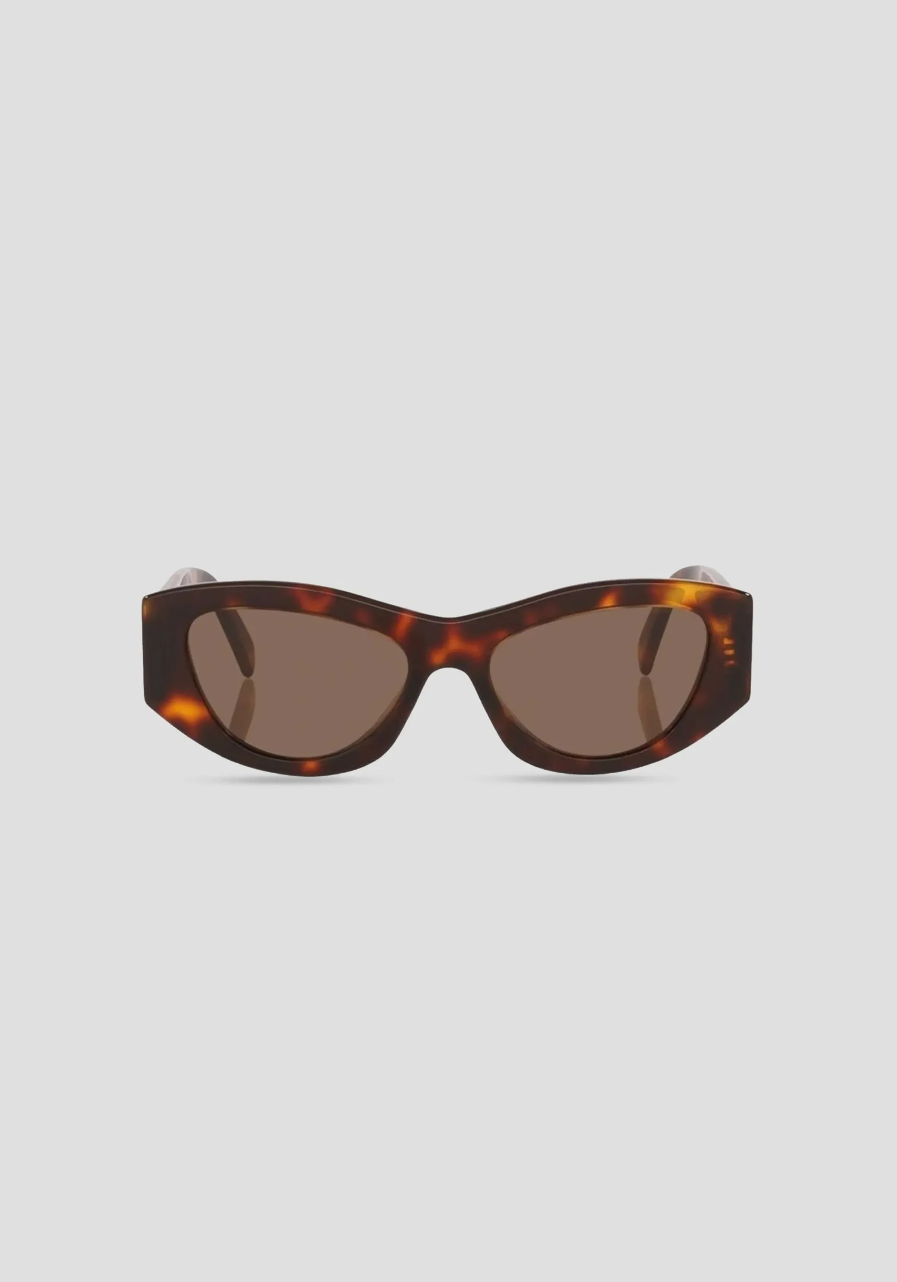 The Celine Triomphe CL40308U features striking irregular frames in premium tortoise acetate. The timeless hue is complemented by brown gradient lenses, offering advanced UVA/UVB protection and a polished, contemporary look.