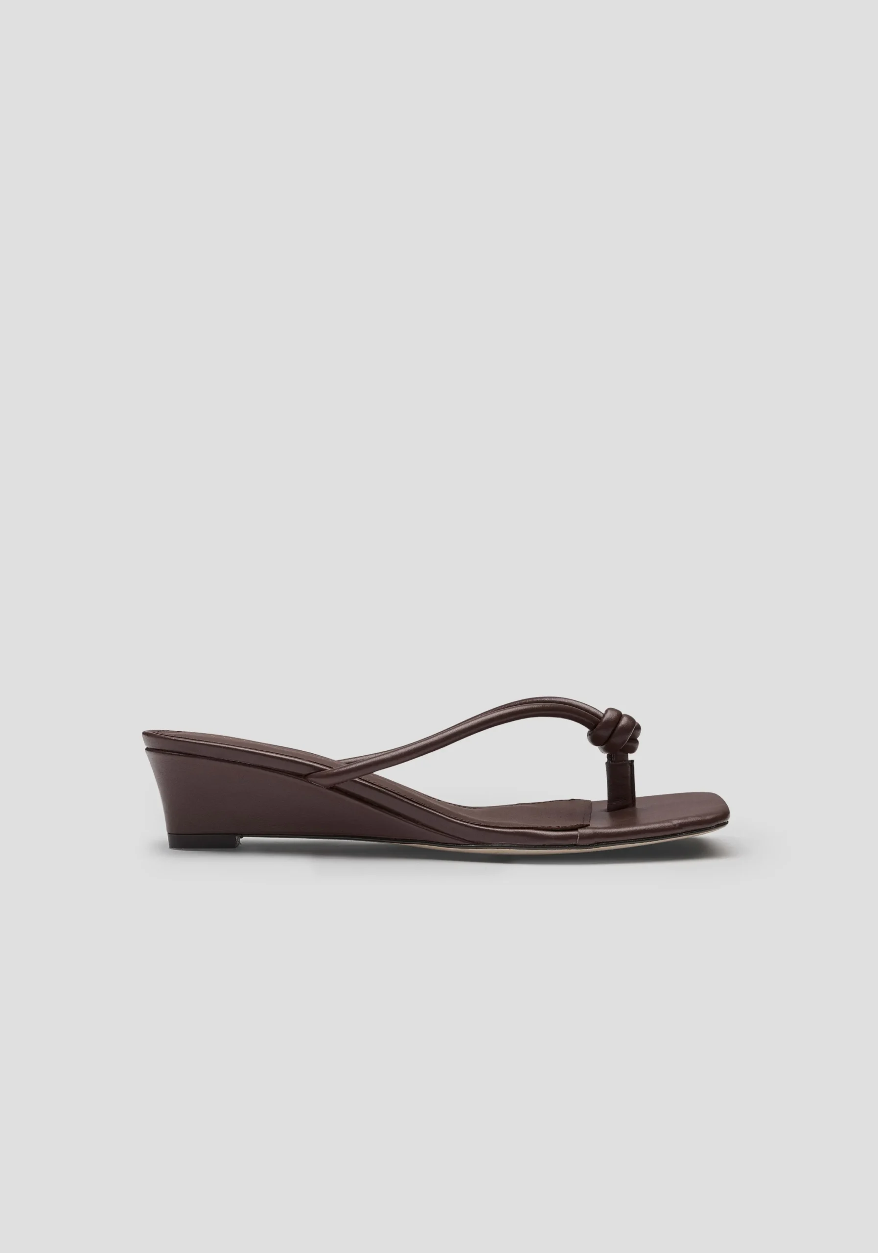 The Athens Wedge, a must-have this season, is crafted in luxurious chestnut brown Nappa leather. Featuring a 4cm wedge heel and knotted toe detail, this staple shoe is an elevated finishing touch for every occasion.