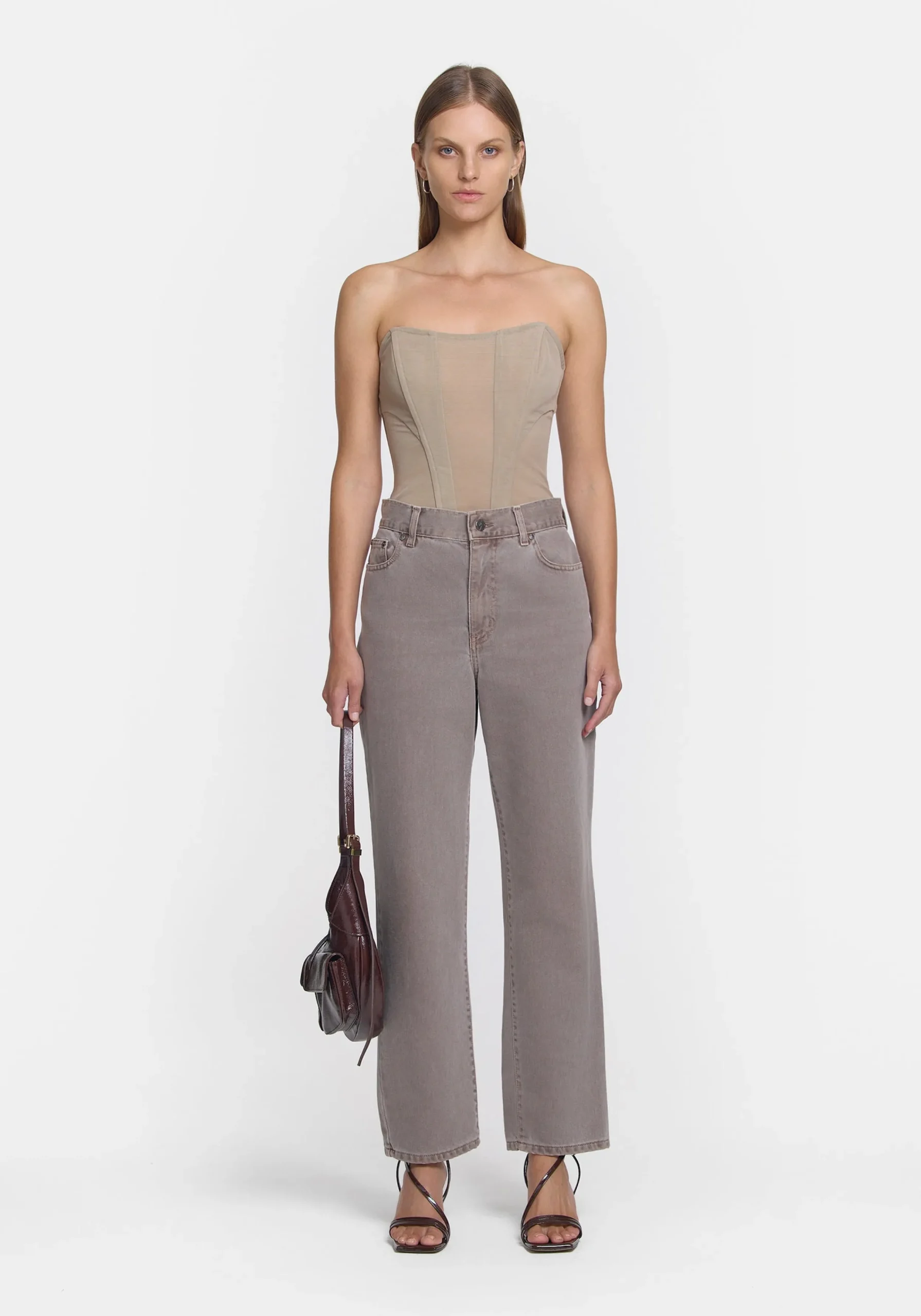 Introducing the Nirvana Jean, featuring a unique stone-wash hue in soft grey with a mid-rise and tapered leg profile. Complete with a sleek black V&W leather patch, it pairs perfectly with the Spartacus Shirt in the matching hue for a chic take on double denim.MADE IN AUSTRALIA