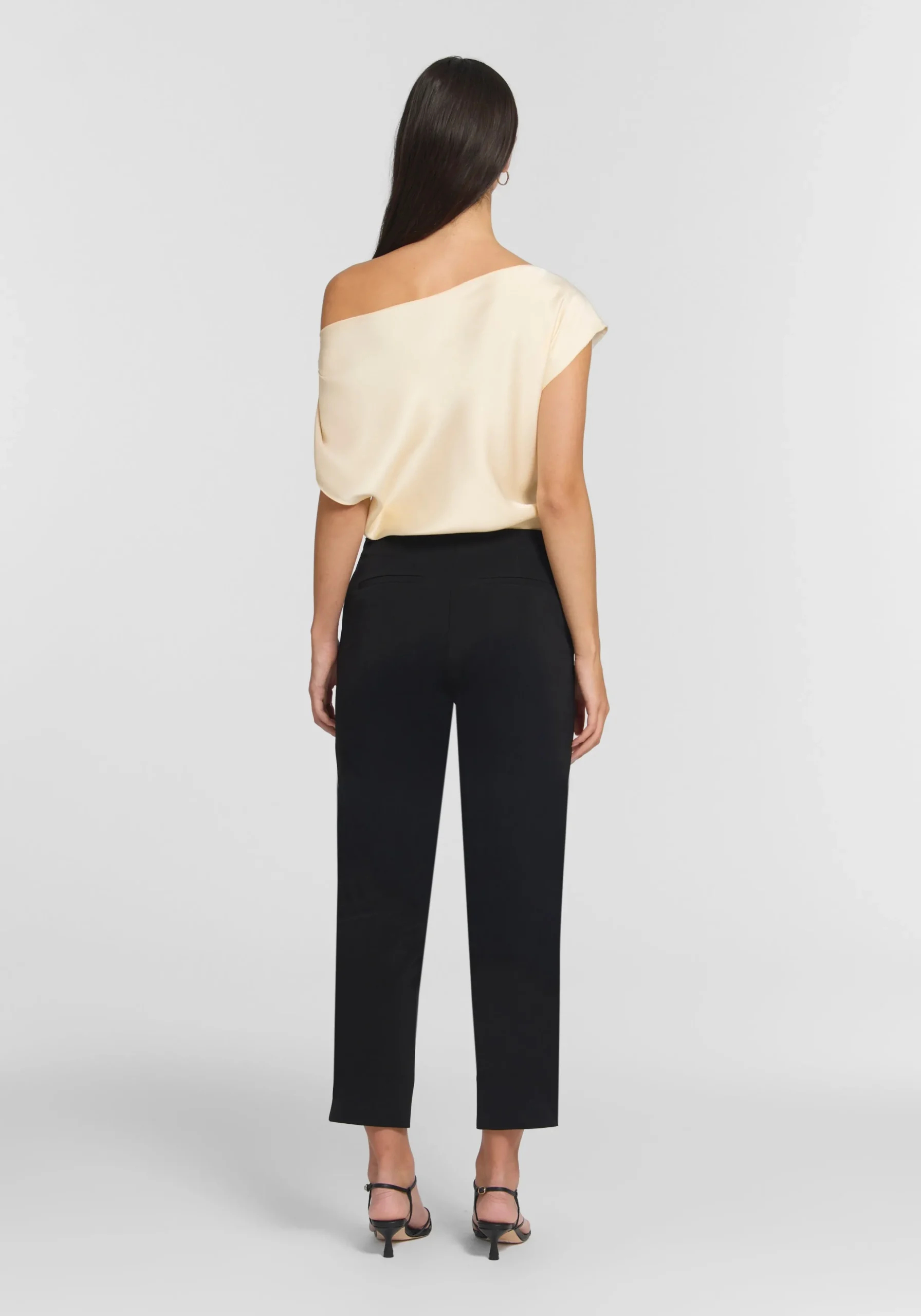 For the chic minimalist, the Lucida Capri is crafted in classic black for effortless everyday styling. Showcasing a high-rise silhouette and slim leg profile, it provides a flattering, foundational form. Complete with pockets and a front stitch down the leg, it balances modern sophistication with timeless ease.MADE IN AUSTRALIA