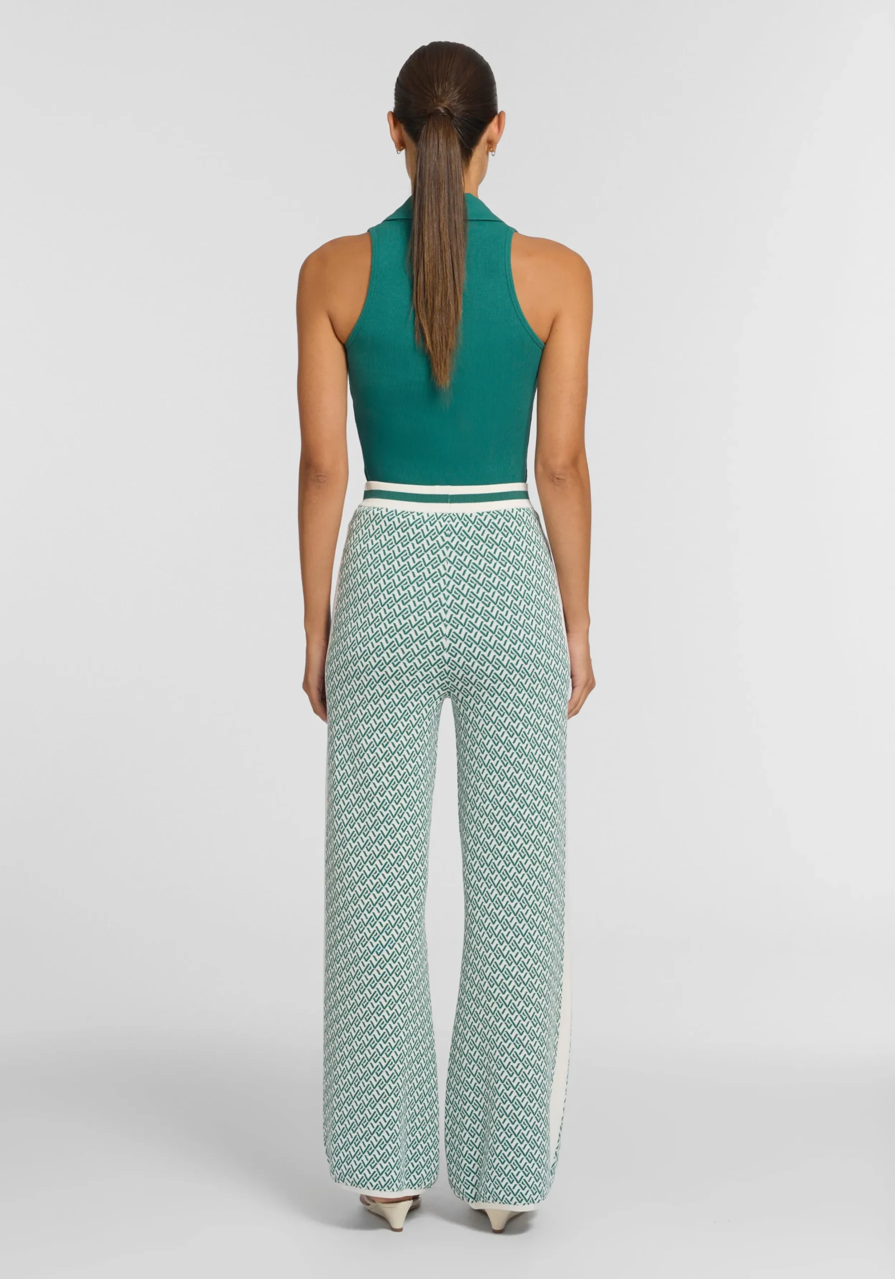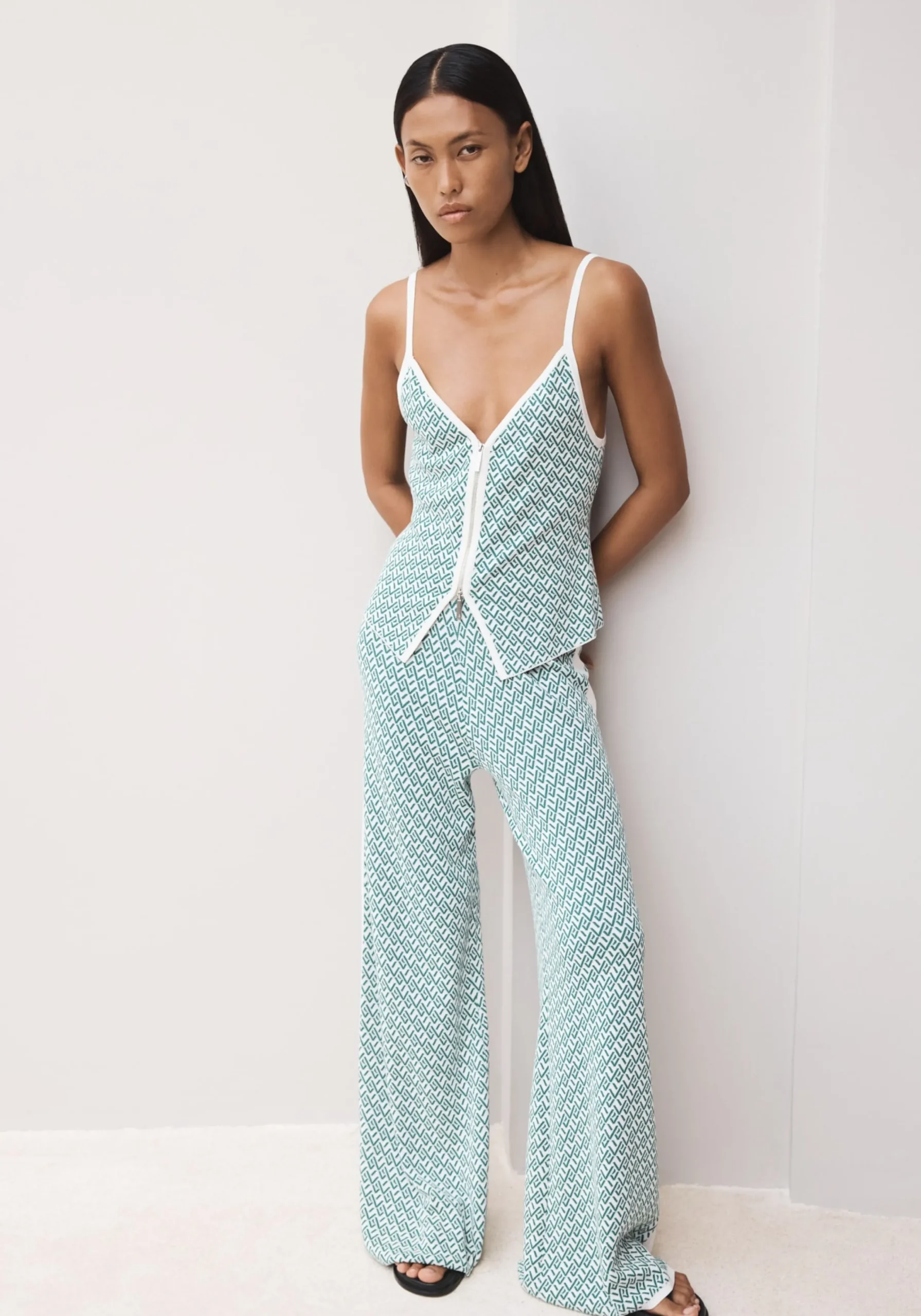 The Blackwell Pant reimagines V&W insignia in a new jacquard pattern, knitted in a lightweight cotton blend. Its wide-leg silhouette with an elasticated ribbed waistband and chic side panels delivers luxurious, restorative style. Pair with the Lifetime Top for a relaxed set, effortlessly carrying you from courtside to beachside escapes.