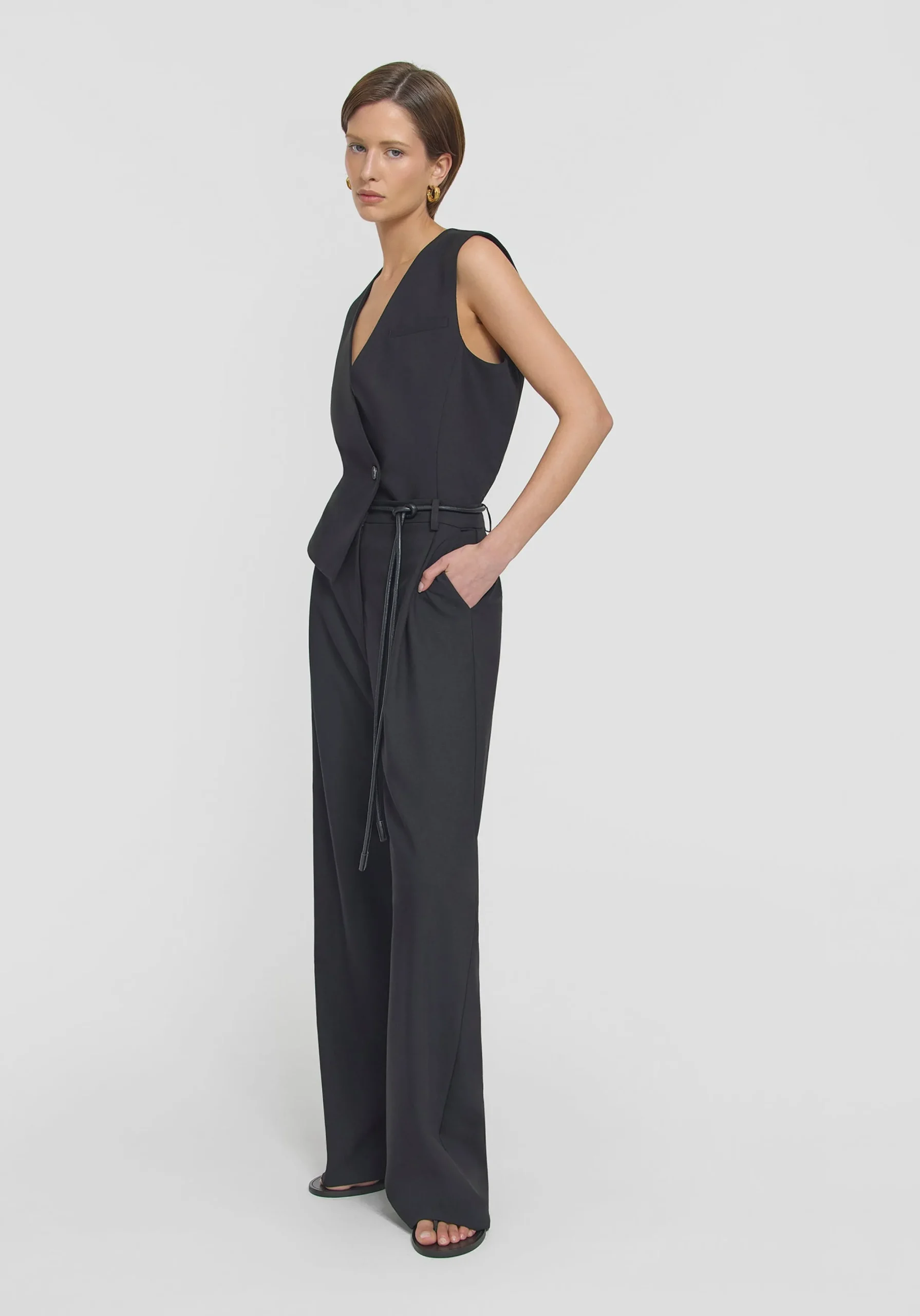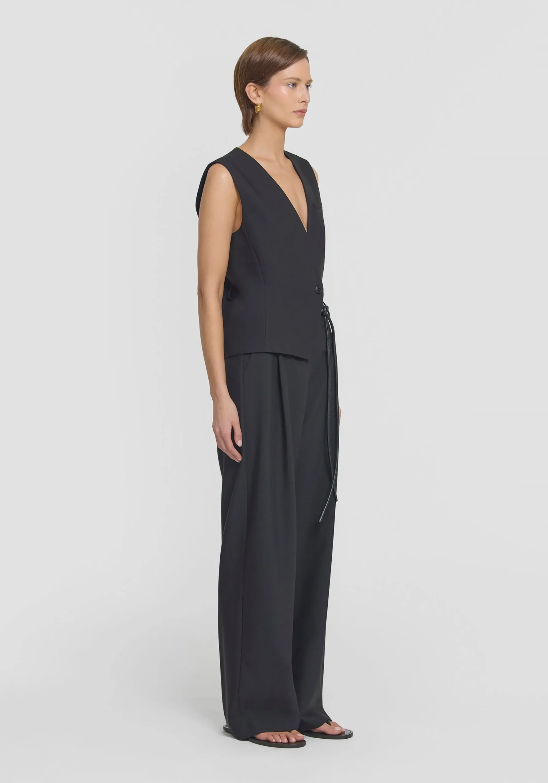 An elevated classic, the Idol Pant is crafted in a soft rayon blend fabrication in a classic black. Falling to a full length and wide leg silhouette, this style features front tucks and functional angled side pockets, pairing perfectly with tailored blazers and shirting for effortless styling. MADE IN AUSTRALIA