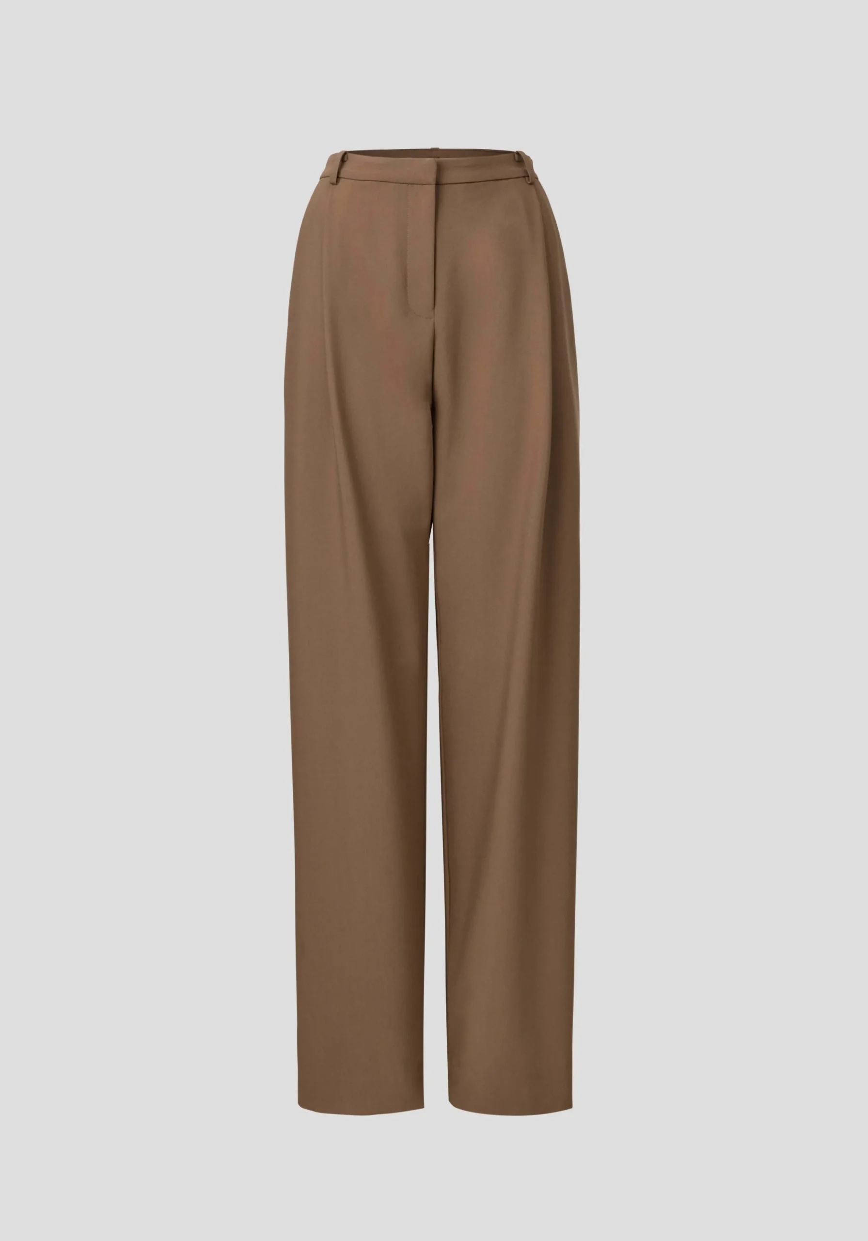 An elevated classic, the Idol Pant is crafted in a soft rayon blend fabrication in a subtle brown hue. Falling to a full length and wide leg silhouette, this style features front tucks and functional angled side pockets, pairing perfectly with tailored blazers and shirting for effortless styling.MADE IN AUSTRALIA