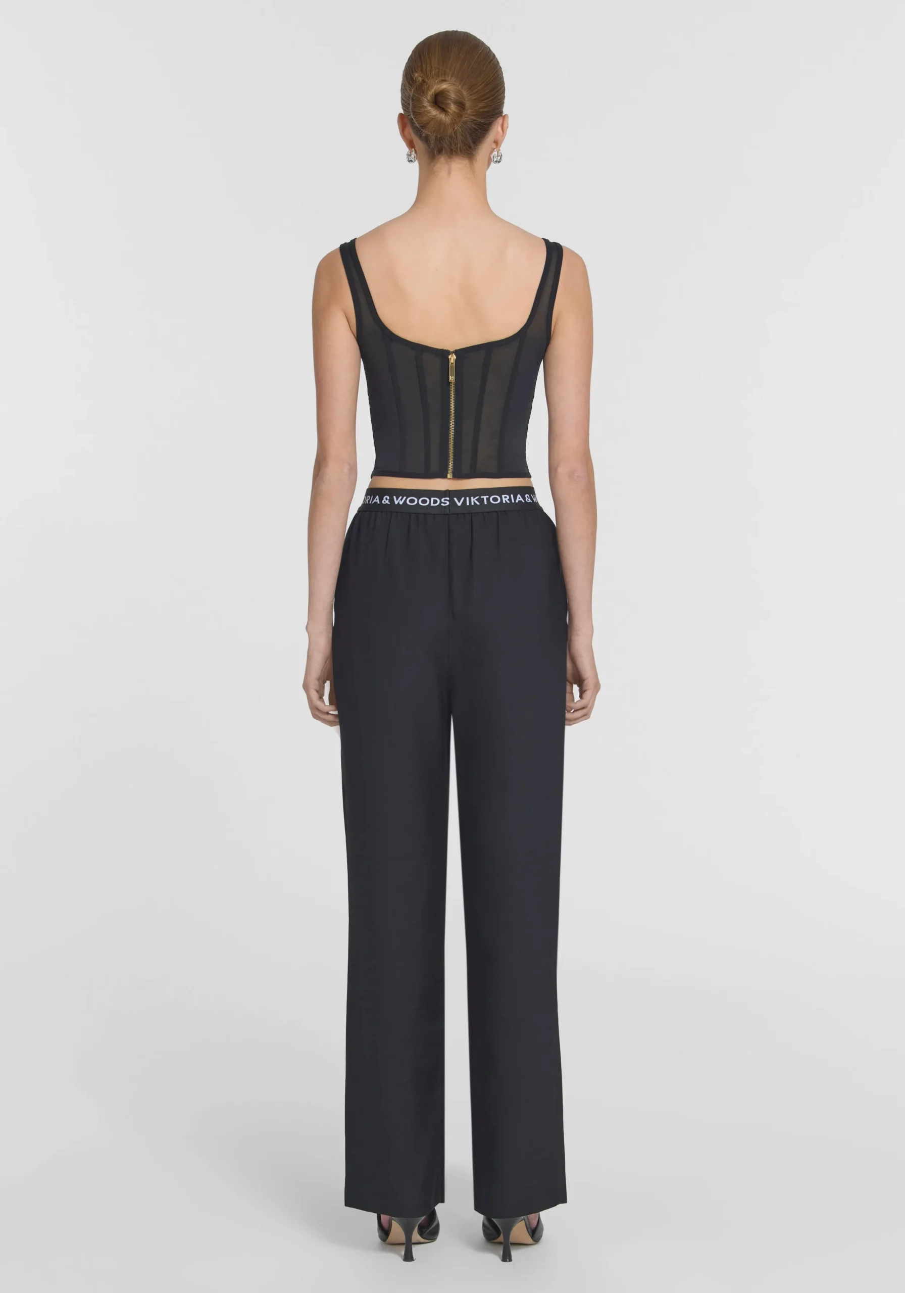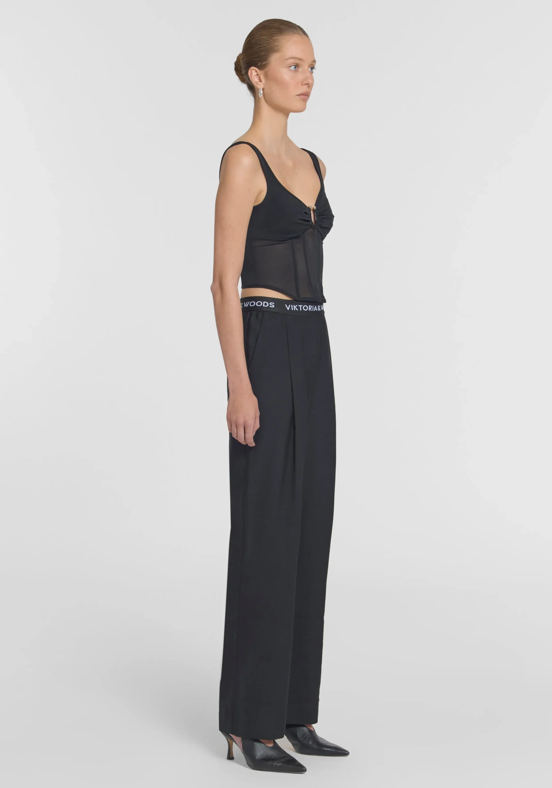 The Ivanhoe Pant, inspired by our cult-classic Greythorn Pant, is crafted from a luxurious black bamboo blend. Featuring a straight-leg cut and a tonal elastic logo waistband for a sporty touch, these pants offer elevated comfort. Complete the look with the Hepburn Shirt in black or style back with V&W basics for casual sophistication.MADE IN AUSTRALIA