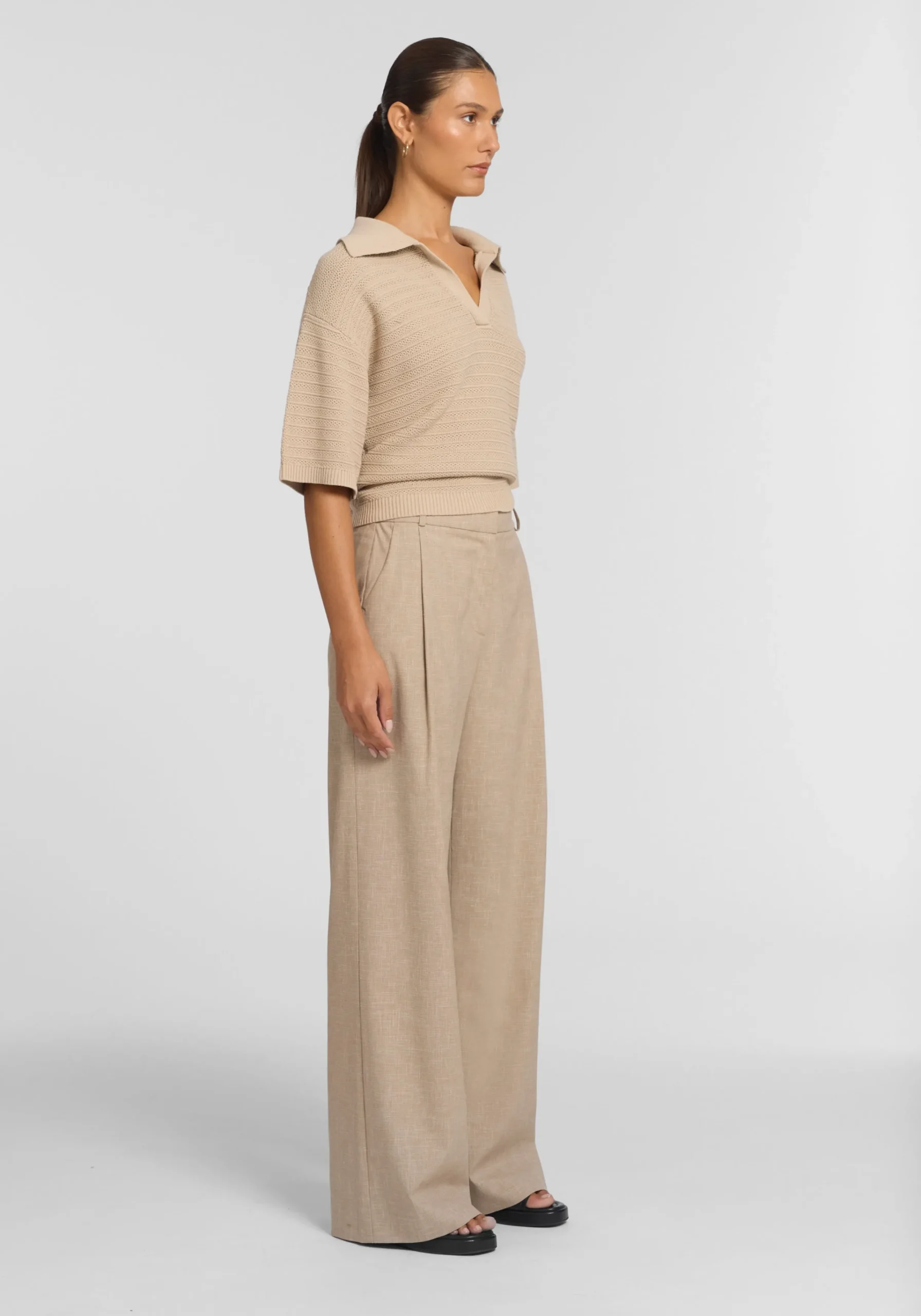 Add effortless ease to your everyday with the timeless Whittaker Trouser, crafted in textured linen in a latte brown hue. Featuring a mid-rise, straight-leg silhouette with a tailored waistband, front tucks, pockets, and belt loops, it’s an essential for the modern minimalist. Pair with the Optimistic Vest for a seasonless uniform seamlessly taking you from the office to off-duty.