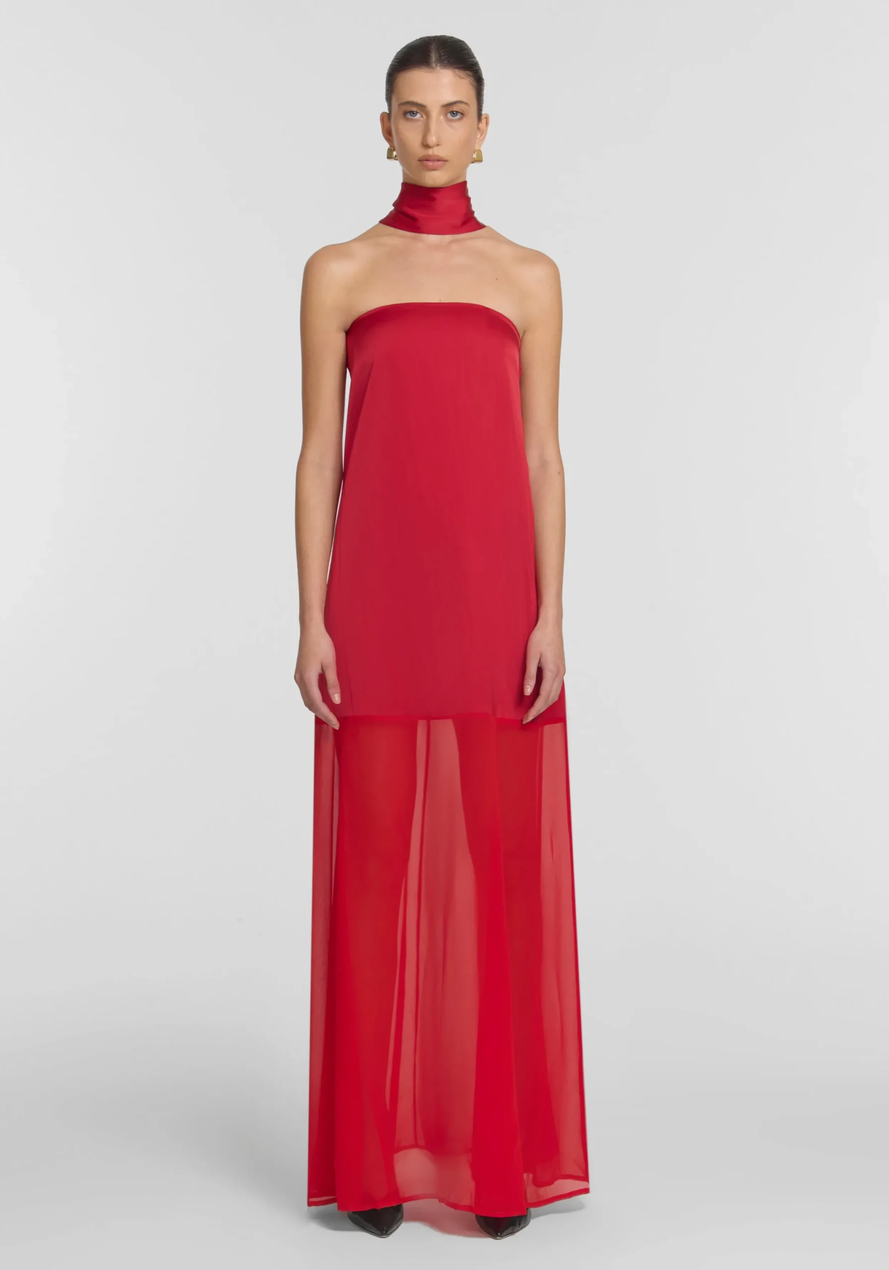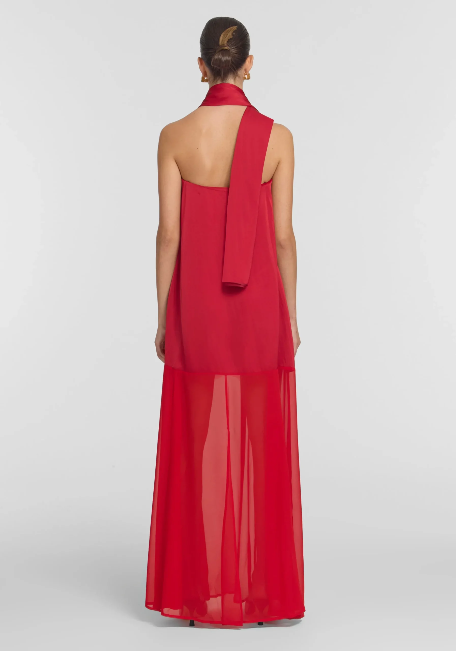 A modern must-have, the Cleo Headscarf is crafted from our signature cupro blend in a fiery red hue. This versatile accessory can be styled as a headscarf, top, neck piece, hair accessory, or handbag tie, infusing spirited individuality into any outfit. Pair it with the Loveday Dress for a complete look.