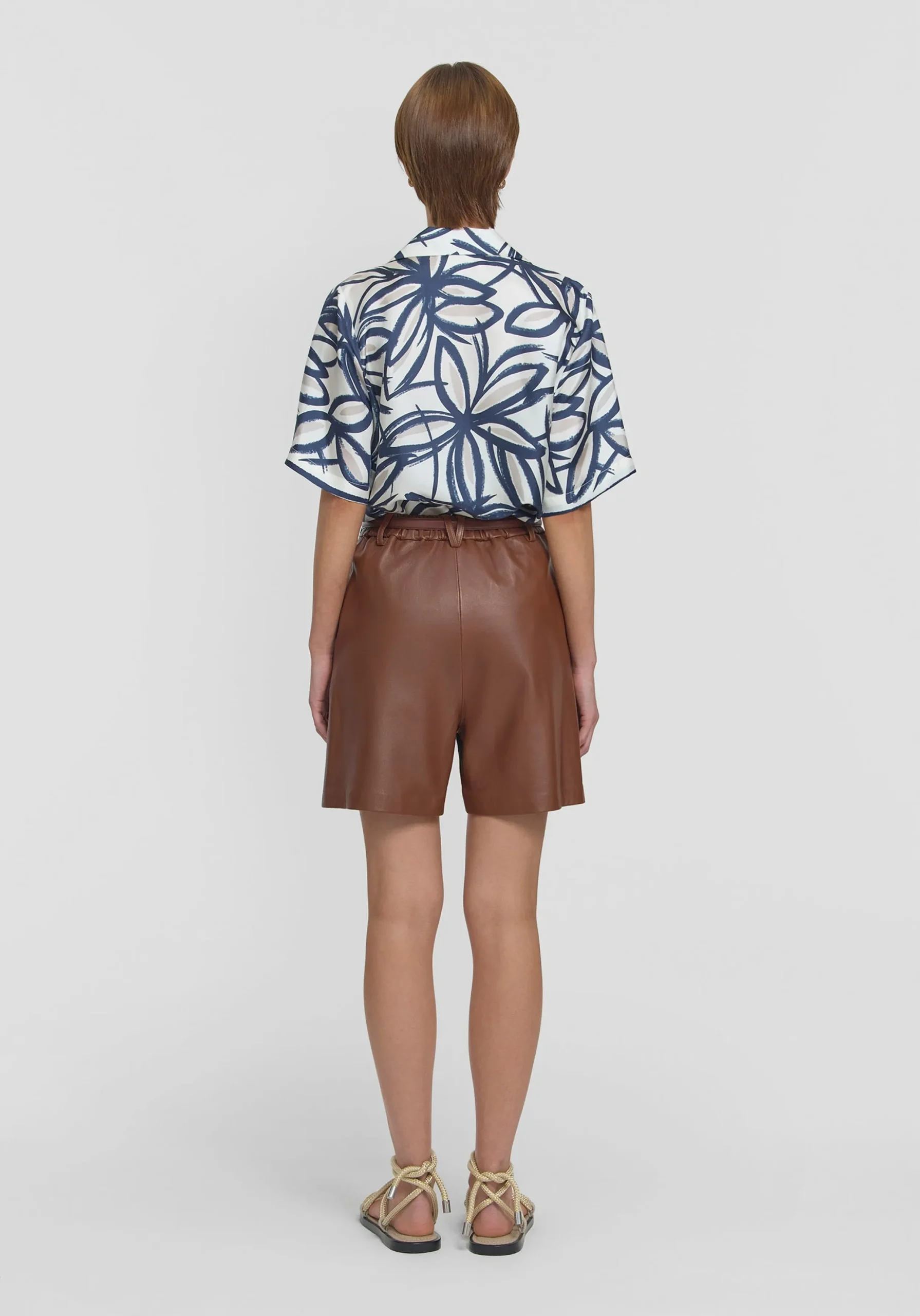 Indulge in a luxurious summer essential with the Vulture Leather Short, crafted from genuine Leather Working Group certified brown leather. Boasting a sleek straight leg profile, tailored waistband, refined front tuck detailing, and functional front pockets, this piece exudes effortless sophistication. Pair it with the Lyra Crop in the matching hue for a sophisticated sports-luxe vibe.