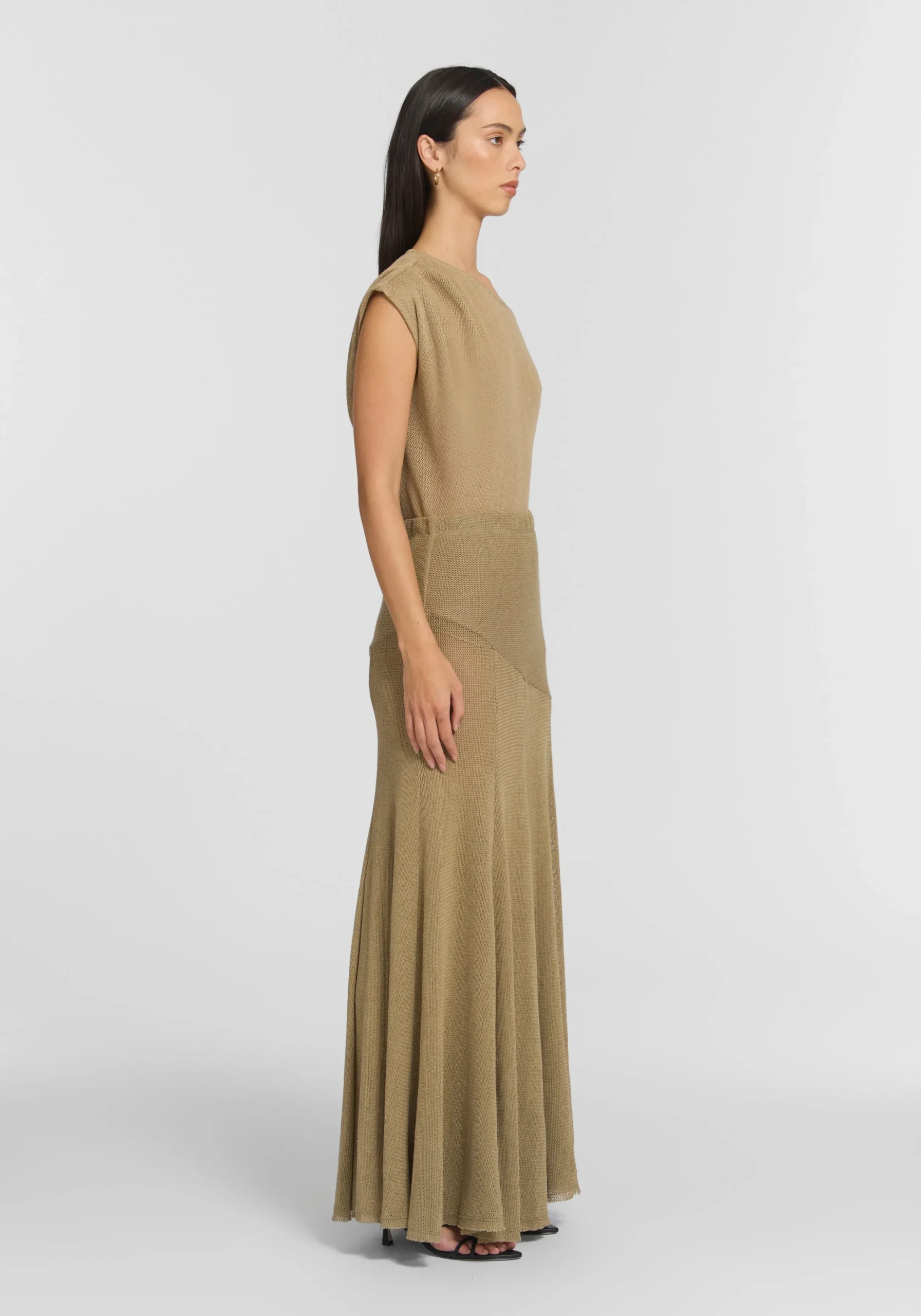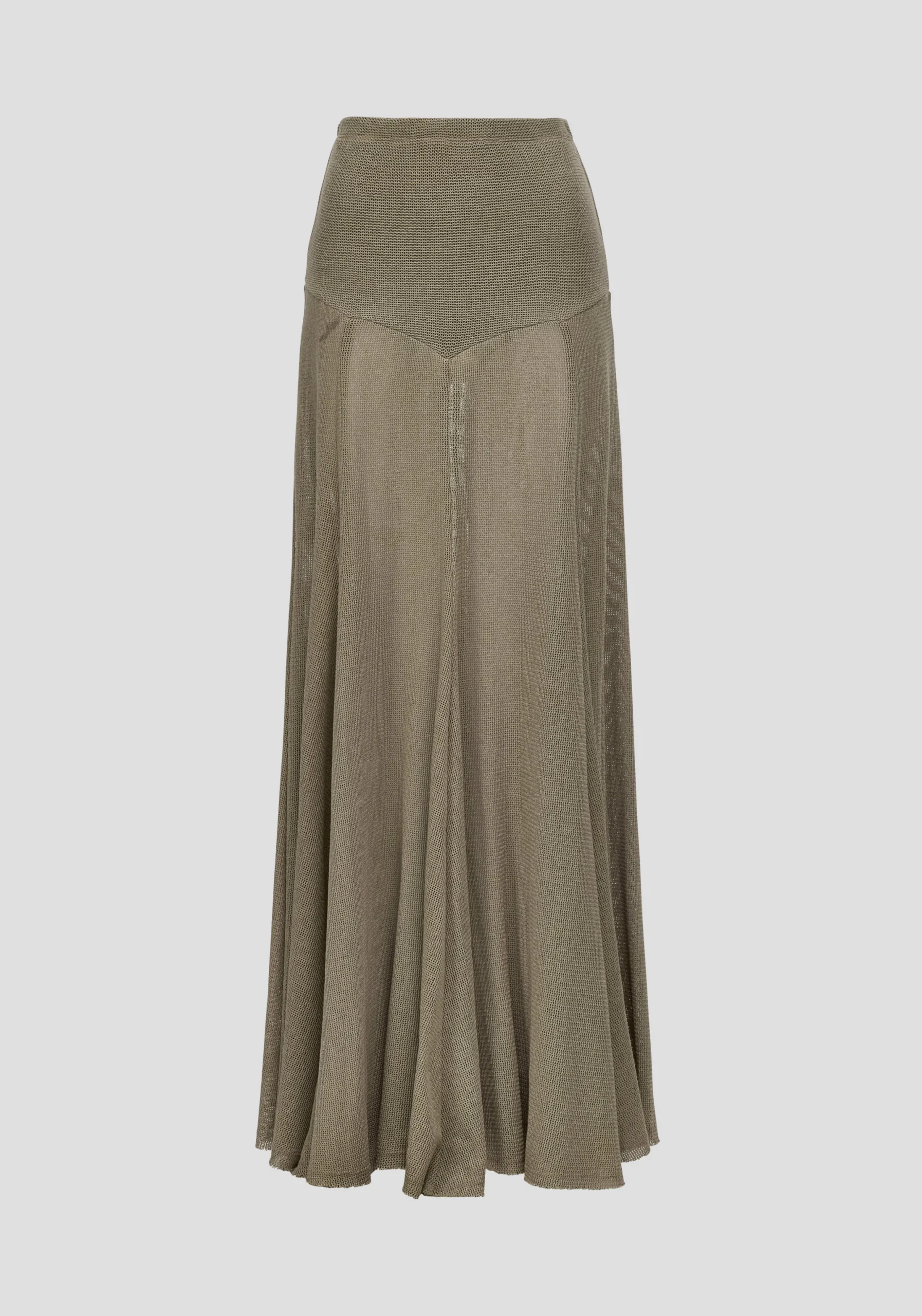 The Mayhem Skirt, a subtle statement realised in a sheer, tactile knit in soft sage, brings a fresh calm to modern dressing. Featuring an elasticated waistband, front yoke detail, and a soft bell-shaped silhouette with a raw-edge hem, it captivates with textured movement. Pair with the matching Wildcard Tee for an ethereal look that exudes artful confidence.MADE IN AUSTRALIA