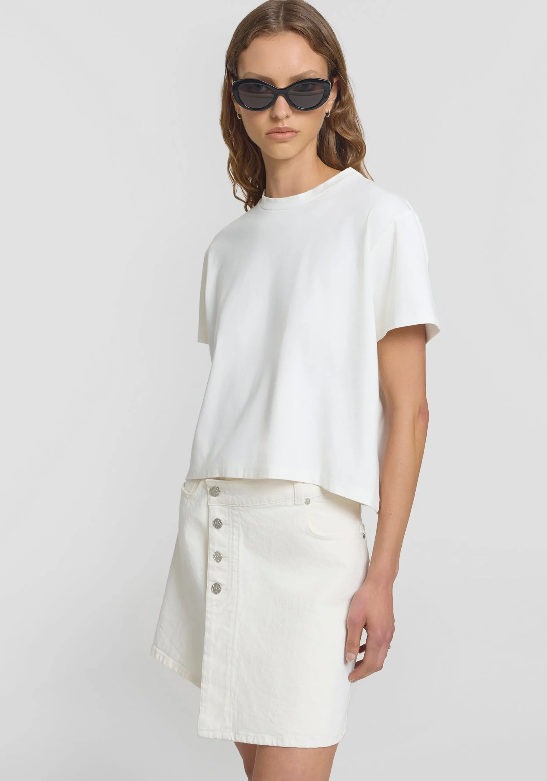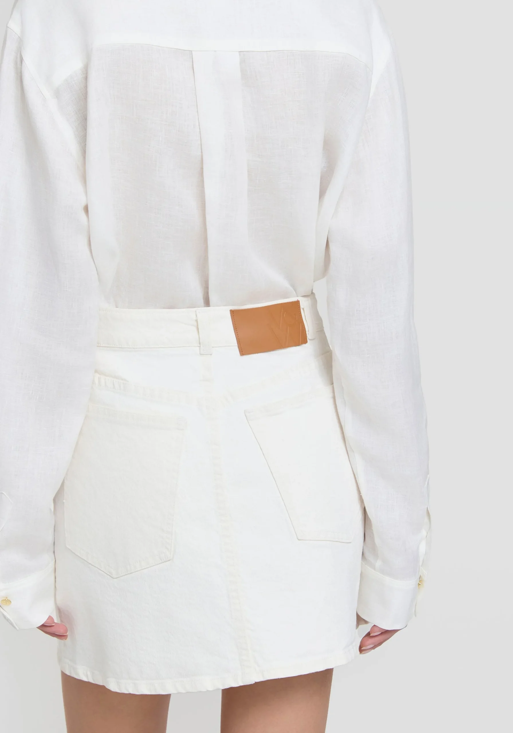 A modern update to the classic denim skirt, the Mustang Skirt is crafted from ivory stretch denim and boasts a high-waisted, mini-length A-line profile. Featuring a front wrap detail and adorned with a tan leather patch and logo buttons, this skirt effortlessly fuses style and comfort for chic, on-the-go dressing.MADE IN AUSTRALIA