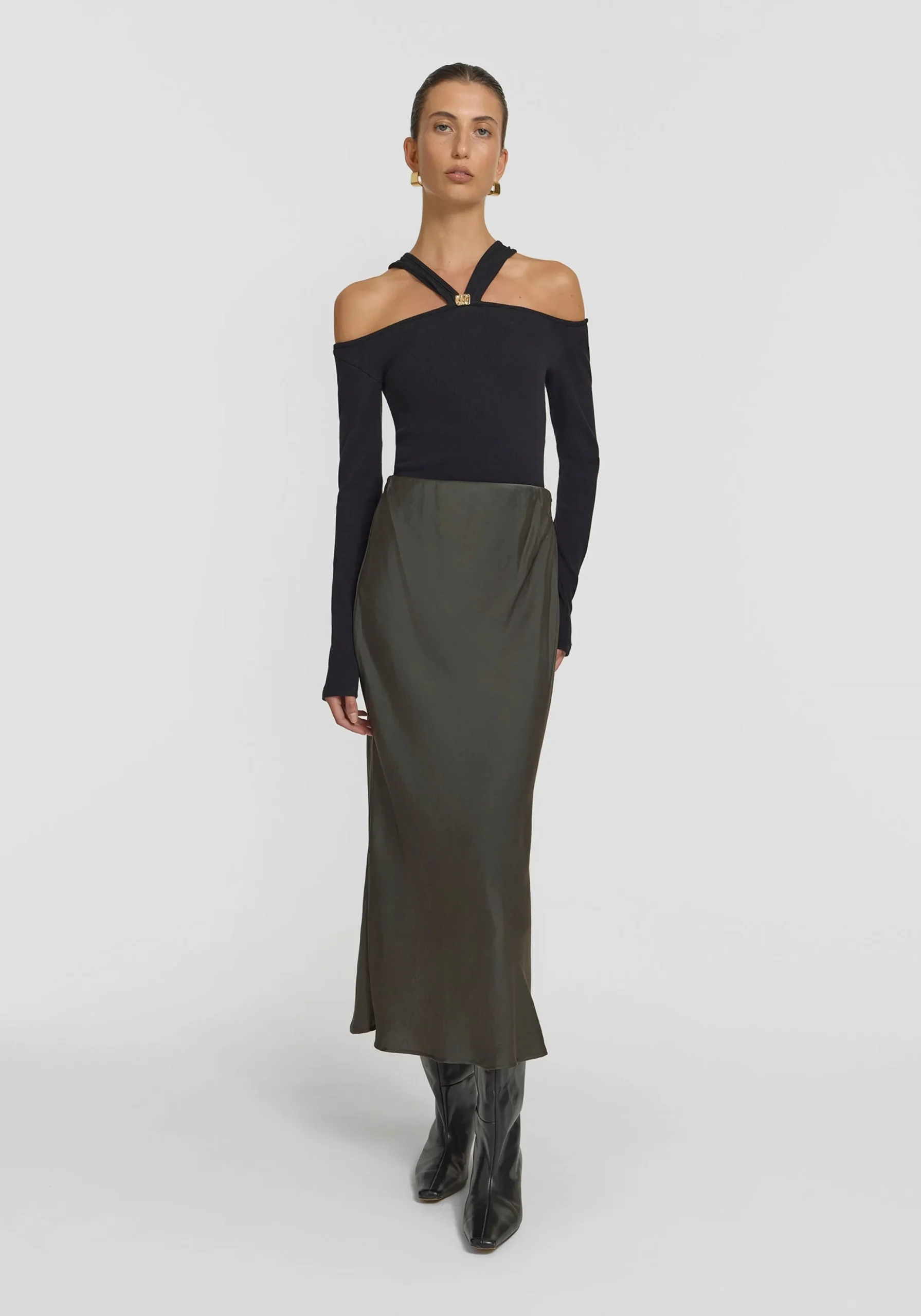 Introducing the Othello Skirt, a sophisticated staple crafted from a cupro blend in a versatile olive green hue. Cut on the bias in a mid-rise, midi-length silhouette, this skirt effortlessly embodies timeless elegance for any occasion. Pair it with this season’s olive green offerings for an effortless tonal look, or style it with V&W basics for everyday wear.MADE IN AUSTRALIA