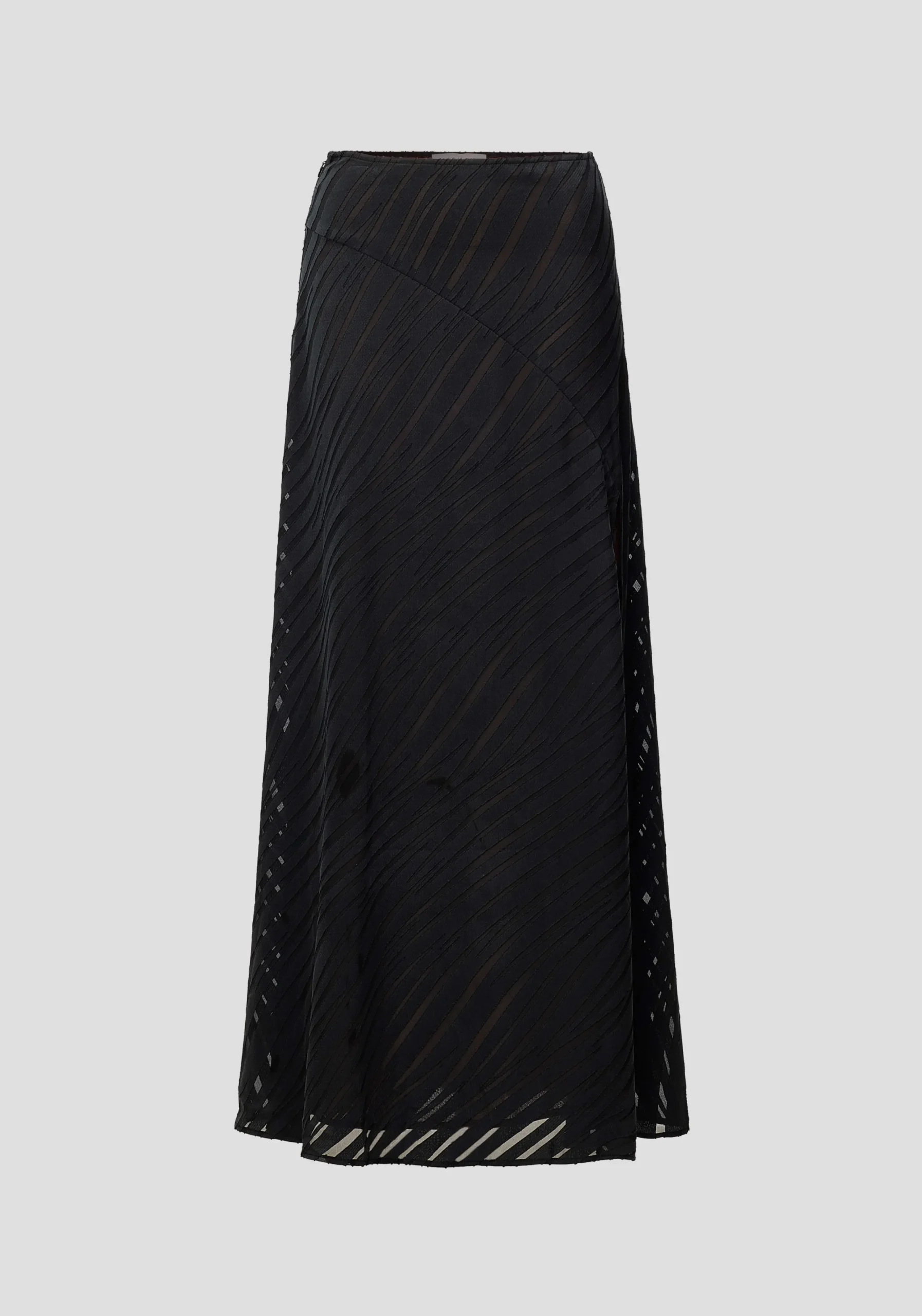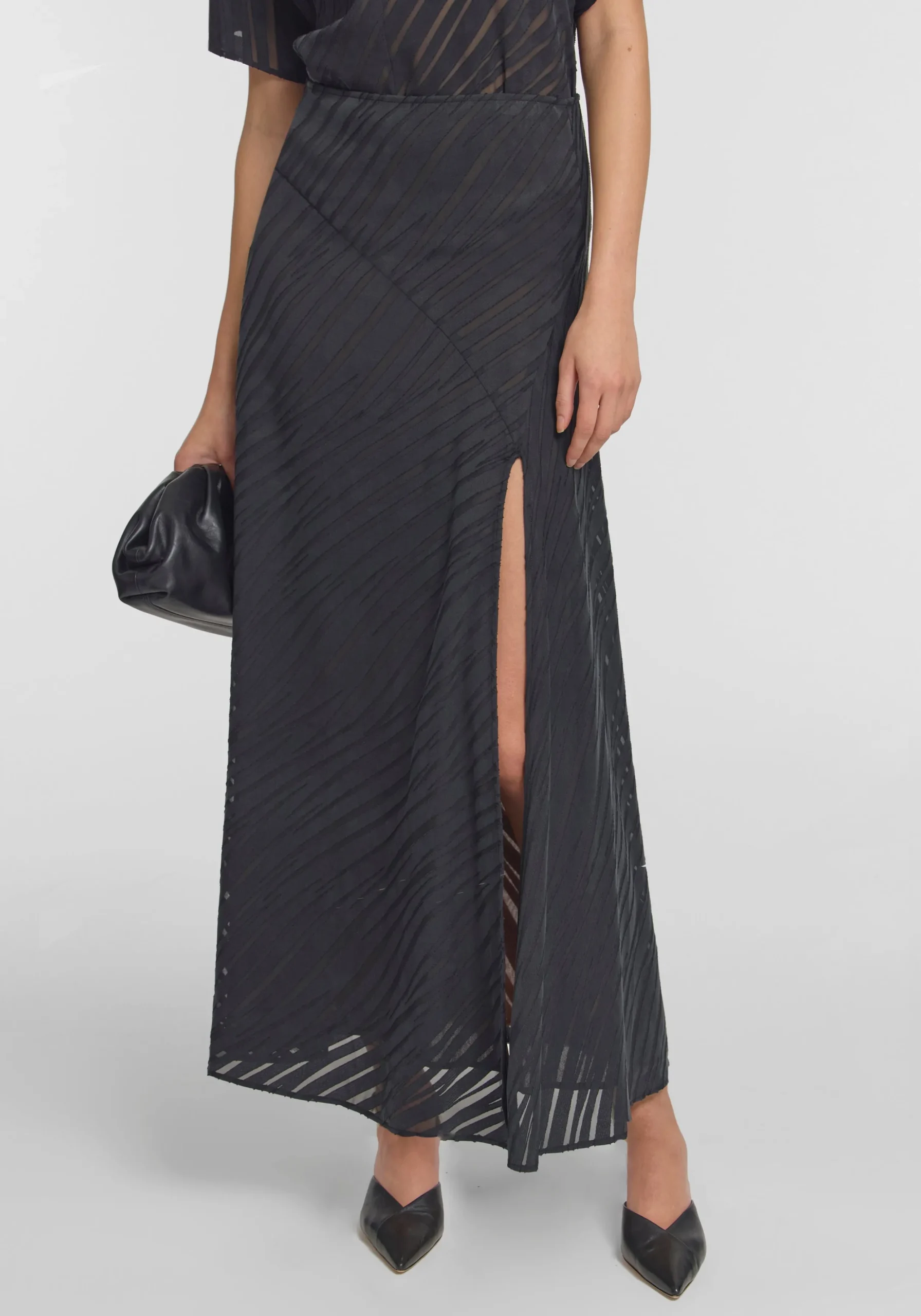 Refined simplicity in zebra-inspired sheer, the Wellbeing Skirt is cut from a textured black fabrication with a soft mesh lining. Bias-cut for a fluid drape, it’s neatly fitted at the hip and is finished with a high side split. Echoing the harmony between nature and design, pair with the Totem Top for simple elegance.MADE IN AUSTRALIA