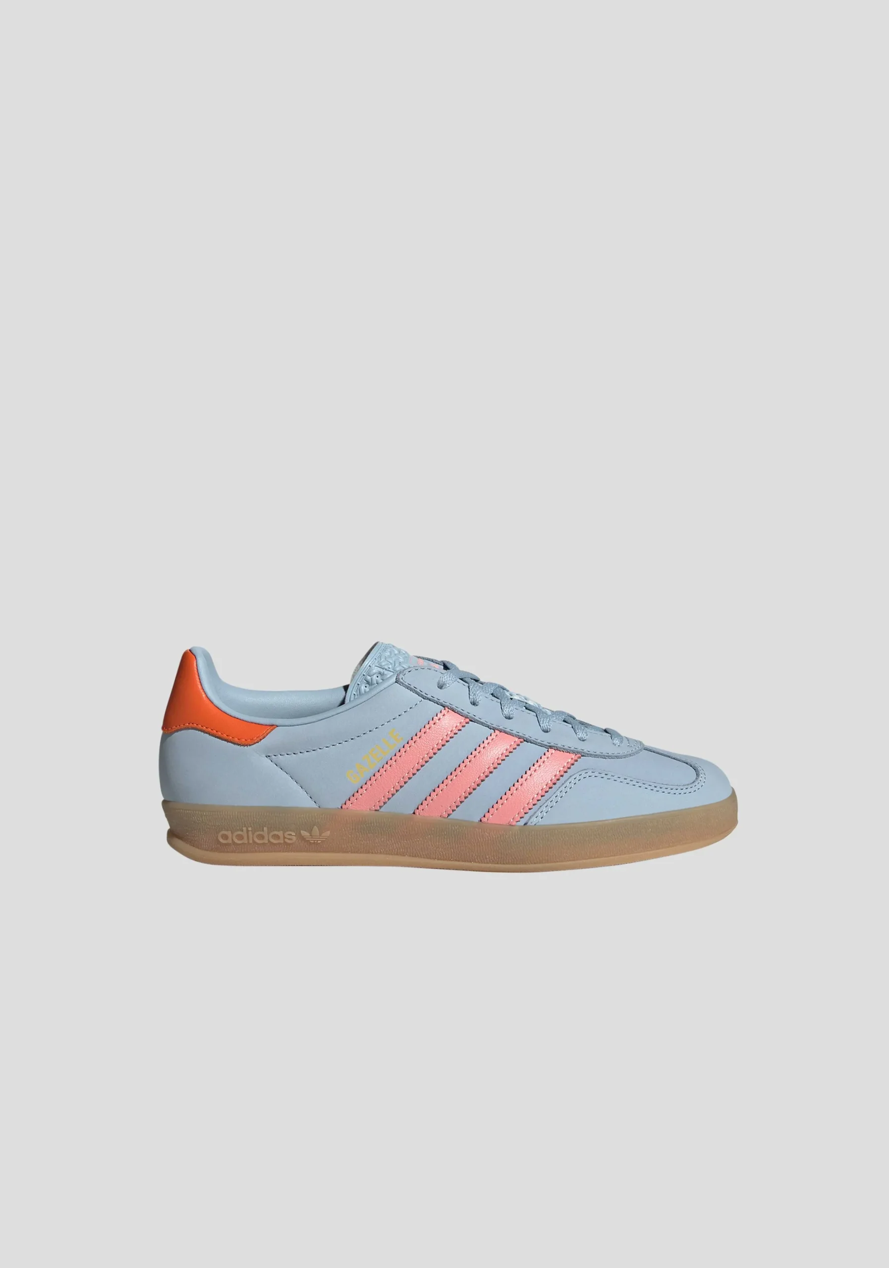 Stand out in the Gazelle Indoor sneakers, featuring a vibrant mix of light blue, pink, and orange for an energetic colour combination. This bold mix of colours adds a retro twist to these iconic shoes, originally designed for indoor training. The suede upper, signature 3-stripes, and gold foil