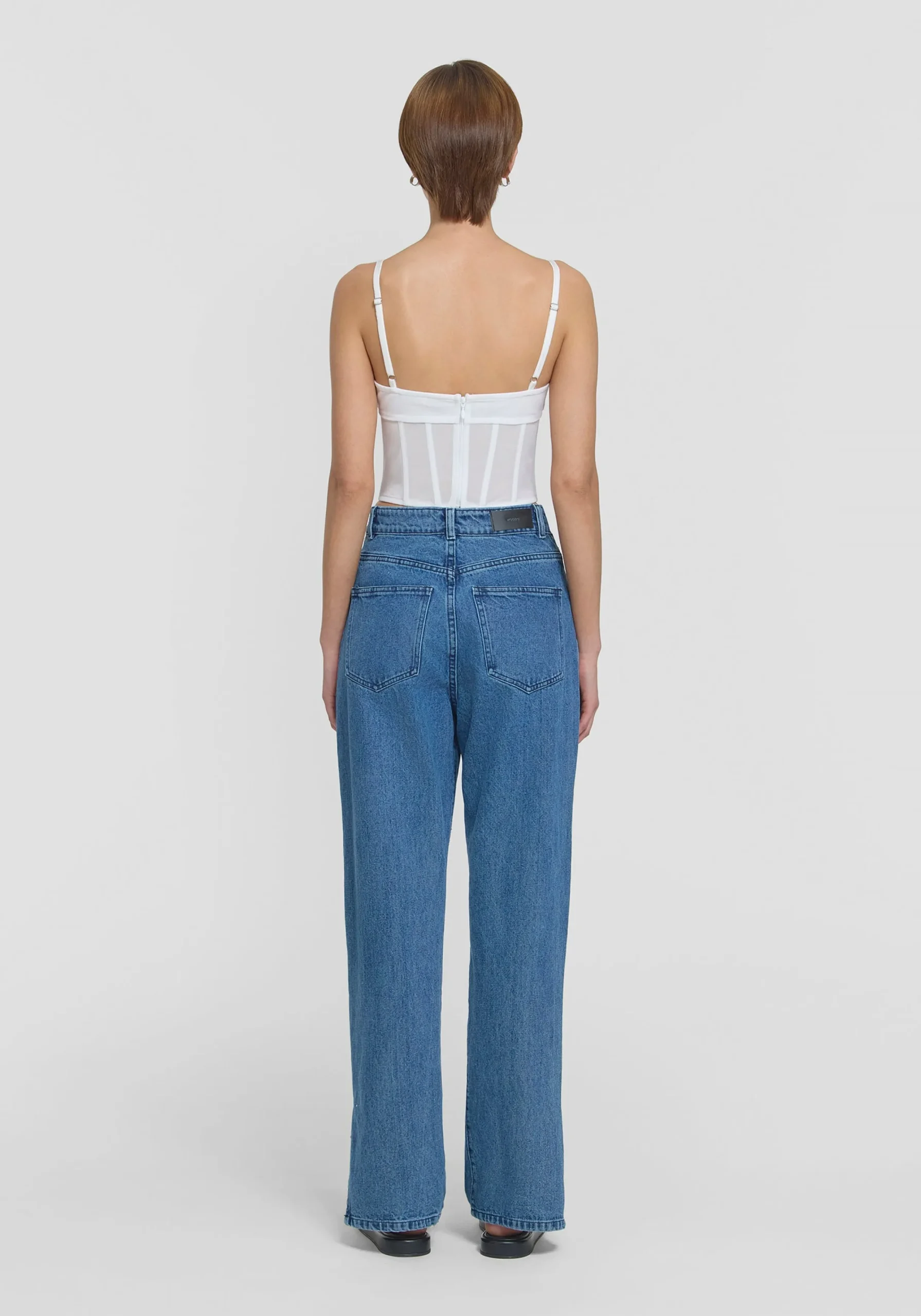 Crafted in a classic denim wash, the Cobain High Waisted Jean will transform every look with a side seam split detail and straight leg profile. Featuring a branded leather patch, these are considered for a modern lifestyle, pair with heels or flats for a versatile look. MADE IN AUSTRALIA