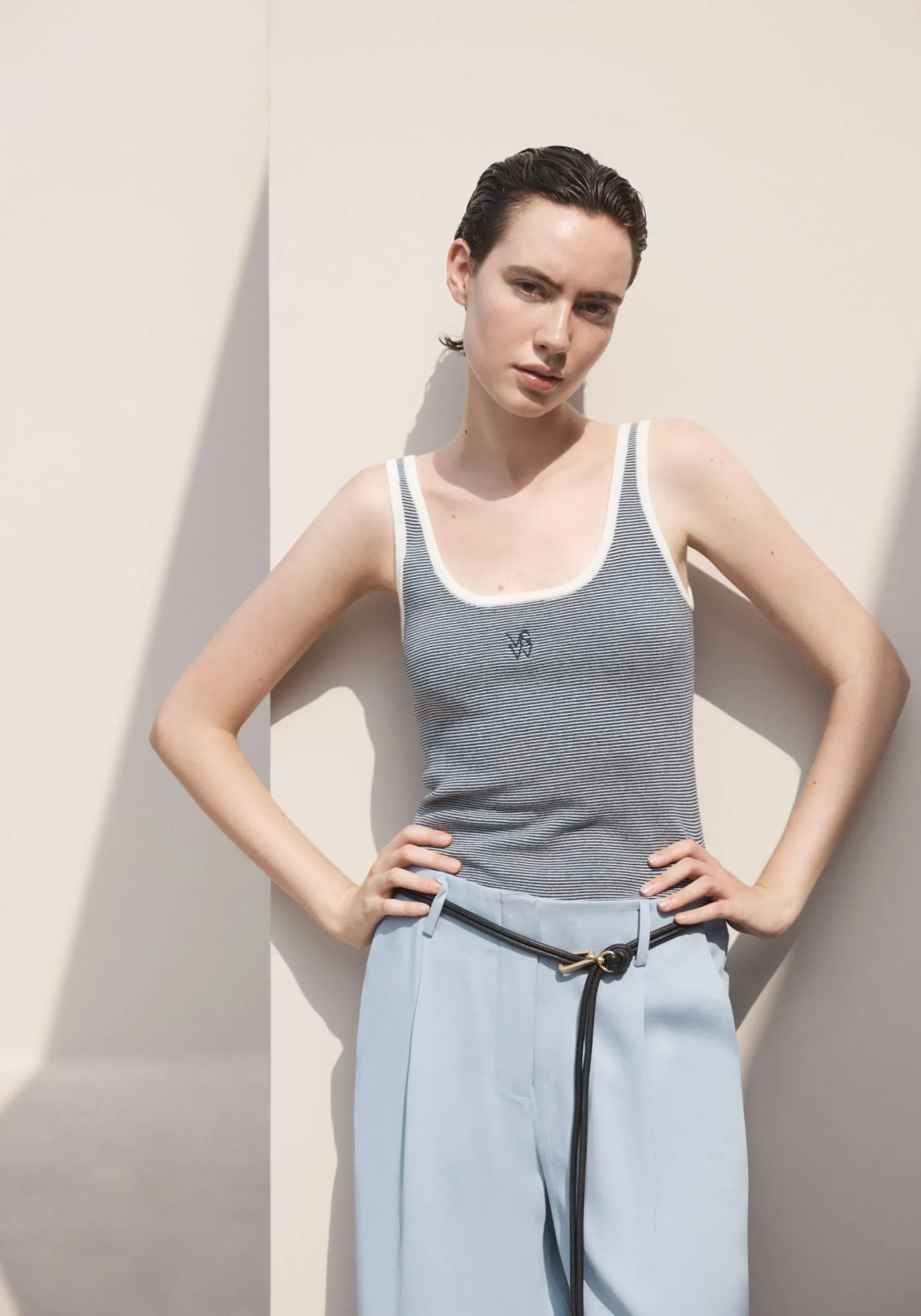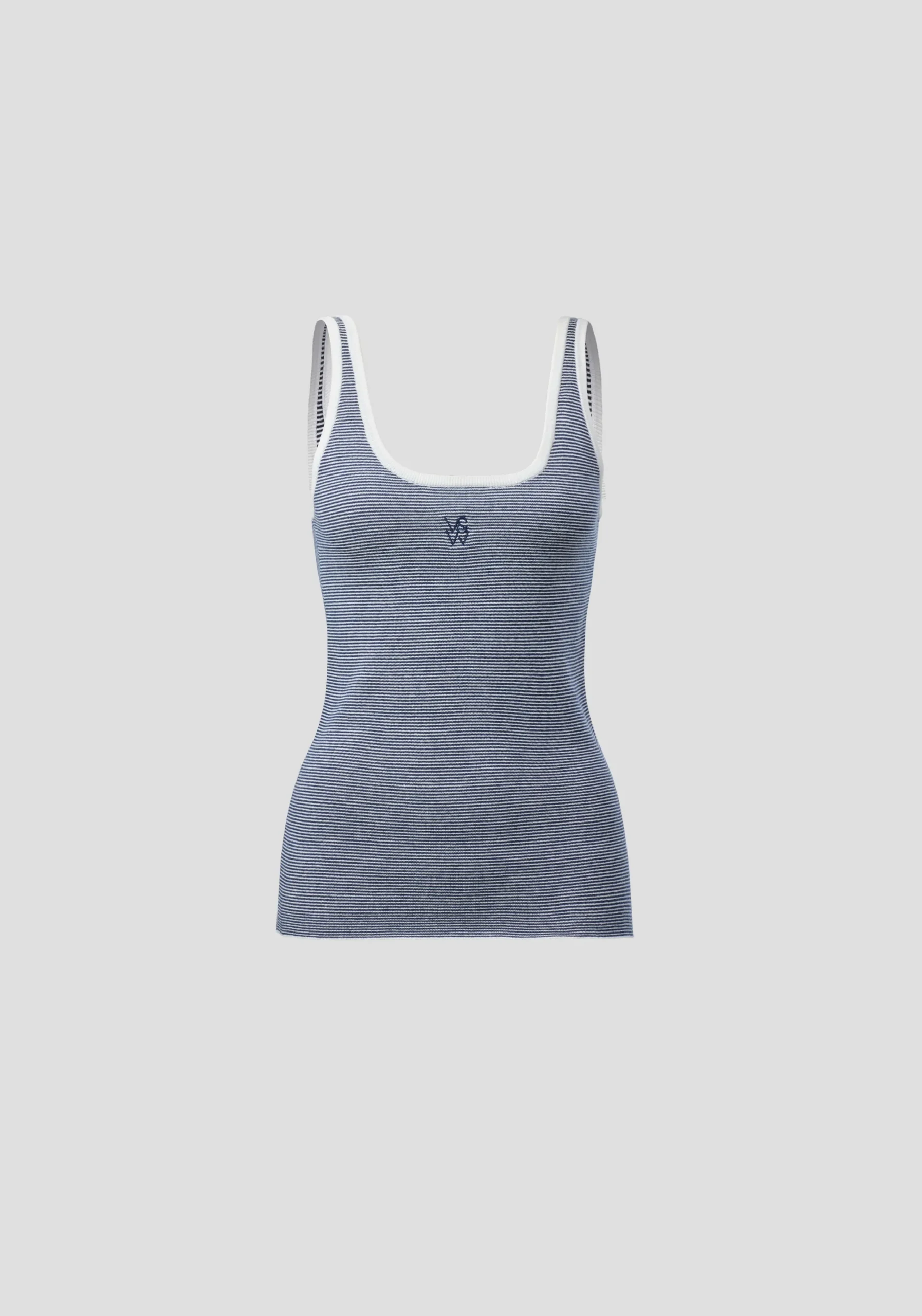 Introducing the Chronicle Tank, the new archetype of the essential tank. Crafted from cotton in a navy and white stripe, this fitted silhouette features a scooped neckline, contrast white trims and complete with signature V&W insignia. An effortless starting point for any look, it strikes the perfect balance between sporty ease and elevated simplicity.