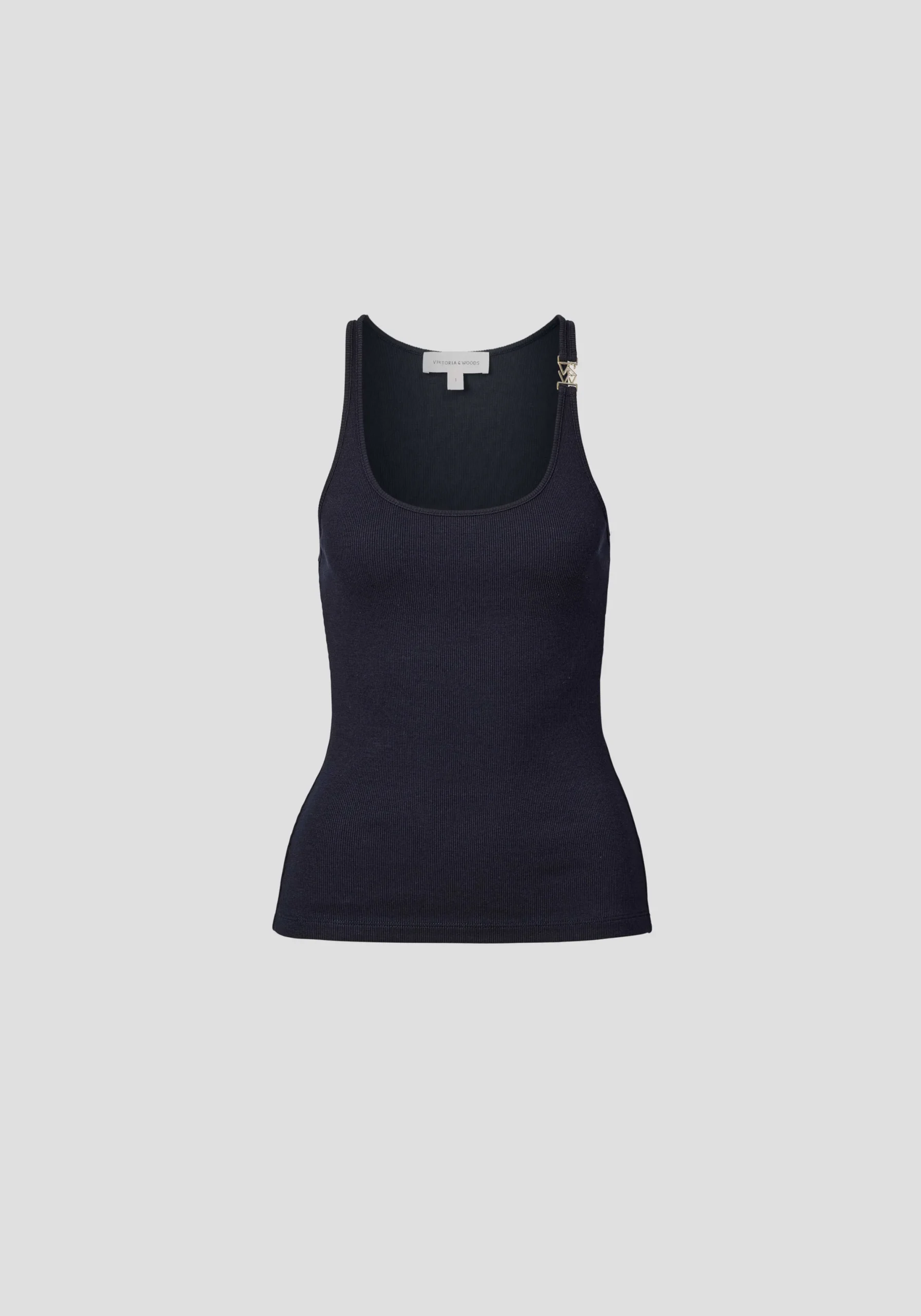 Bring new life to your everyday essentials with the Victor Tank, an elevated take on the classic tank top. Crafted from our signature 2×2 organic cotton rib in a classic navy blue, this fitted silhouette showcases a flattering scoop neckline and sleek V&W hardware on the strap. The perfect starting point for any outfit, it exudes effortless luxury with every wear.