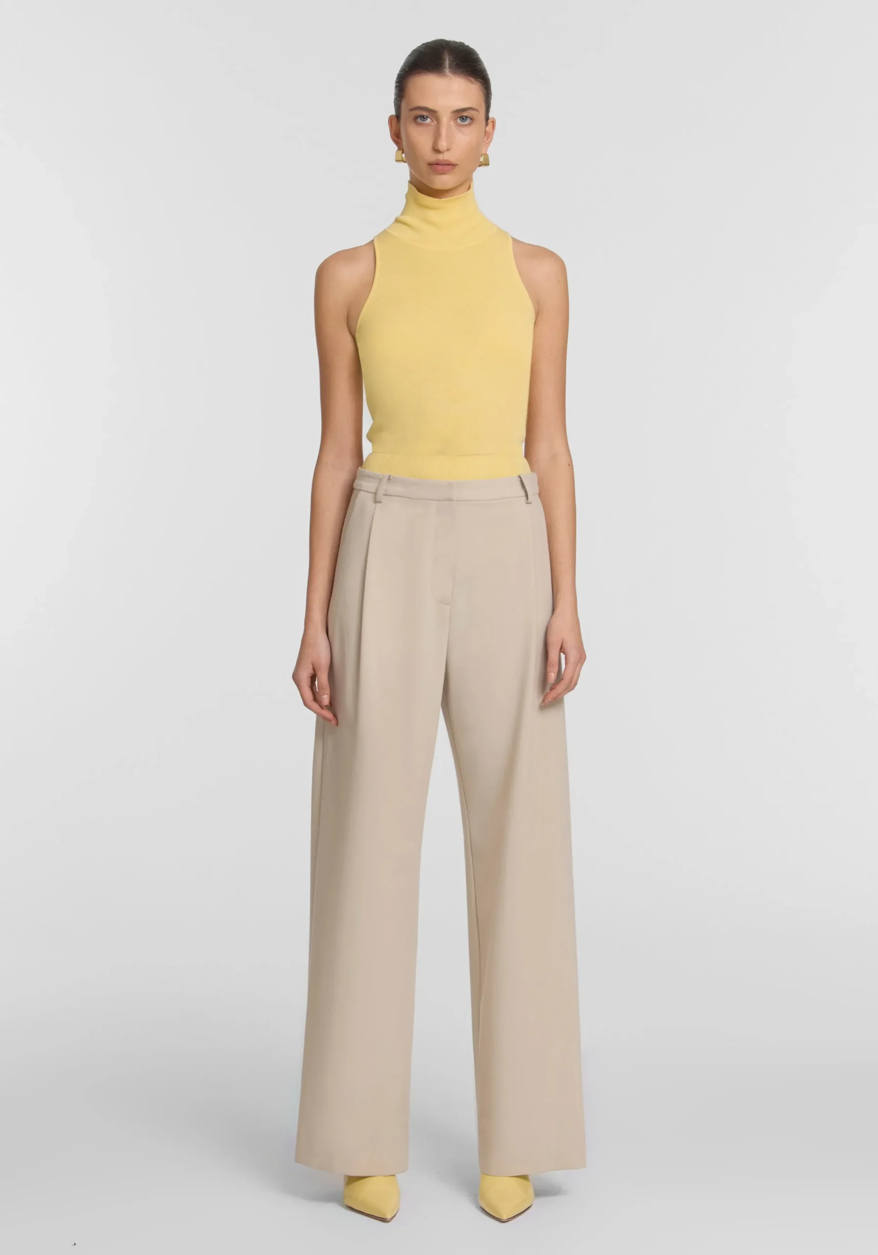 A statement in citrus yellow, the Awestruck Knit Top is crafted from a cotton-silk blend and finished in a mid-weight milano stitch. Showcasing a sleeveless, fitted design, it’s complete with a high neckline and ribbed trims. Style with the Seneca Short or Atlantis Pant for a chic interplay of yellow hues and fabrications.
